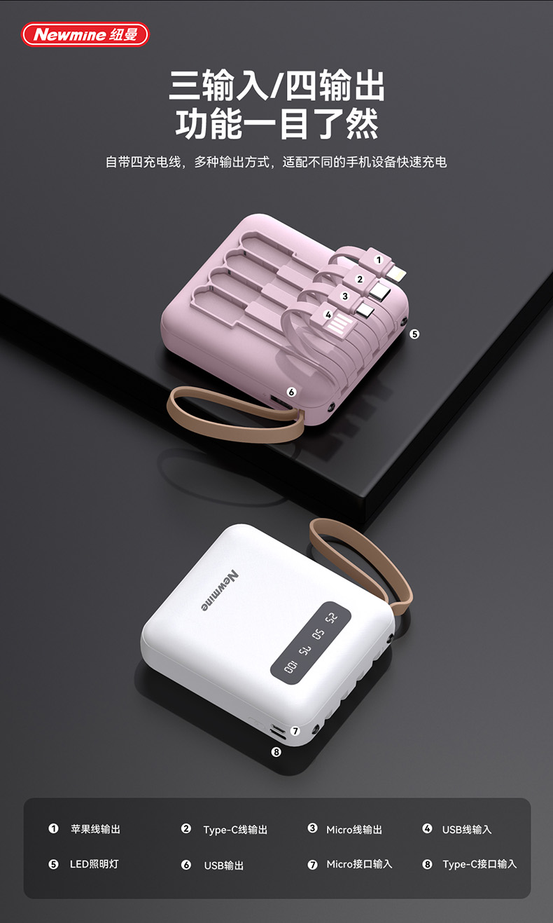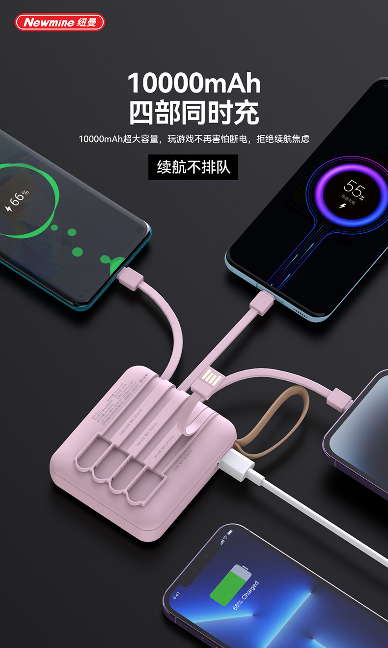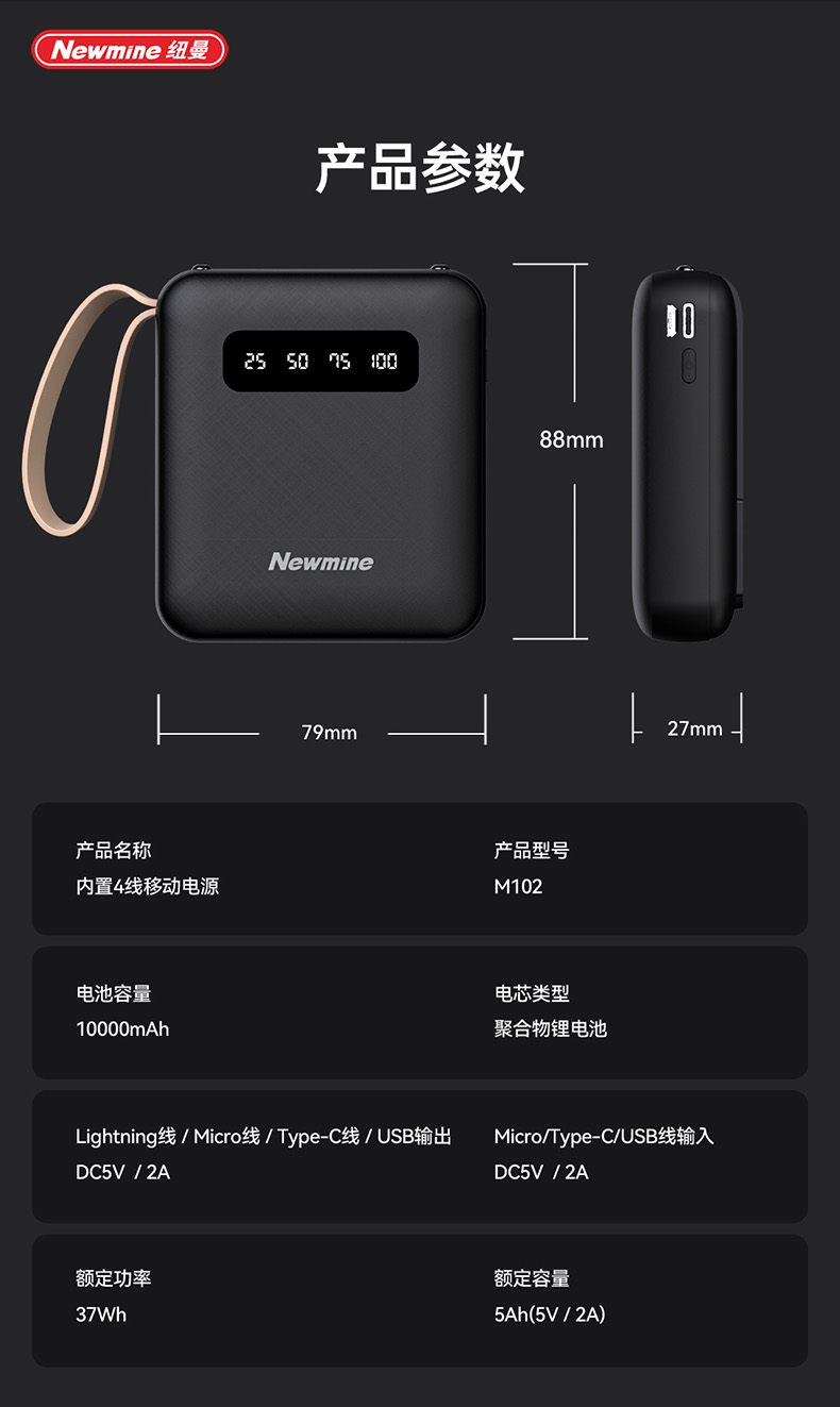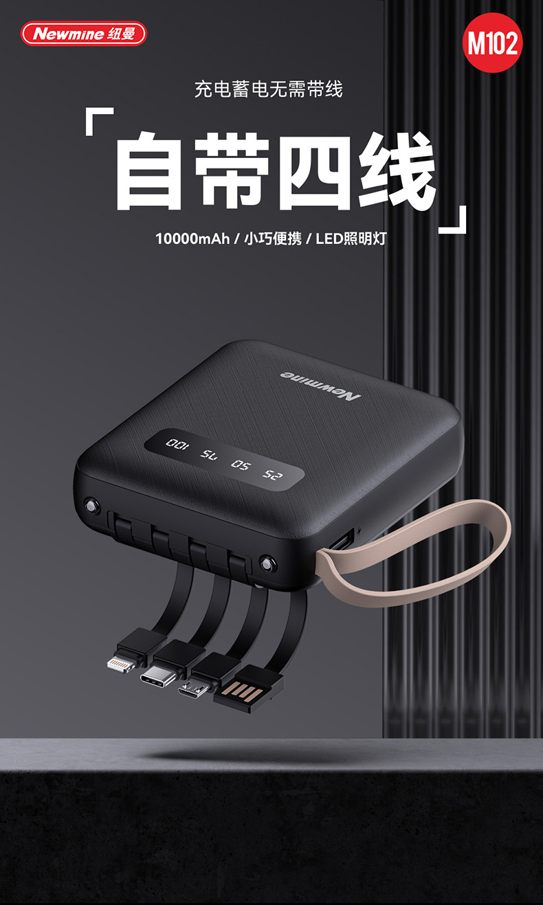纽曼带线移动电源M102
