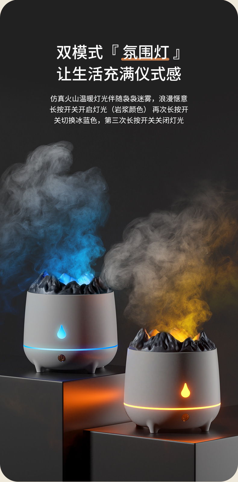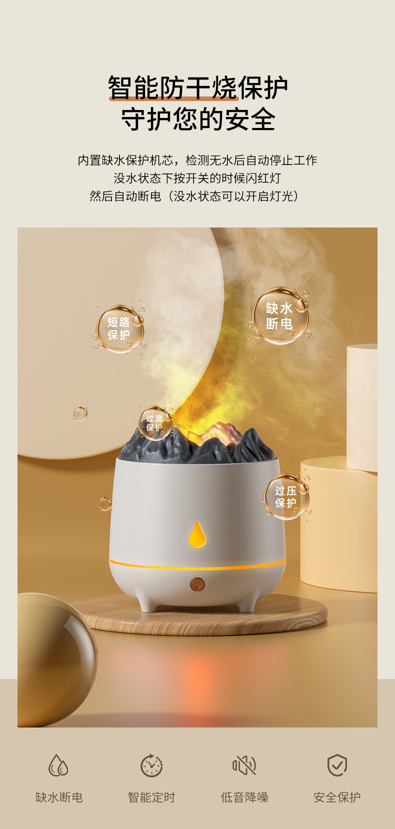 火山香薰机家用自动喷香香氛机超声波精油仿真火焰加湿器