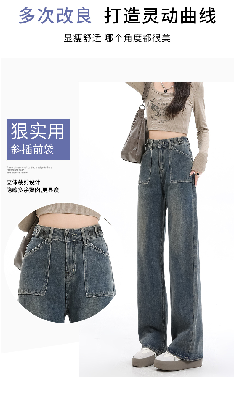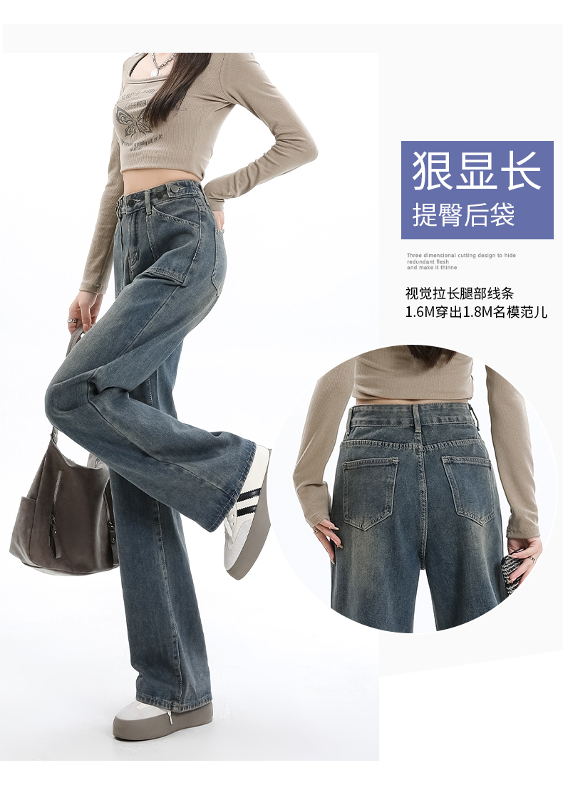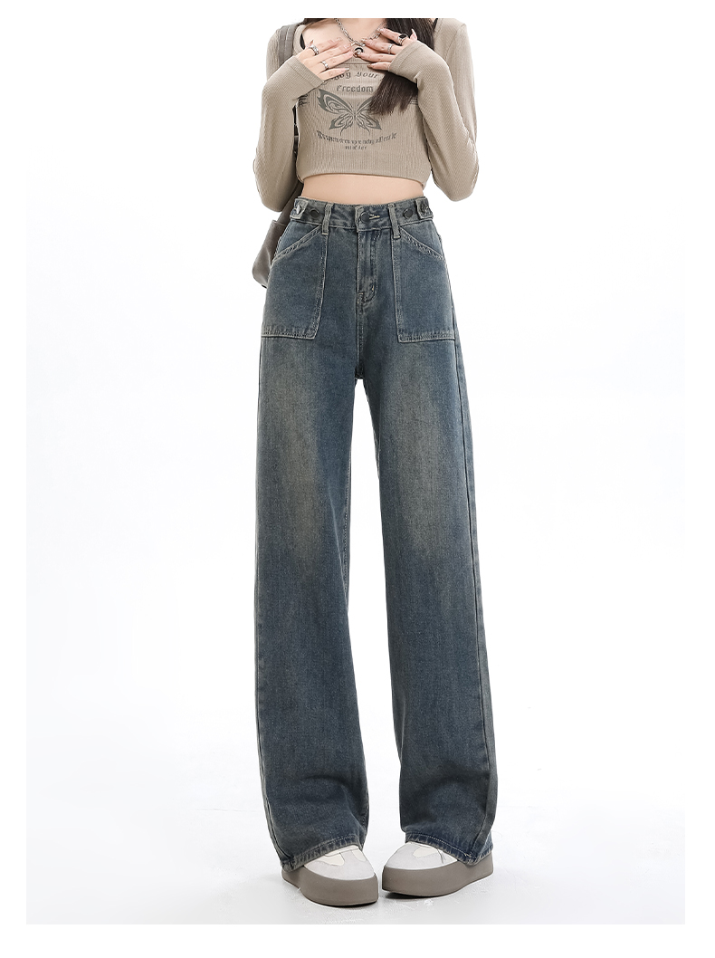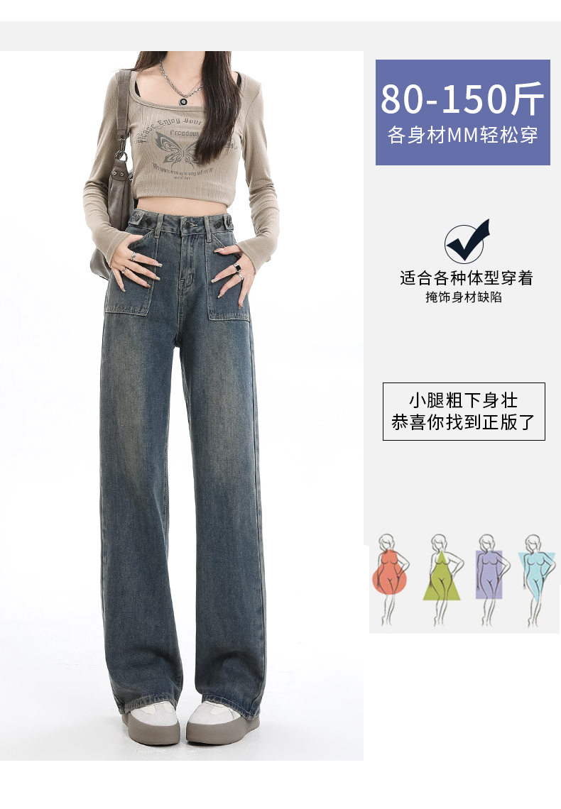 罗蒙女士四季款牛仔裤宽松显瘦阔腿长裤休闲通勤百搭舒适直筒裤子女