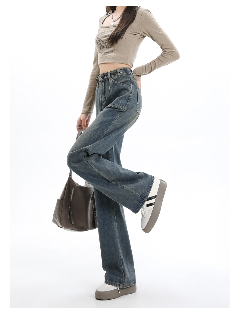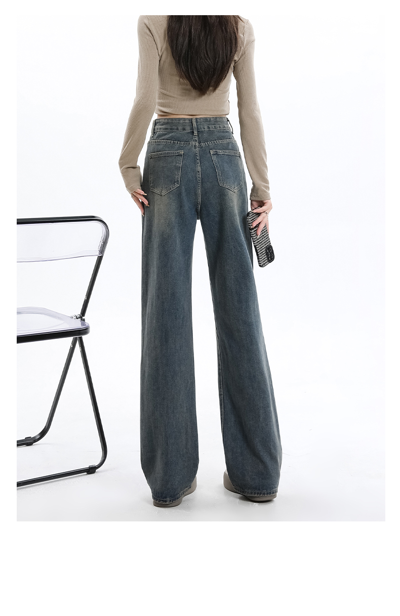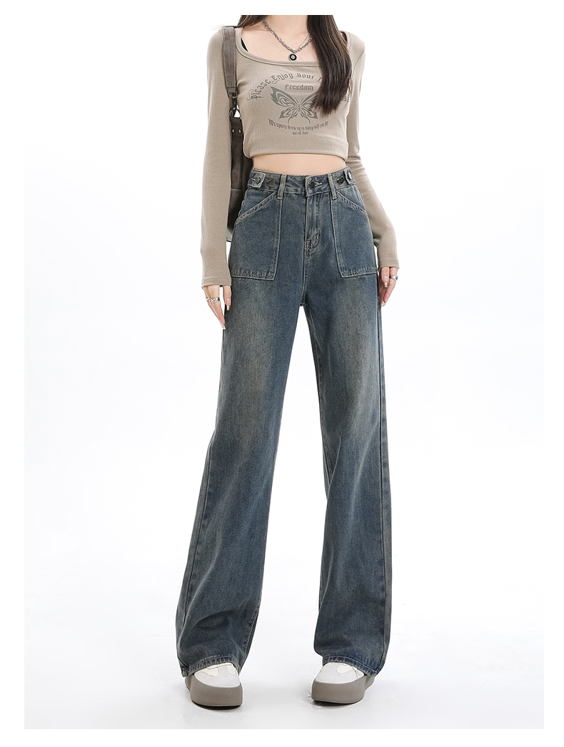 罗蒙女士四季款牛仔裤宽松显瘦阔腿长裤休闲通勤百搭舒适直筒裤子女