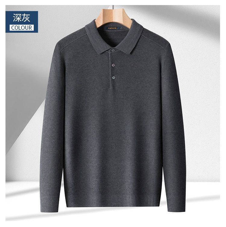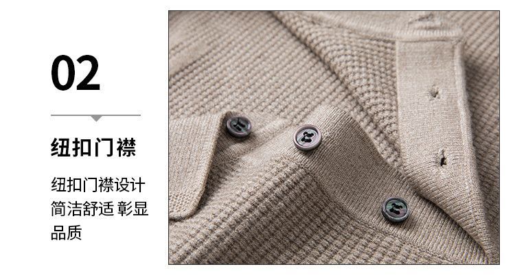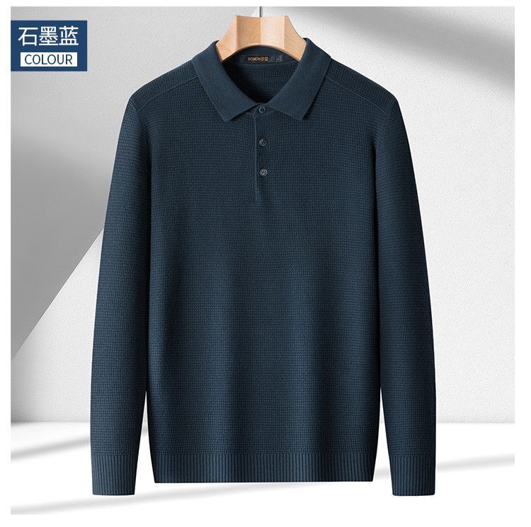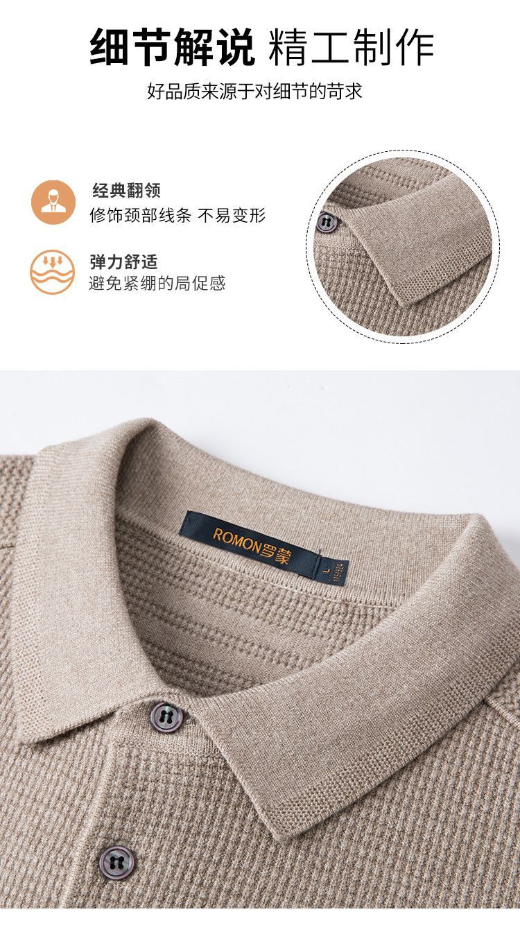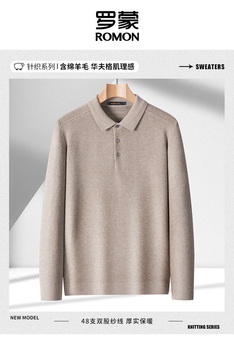 【华夫格含羊毛】罗蒙秋冬肌理感polo衫男长袖针织衫男休闲百搭毛衣男t恤