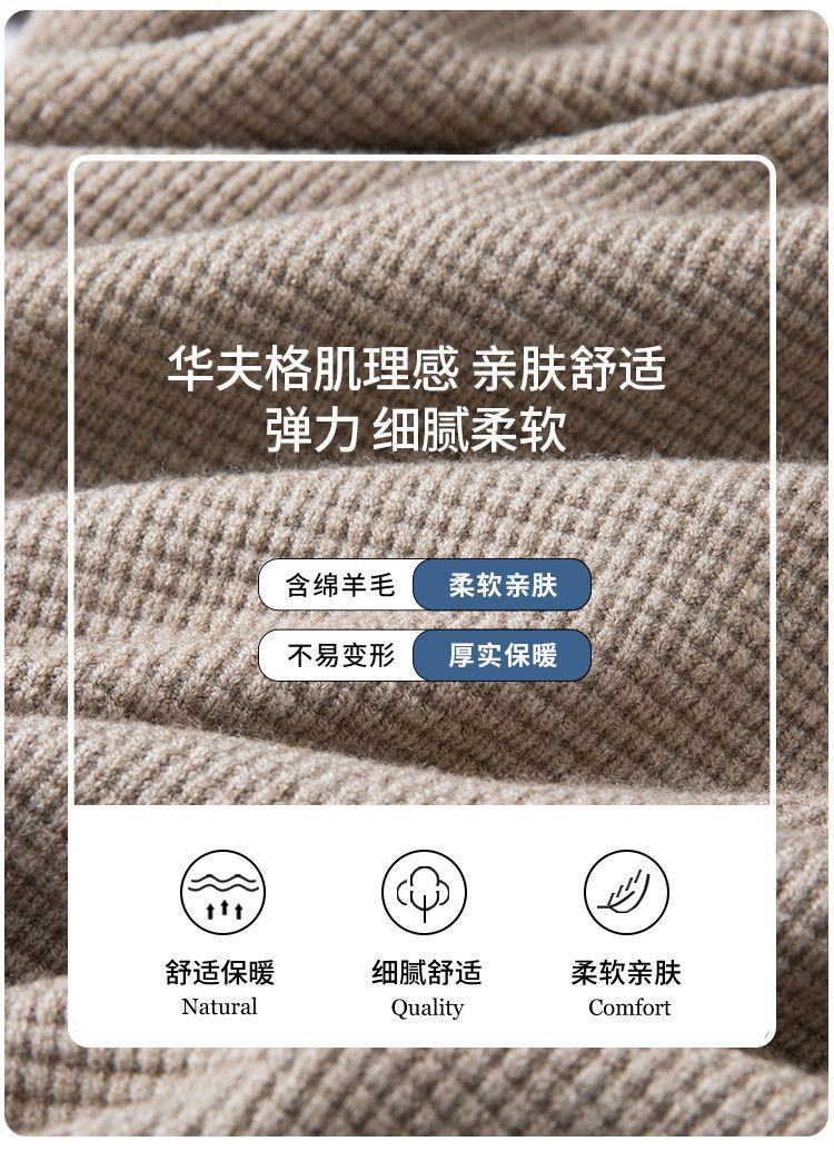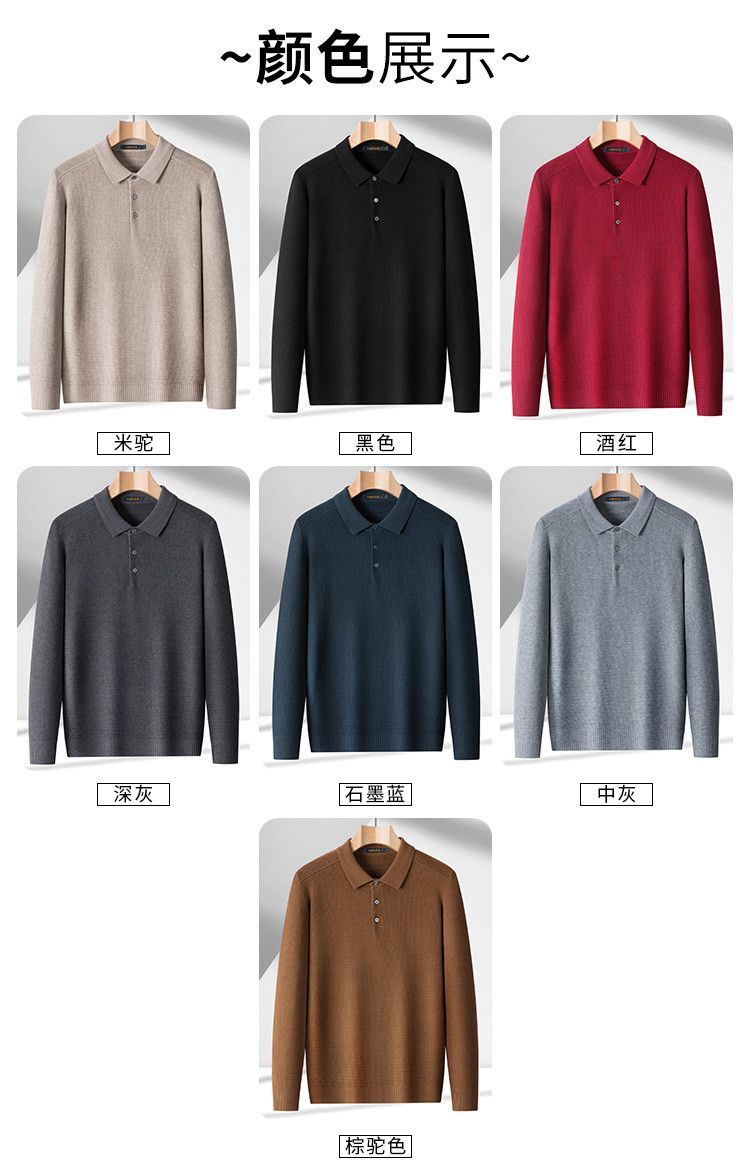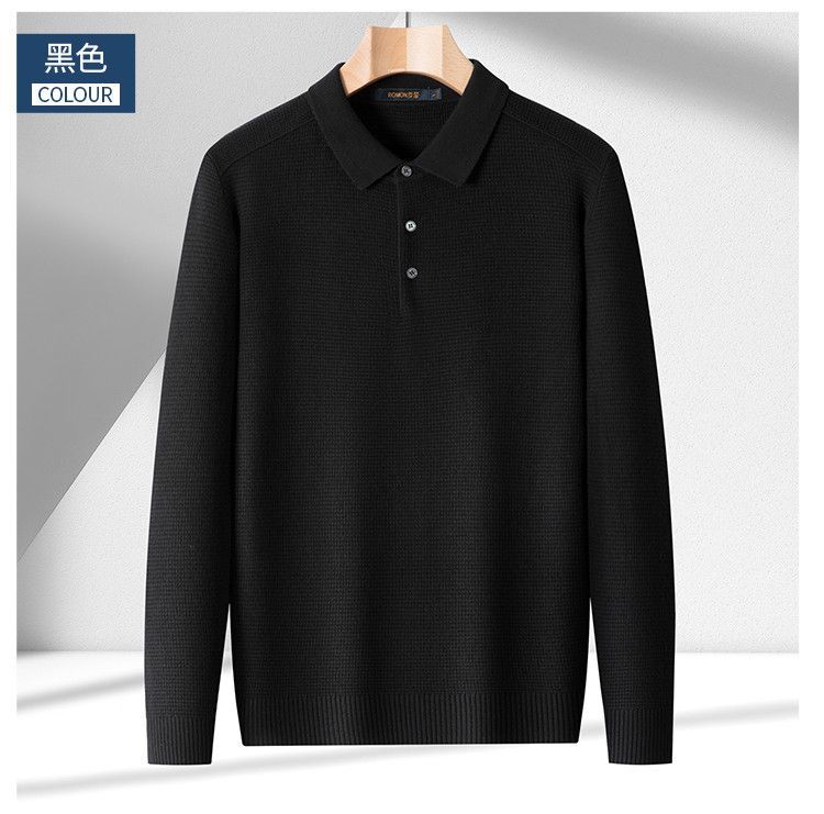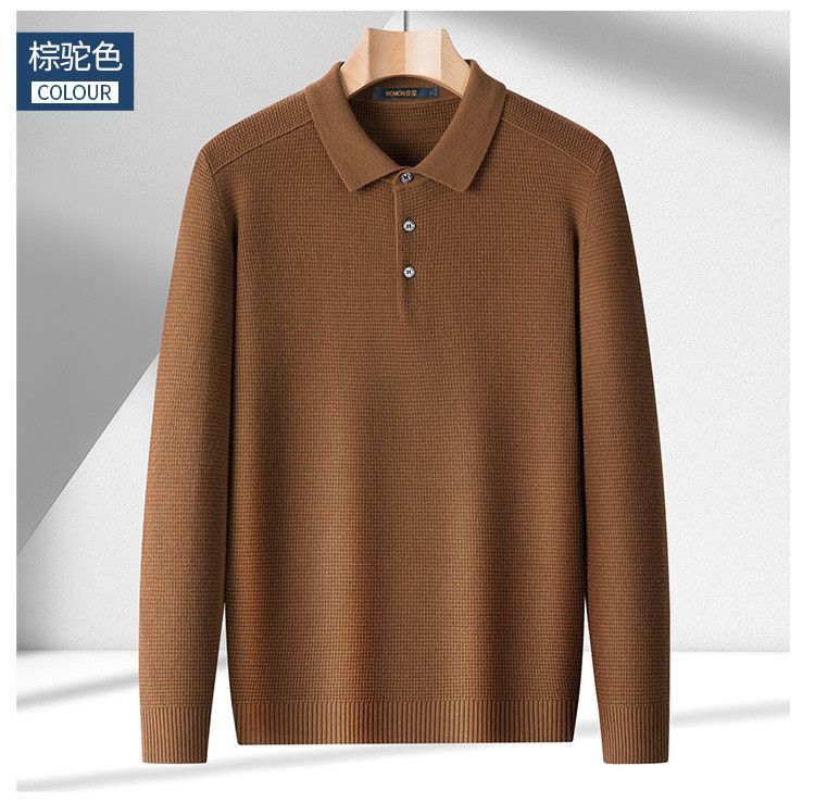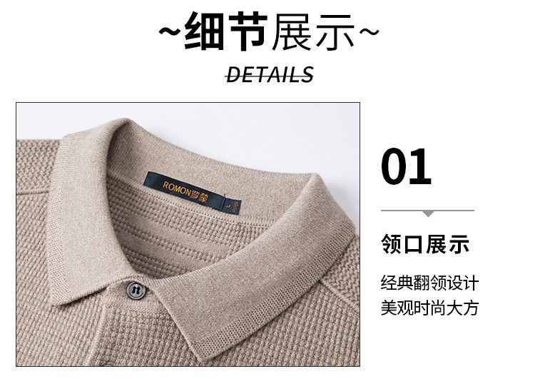【华夫格含羊毛】罗蒙秋冬肌理感polo衫男长袖针织衫男休闲百搭毛衣男t恤