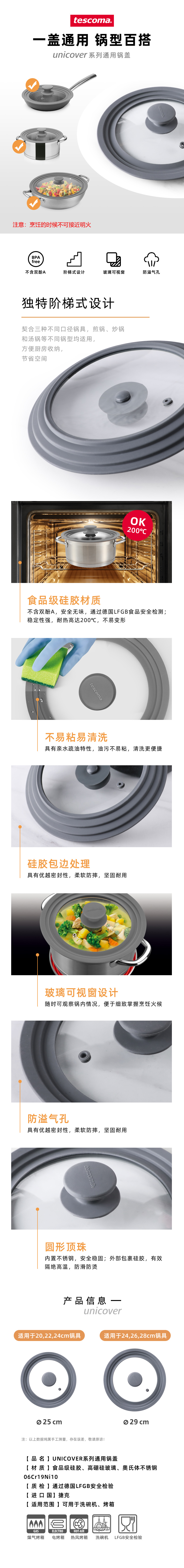 tescoma 厨房高硼硅玻璃锅盖 煎锅炒锅汤锅通用可视锅盖子【不支持补差,非质量问题不退不换】S