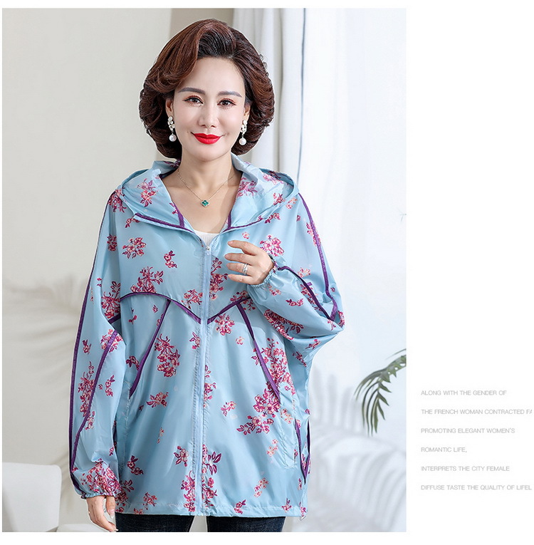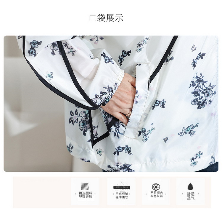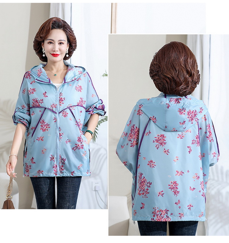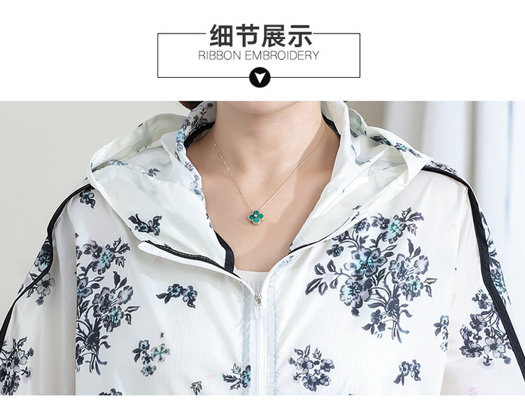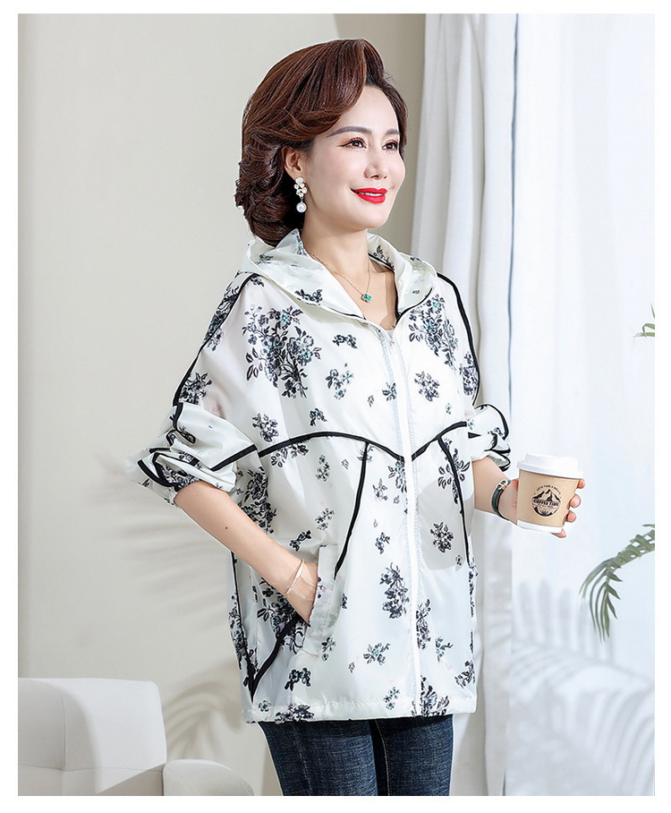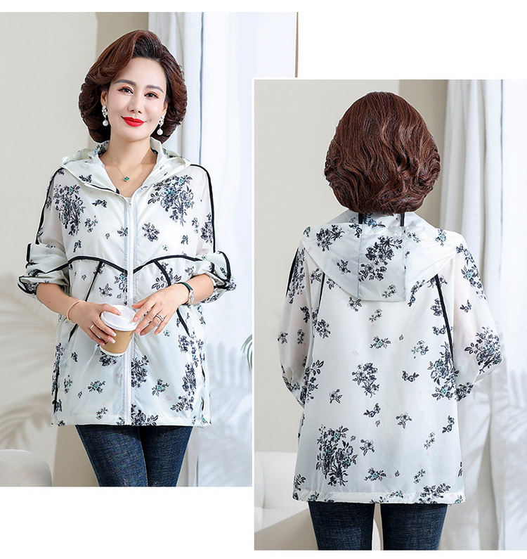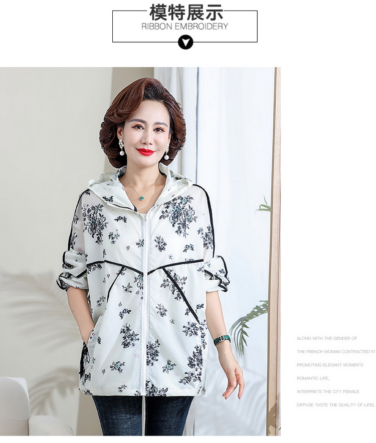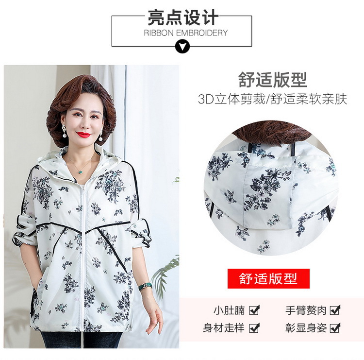 中国风女士防晒衣 水墨风妈妈防晒衣2024夏装新款洋气花色防晒衣 连帽长袖中年妈妈防晒衣大码夏天防晒衣