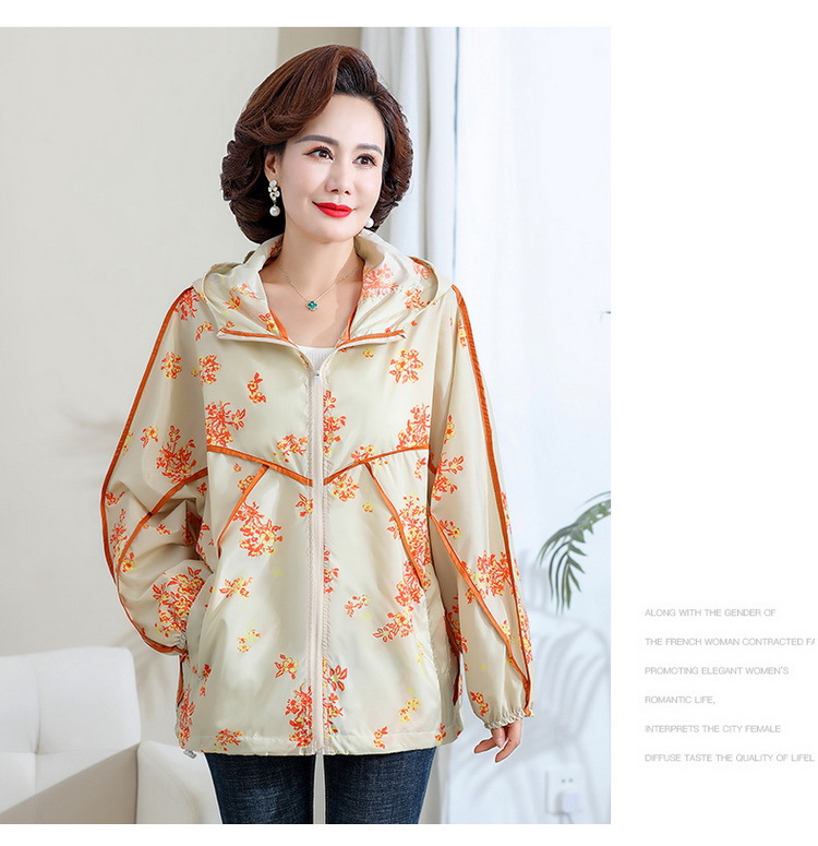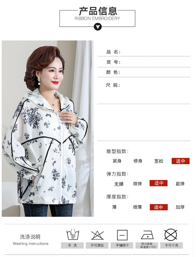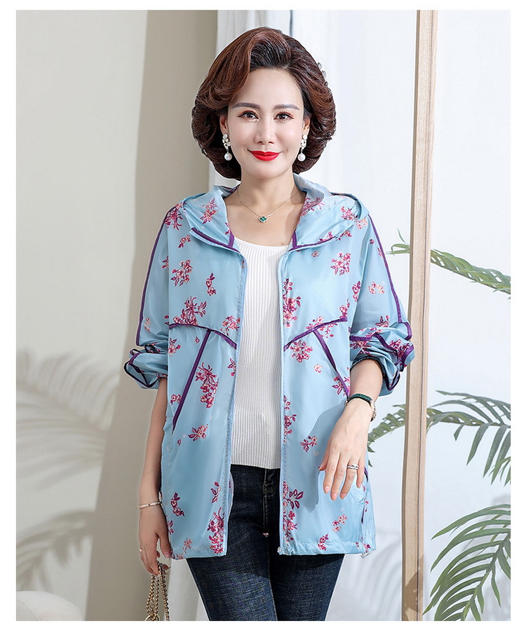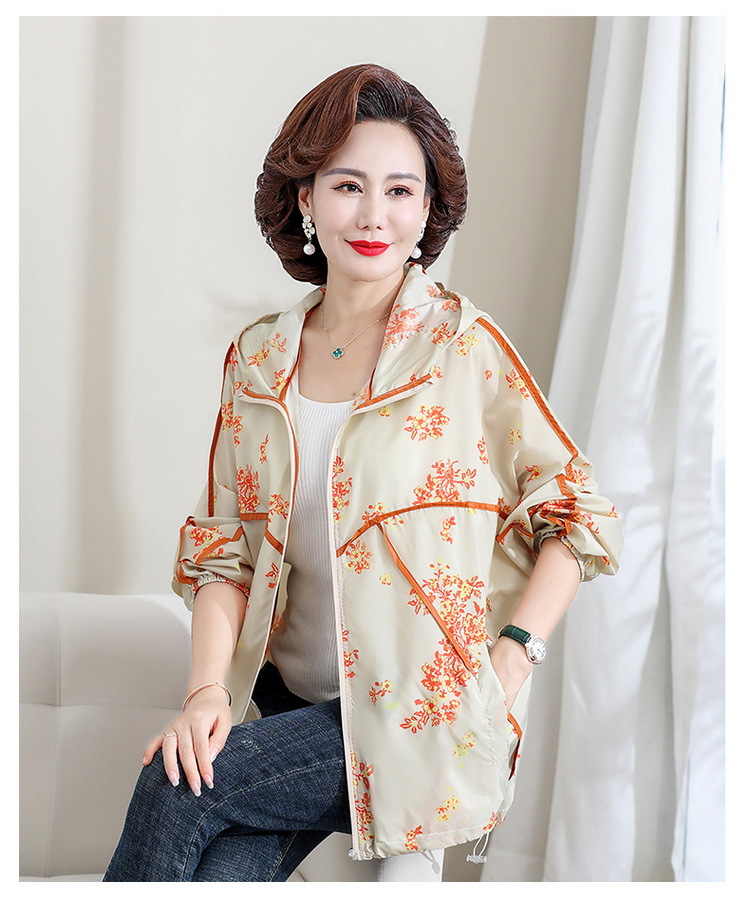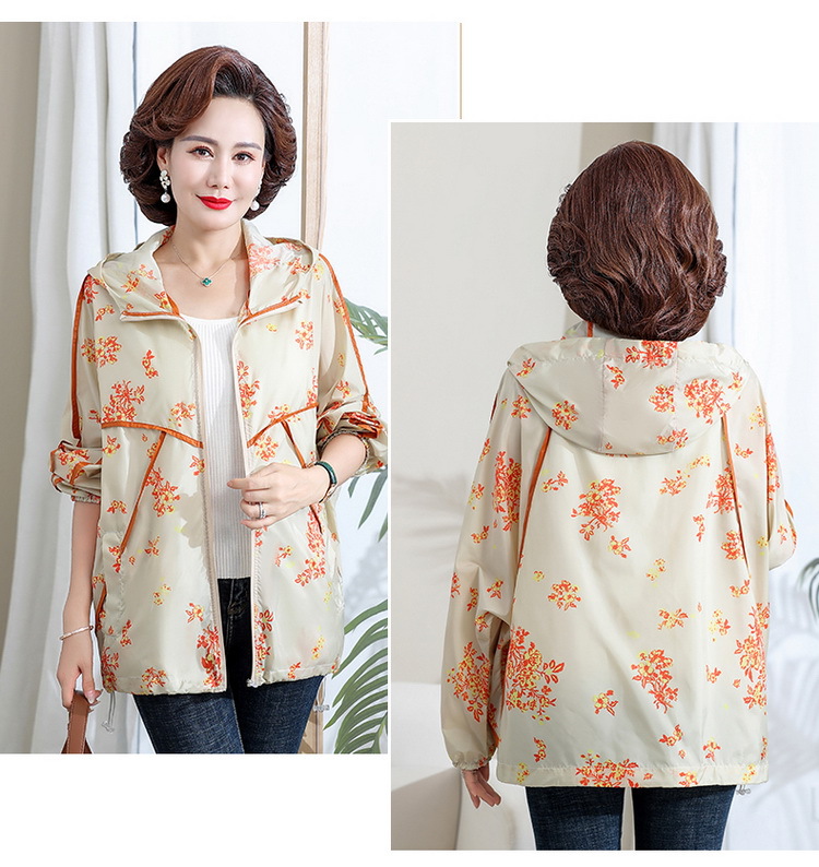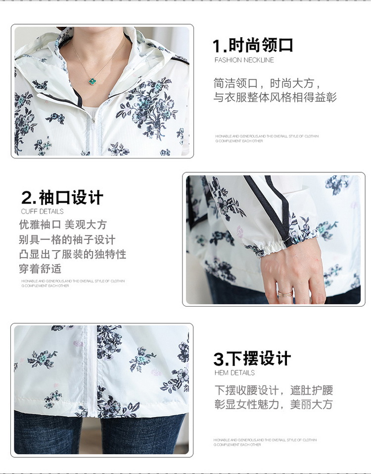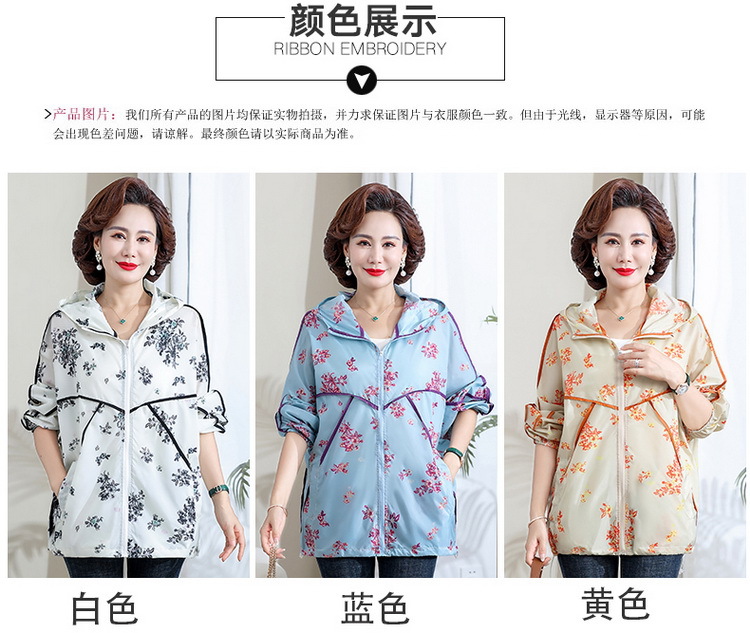 中国风女士防晒衣 水墨风妈妈防晒衣2024夏装新款洋气花色防晒衣 连帽长袖中年妈妈防晒衣大码夏天防晒衣