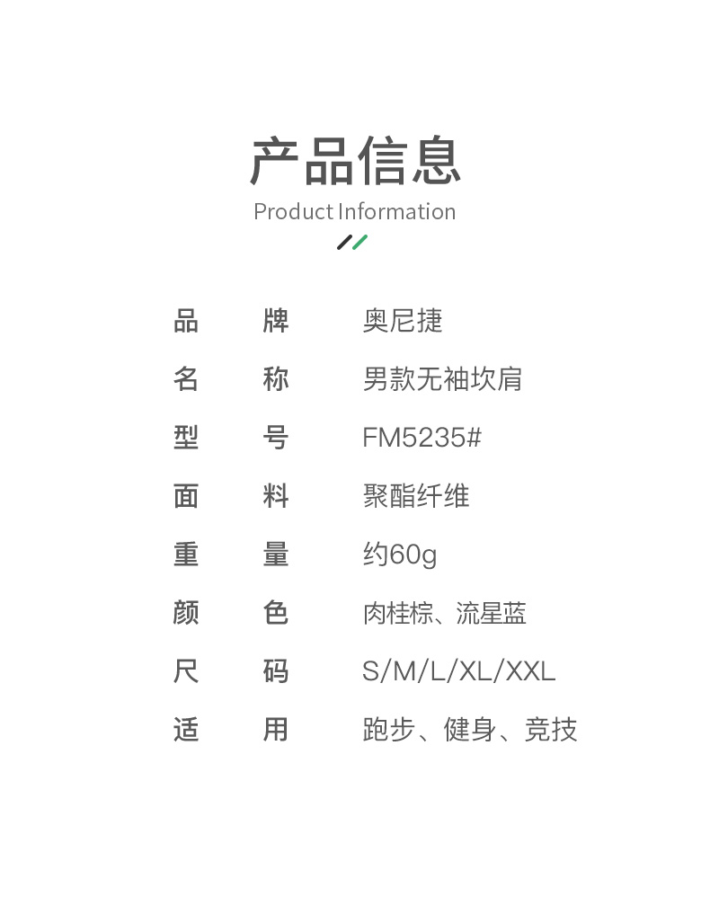 奥尼捷新款跑步背心专业运动速干T恤马拉松竞速背心男士透气坎肩训练背心FM5235