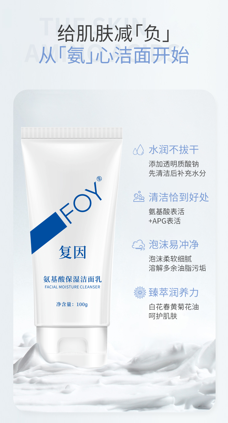 【2件9折,3件8折】复因FOY氨基酸保湿洁面乳100g 【院线同款】 温和无刺激 清洁保湿 敏肌**2件9折、3件8折