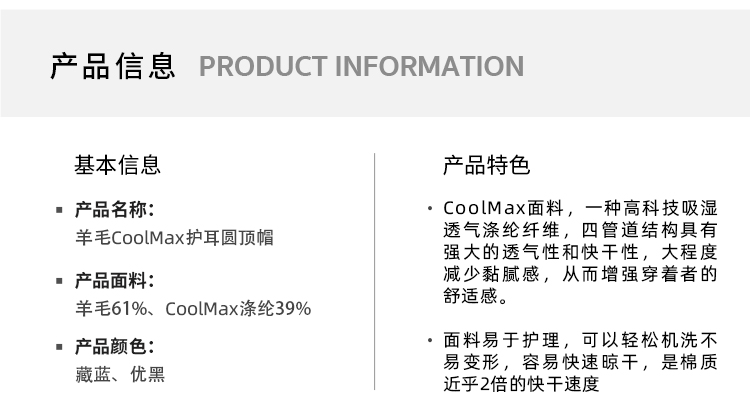 优极UG CoolMax羊毛护耳吸汗圆顶帽