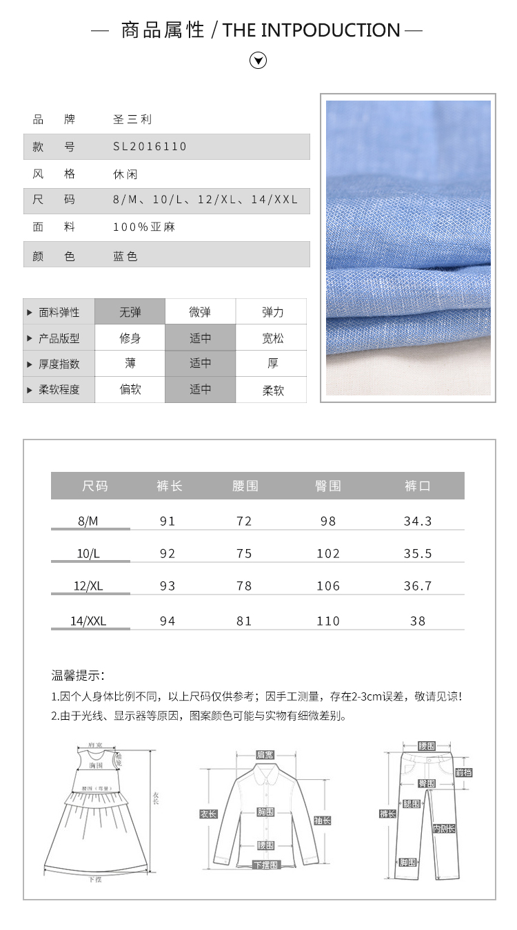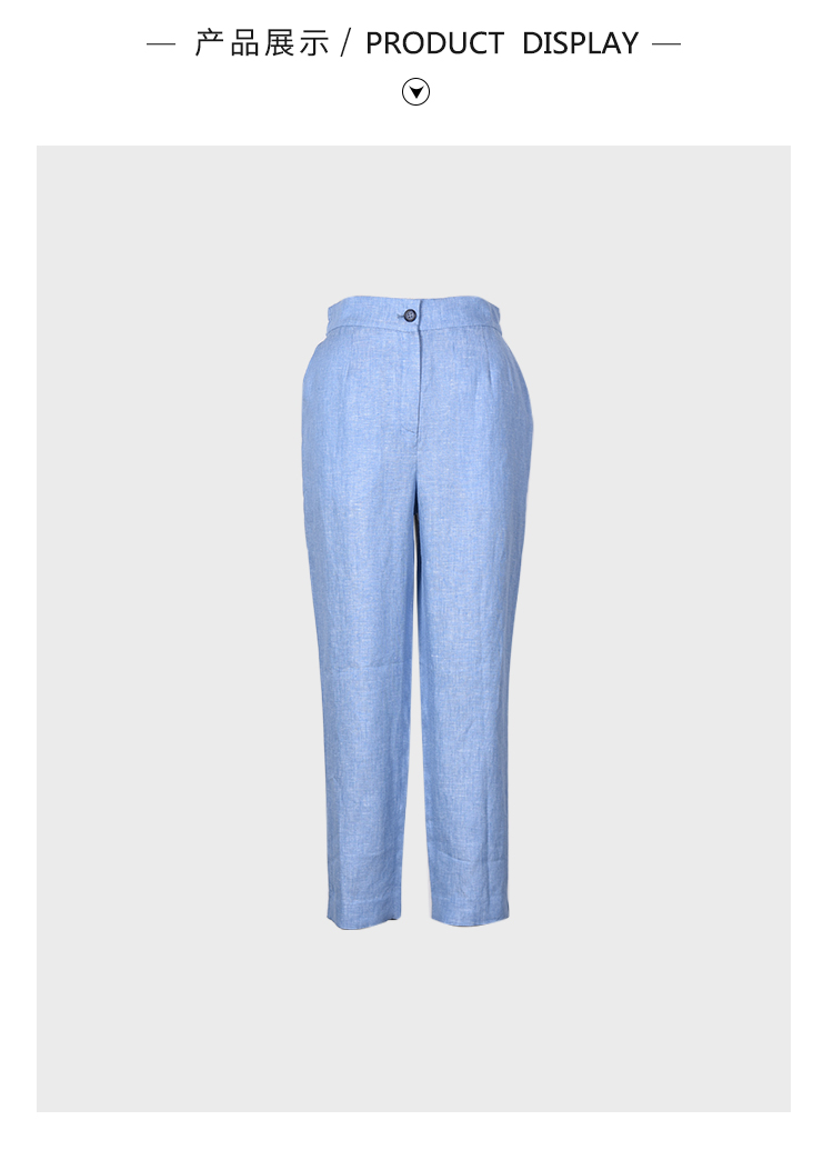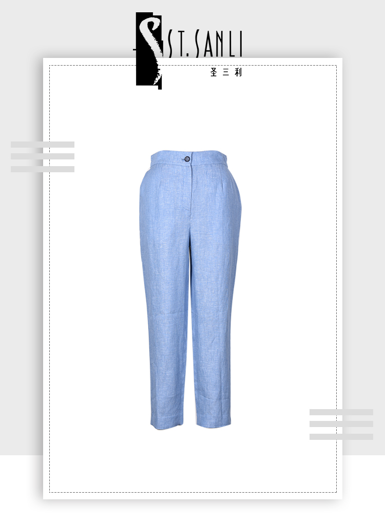 圣三利女装 新款休闲环保亚麻九分窄口松紧腰女裤SL2016110
