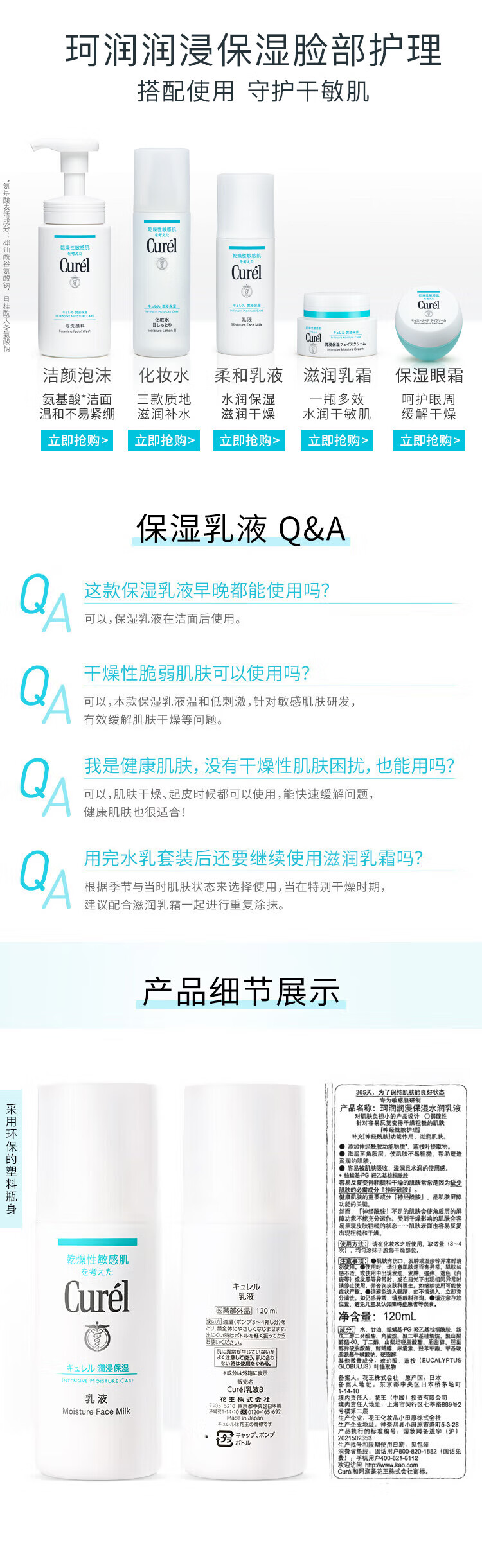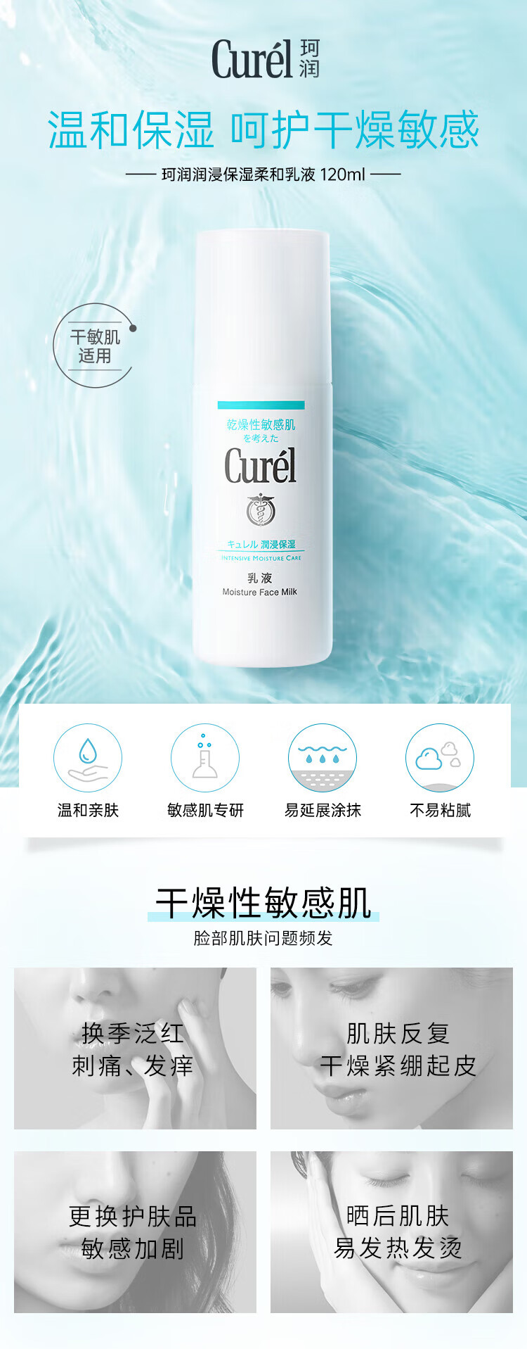 珂润(Curel)润浸保湿补水柔和乳液120ml敏感肌男女通用生日礼物送女友