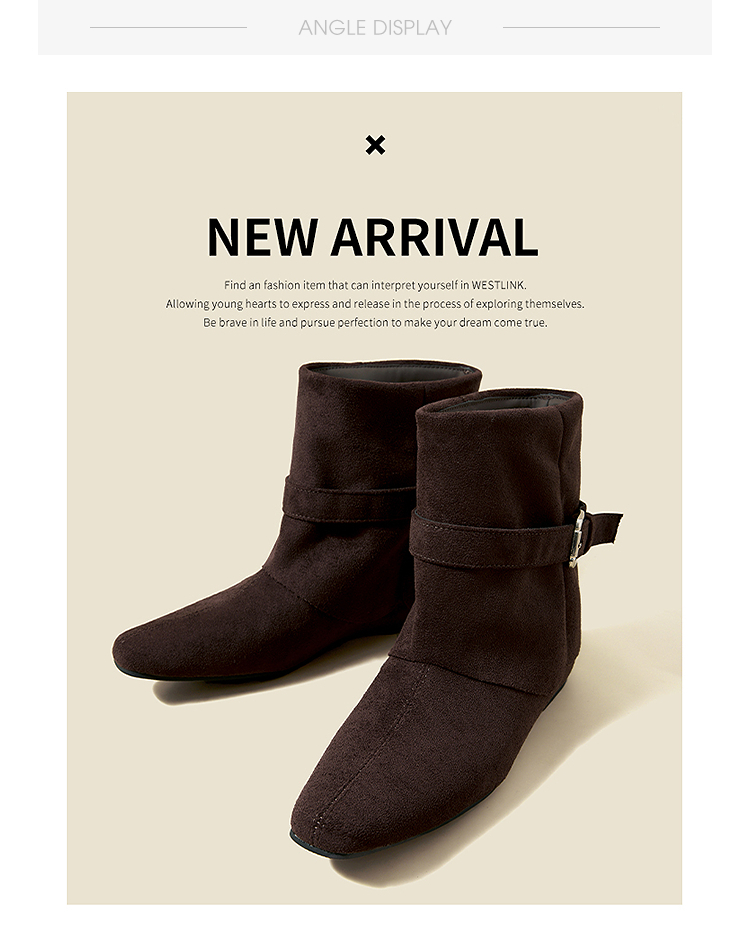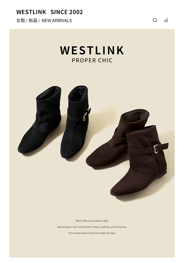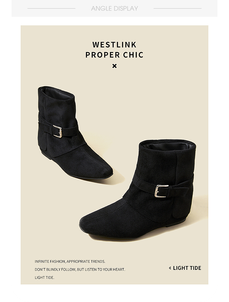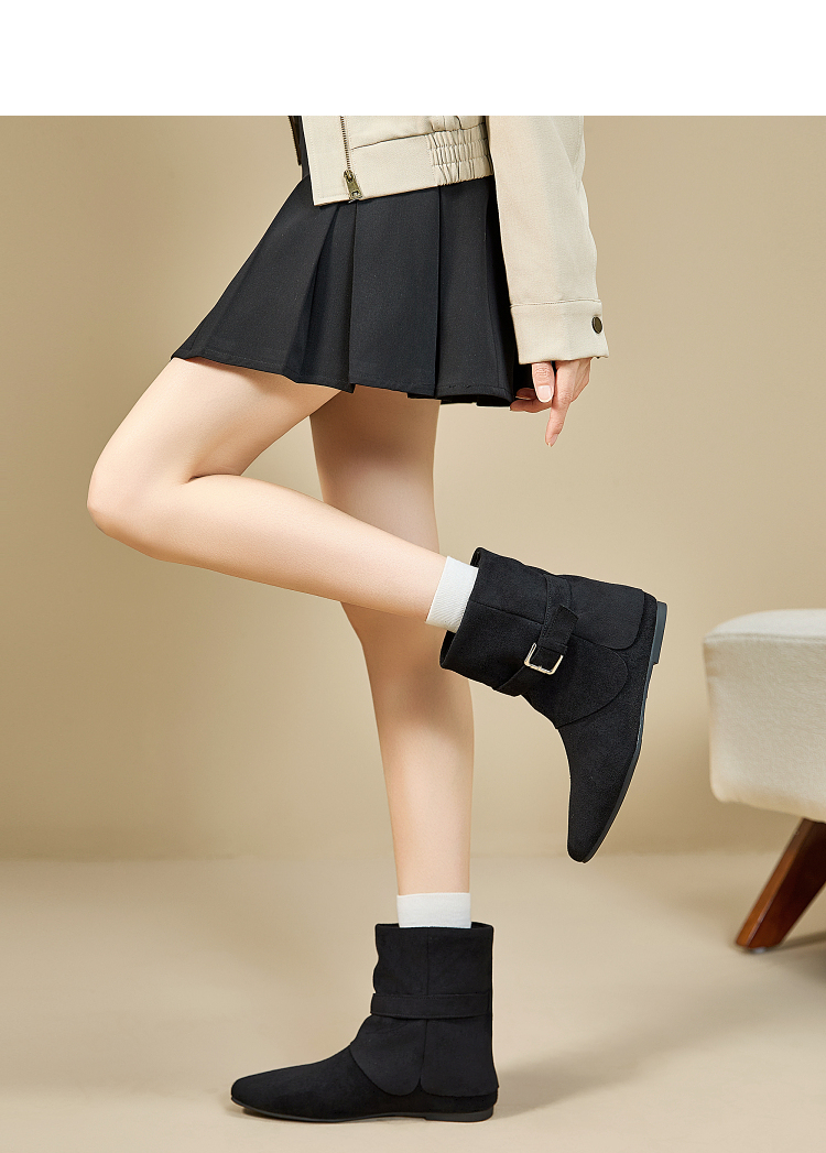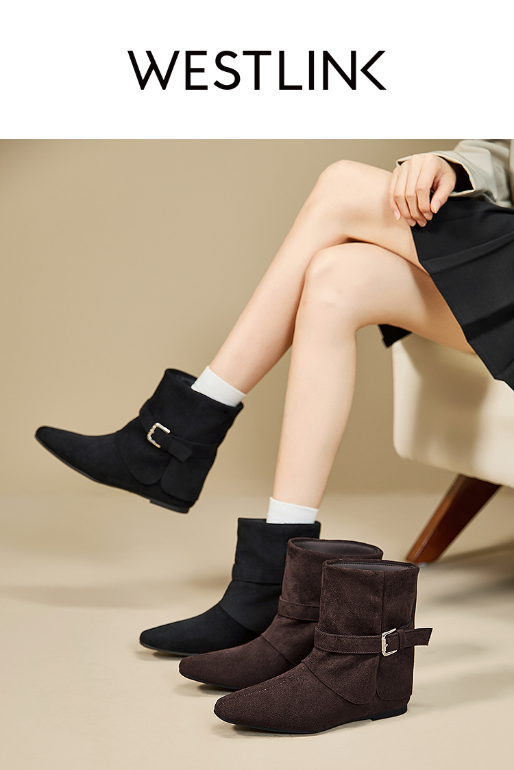 西遇内增高裤管靴女新款秋冬复古单靴美拉德堆堆靴平底短靴子V2257280
