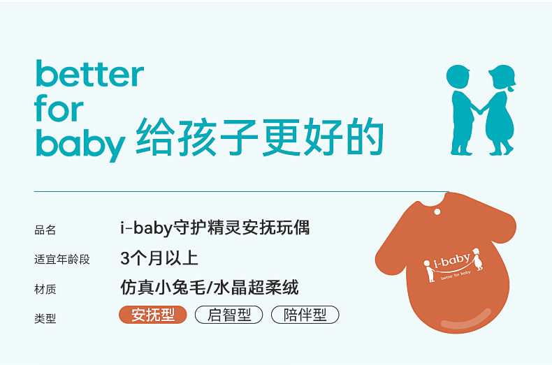 【秒杀29元】i-baby毛绒安抚玩偶儿童宝宝安抚玩偶守护精灵安抚玩偶(35×35cm)