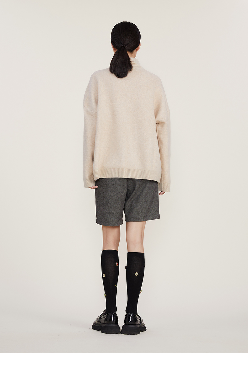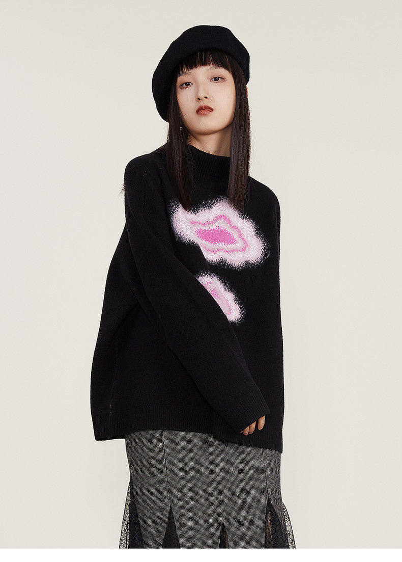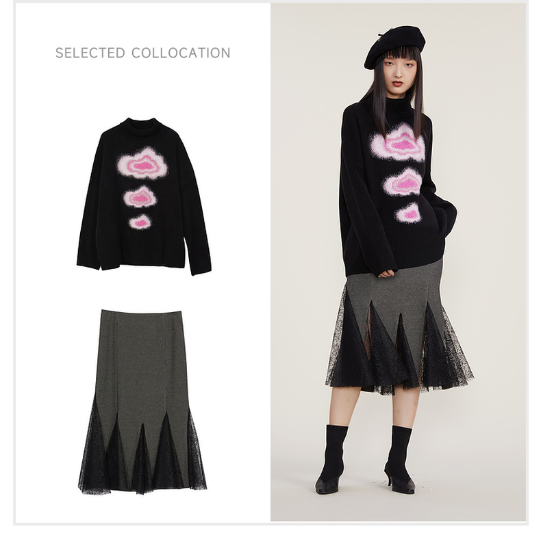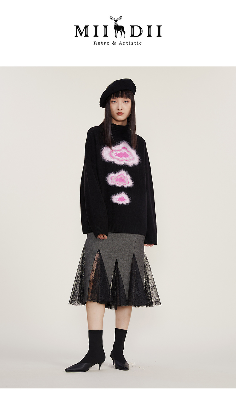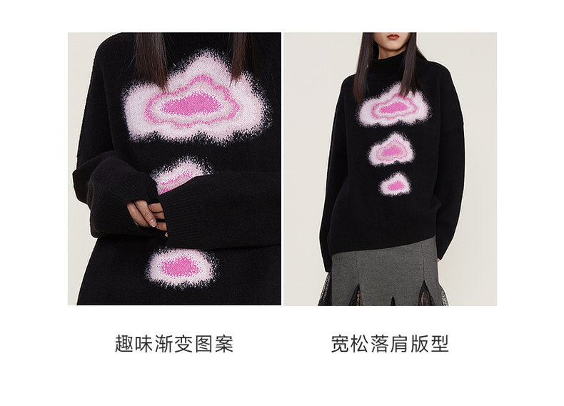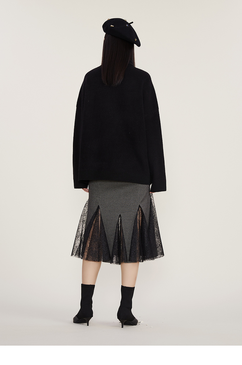 谜底2022冬款宽松中长款H型高领毛衫百搭时尚针织衫毛衣224MZ1942