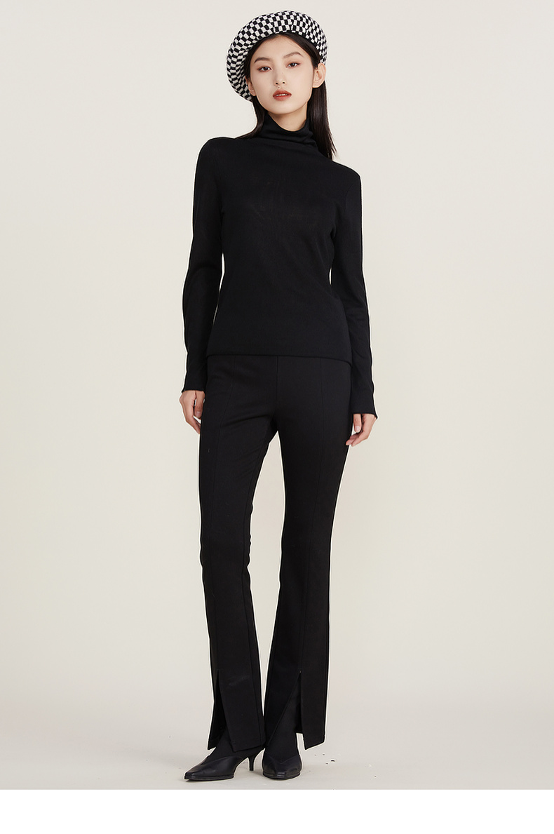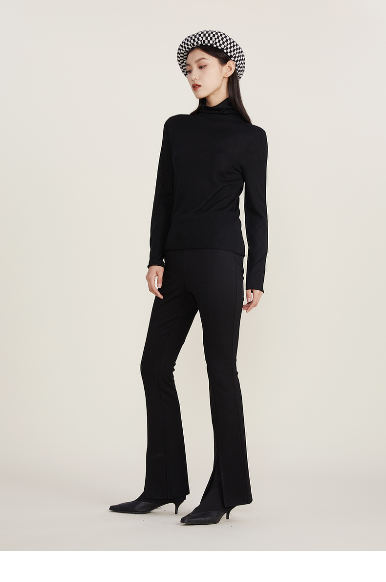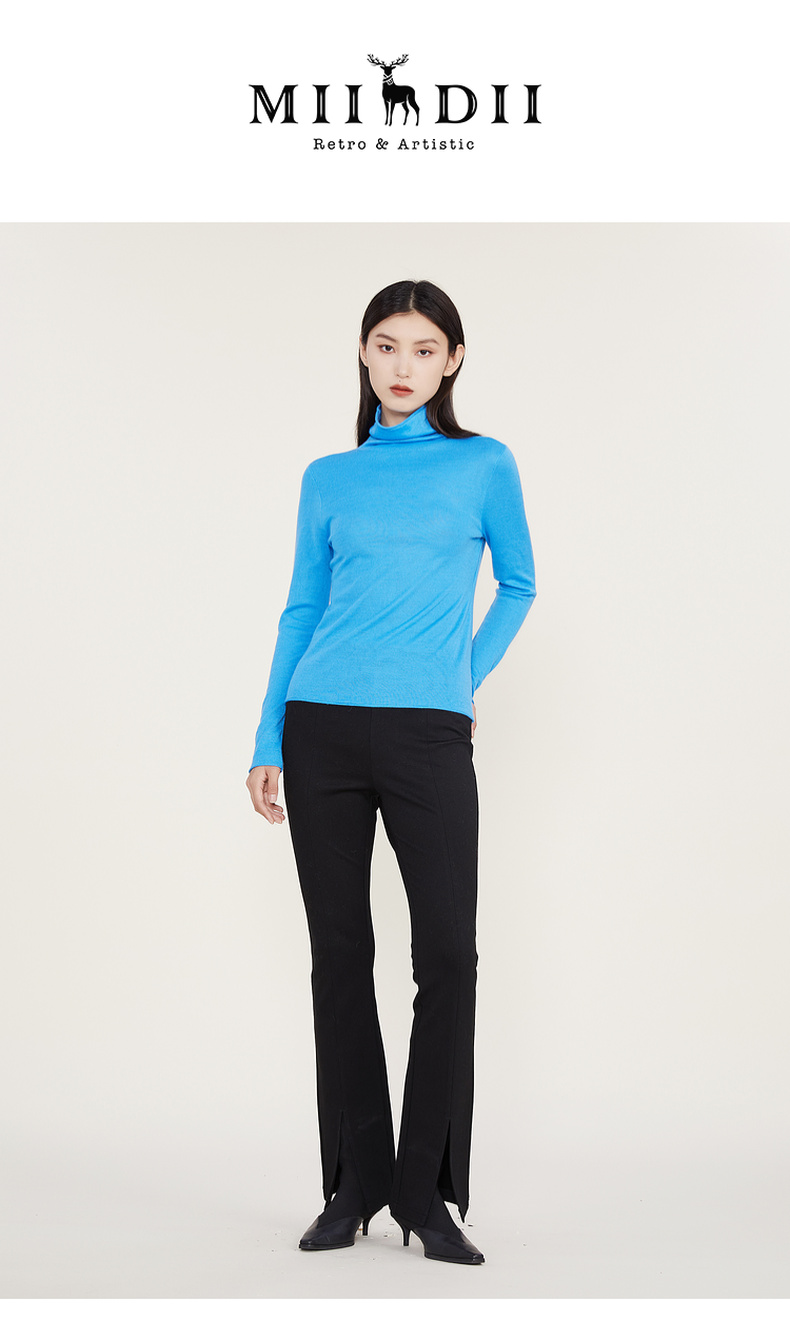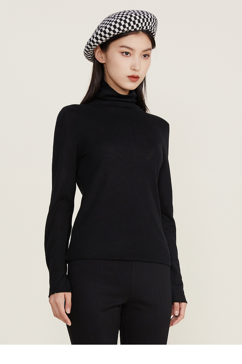 谜底2022冬款纯色打底衫复古百搭高领修身保暖针织衫女224MZ1904