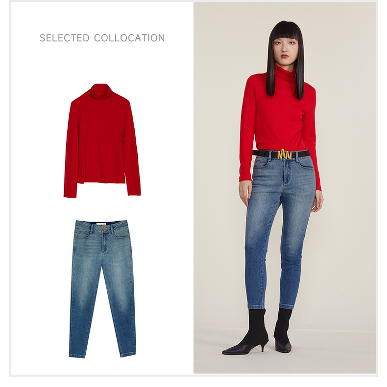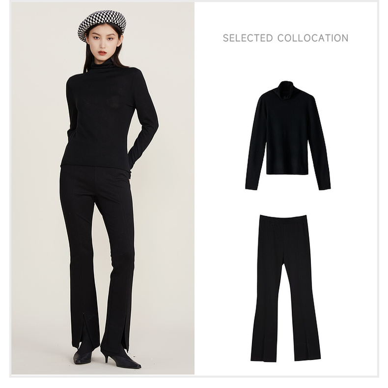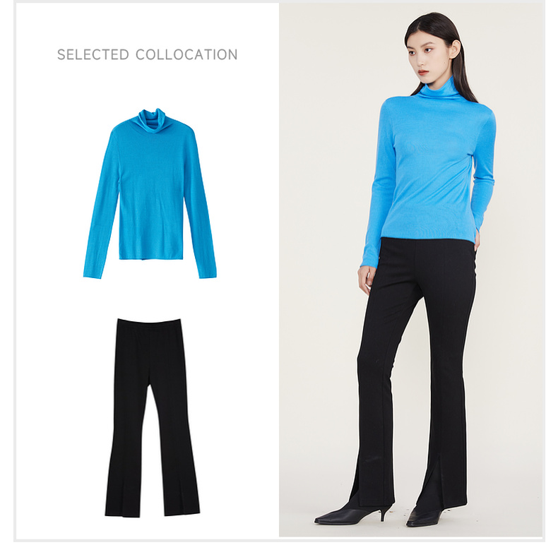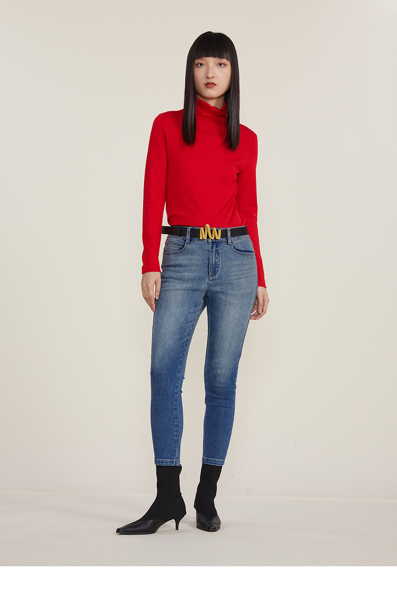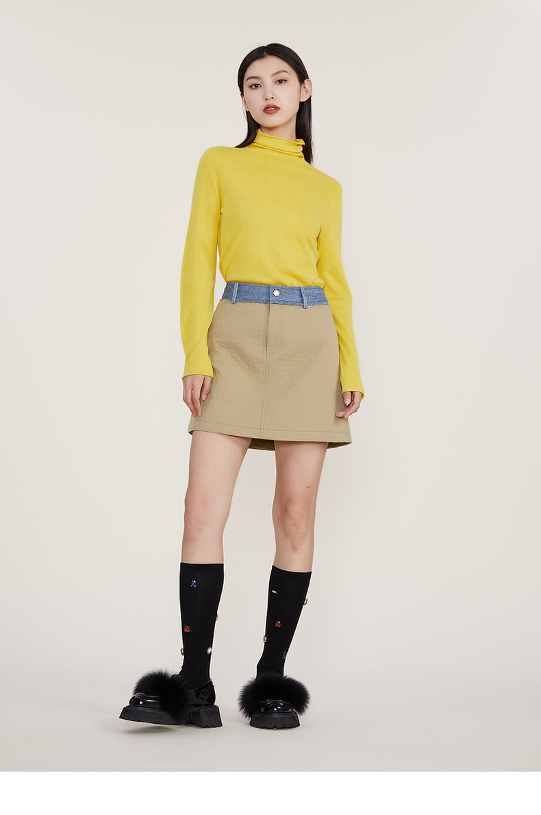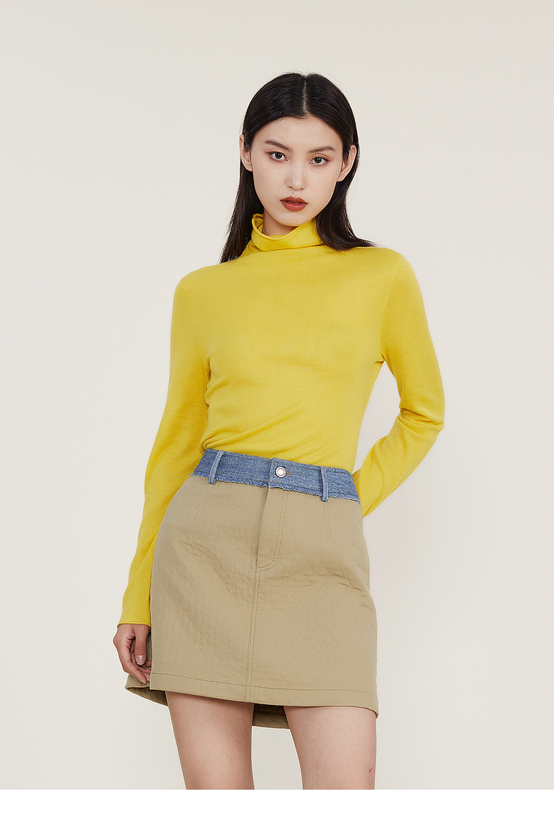 谜底2022冬款纯色打底衫复古百搭高领修身保暖针织衫女224MZ1904
