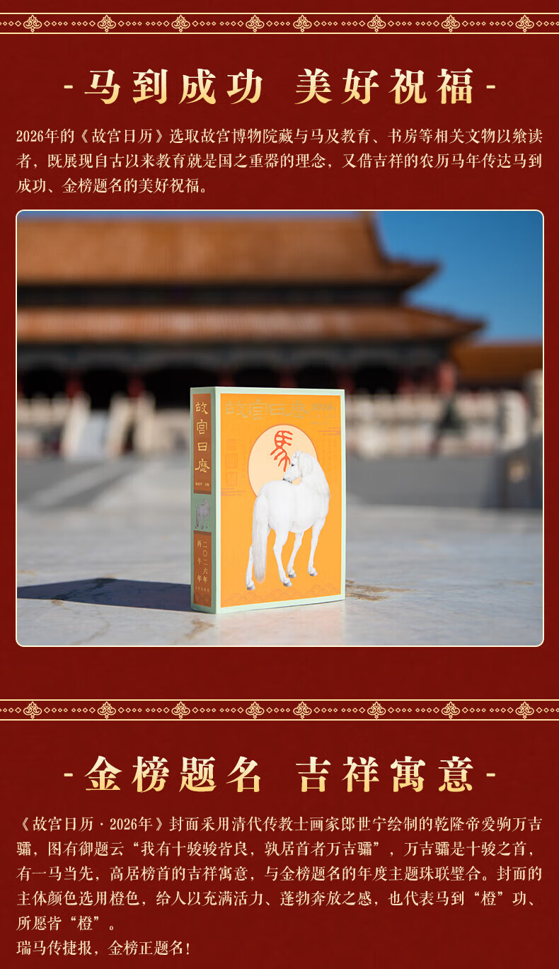 故宫日历2026年生肖版 马年日历 瑞马传捷报 金榜正题名 新年日历台历 故宫博物院文创生肖日历