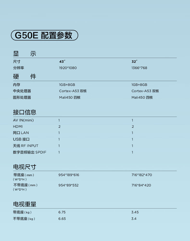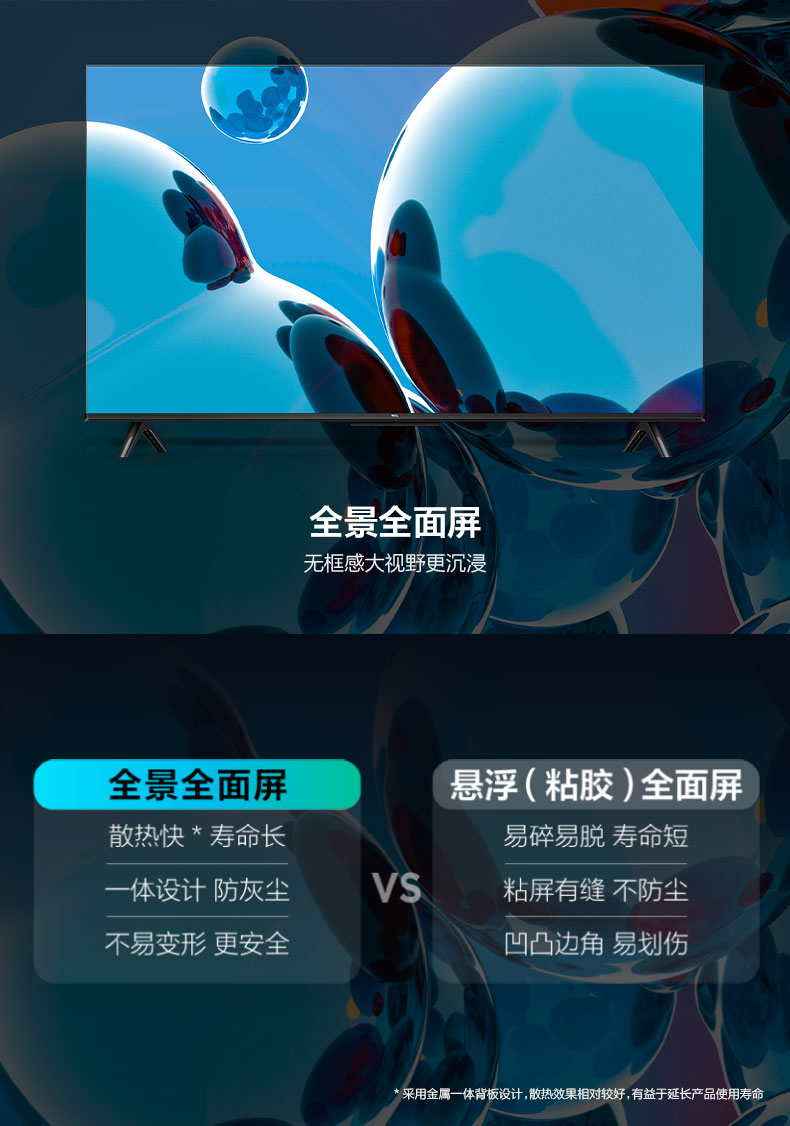 TCL 43G50E 43英寸 智能2K电视 金属背板 全景全面屏 DTS双解码 一键投屏 二级能效