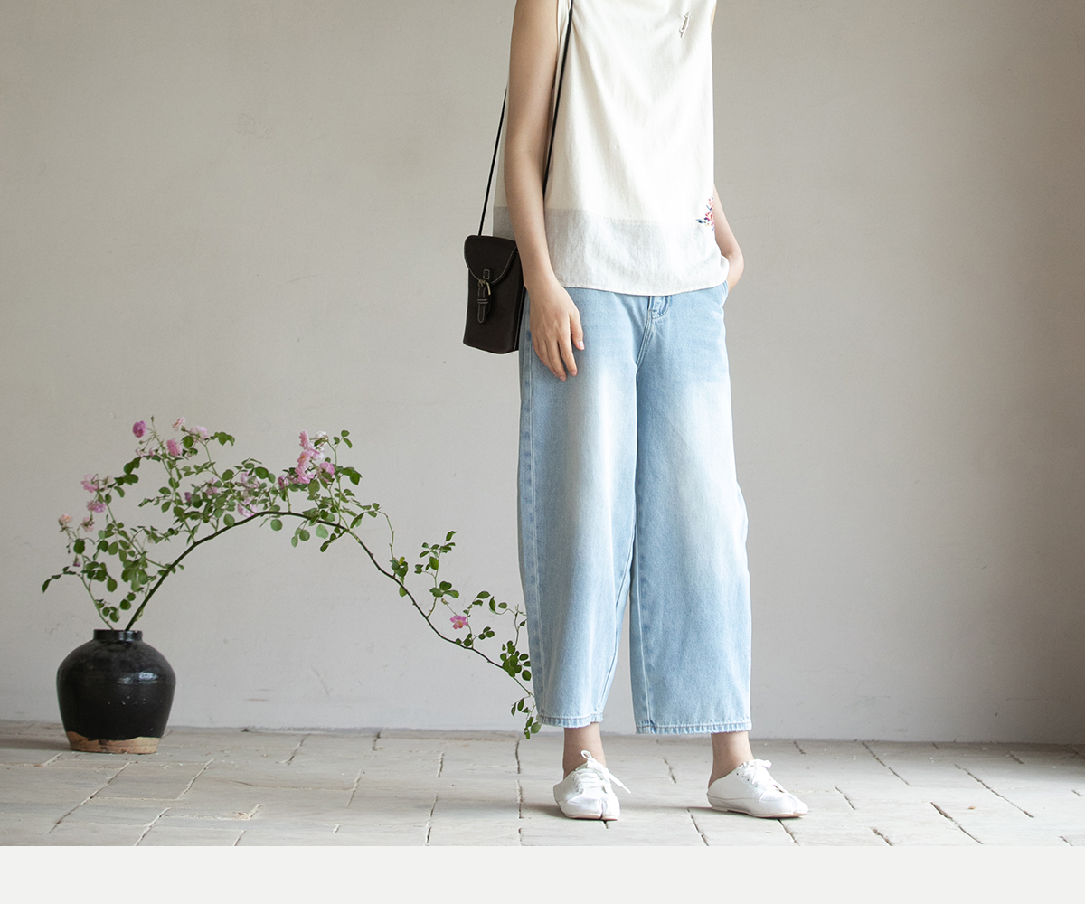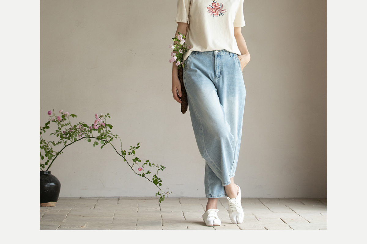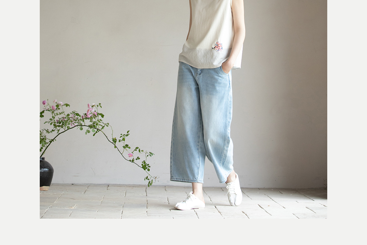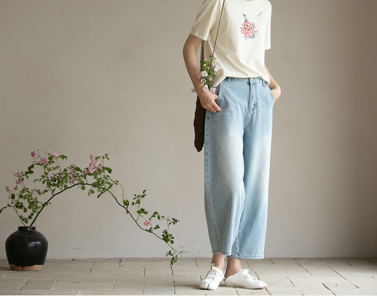 牧衣游原创 牛仔休闲长裤女夏季新款显瘦复古宽松百搭牛仔裤 冷决