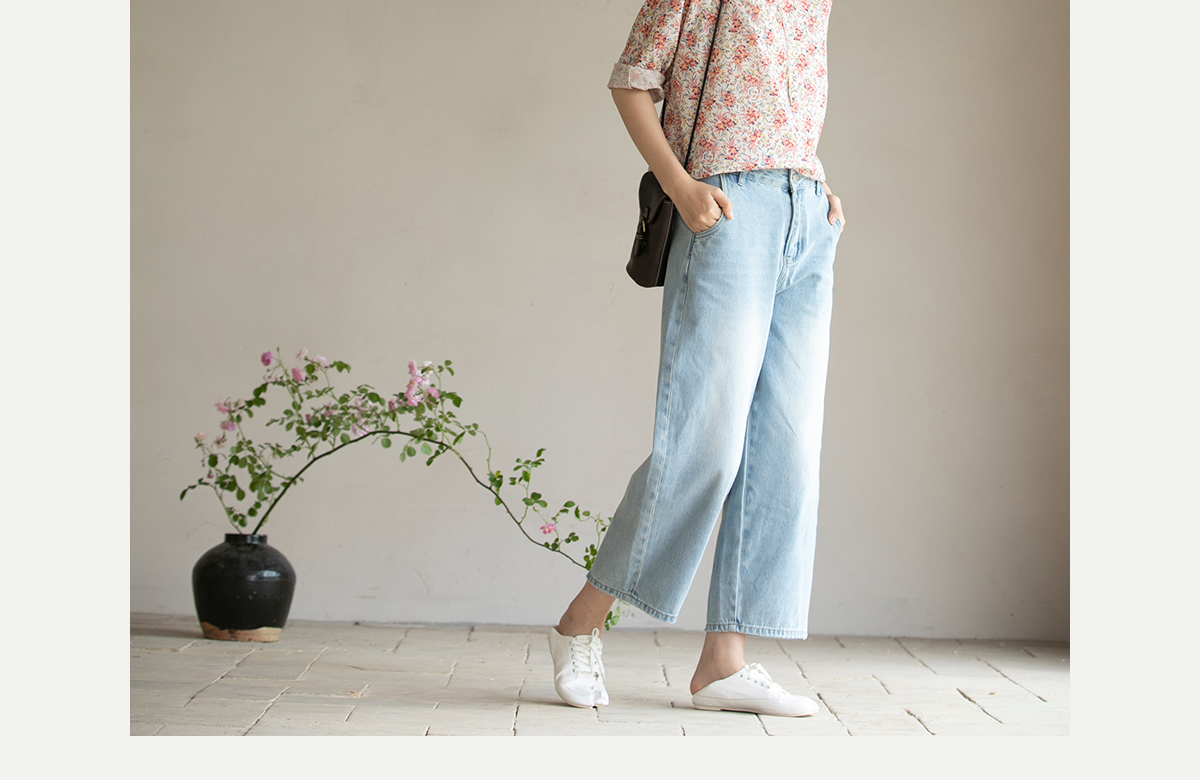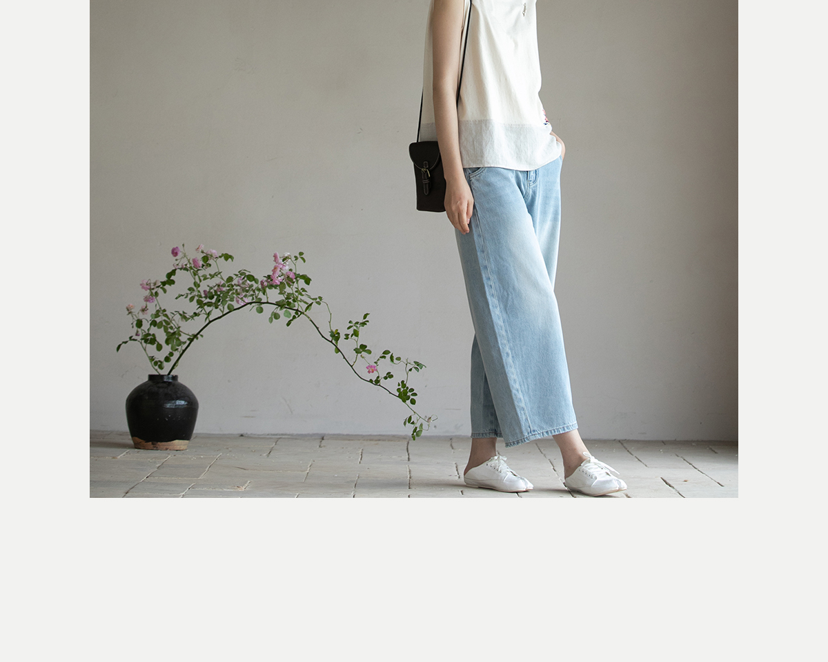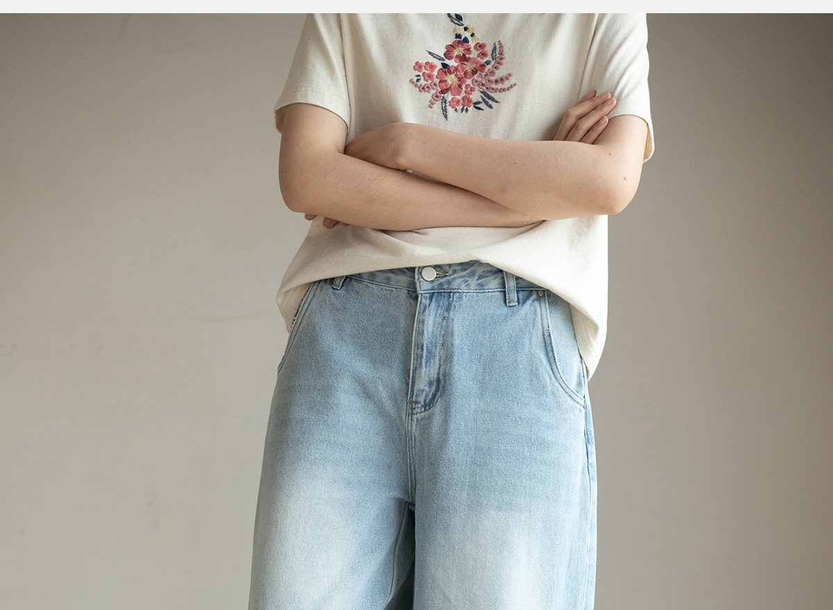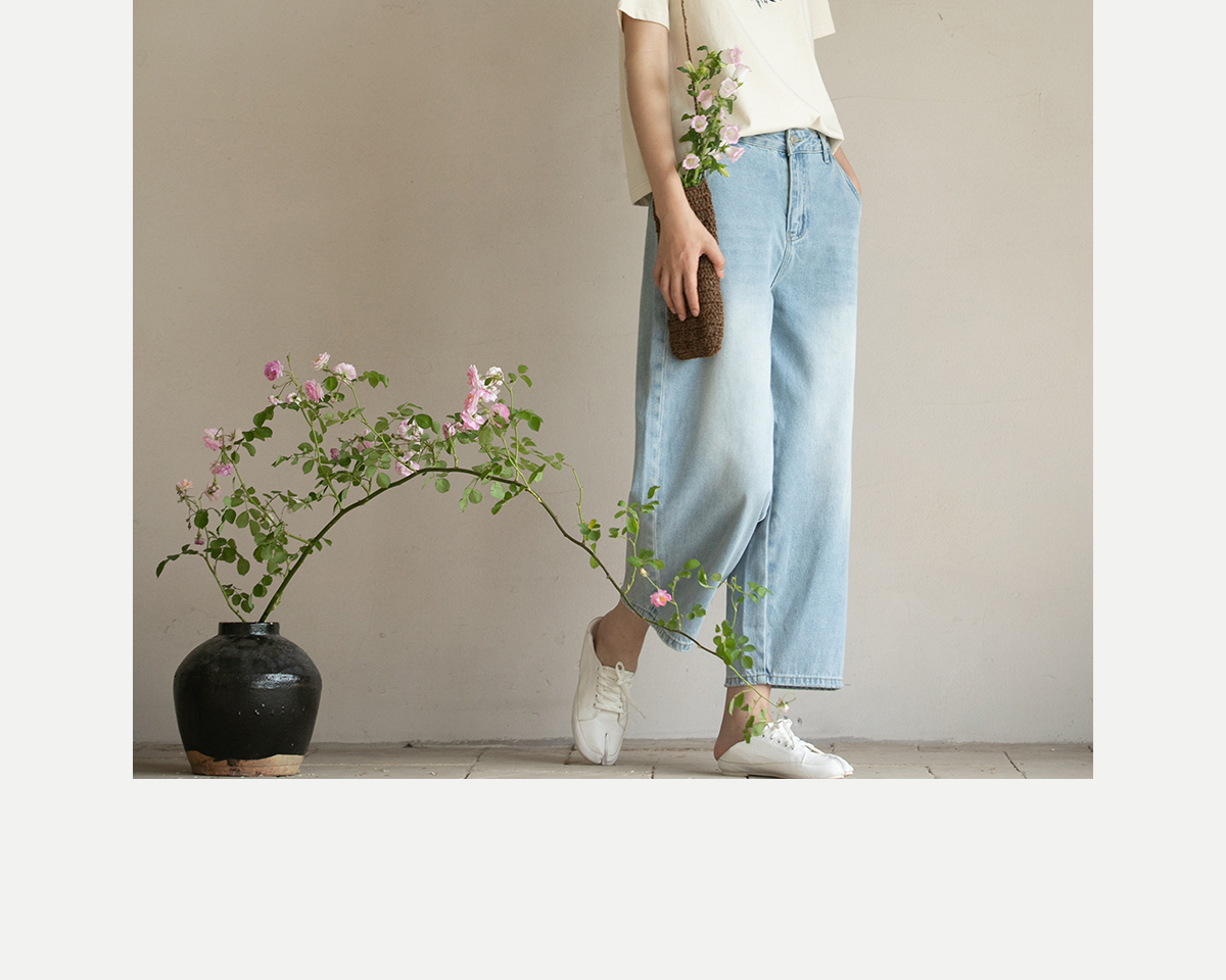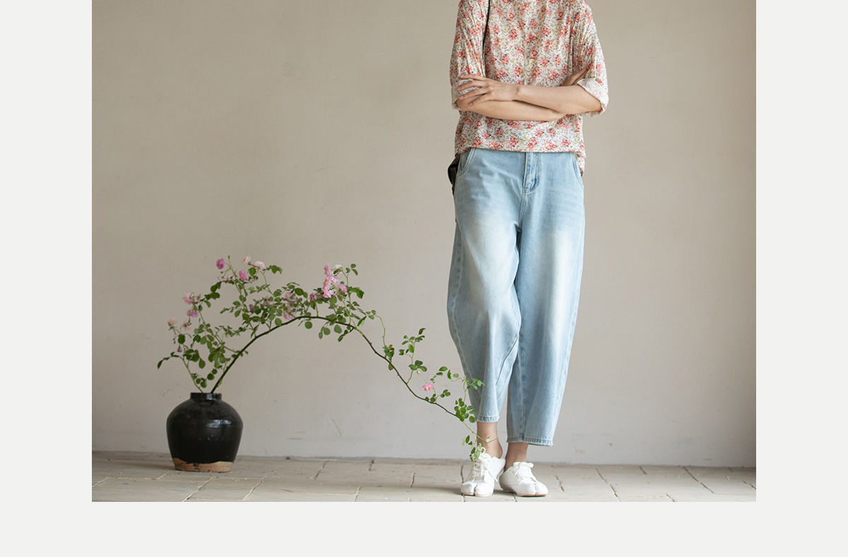 牧衣游原创 牛仔休闲长裤女夏季新款显瘦复古宽松百搭牛仔裤 冷决