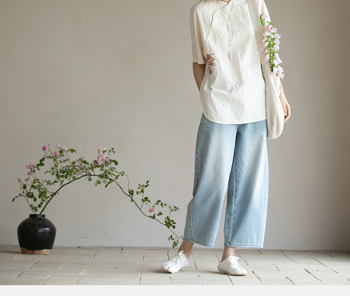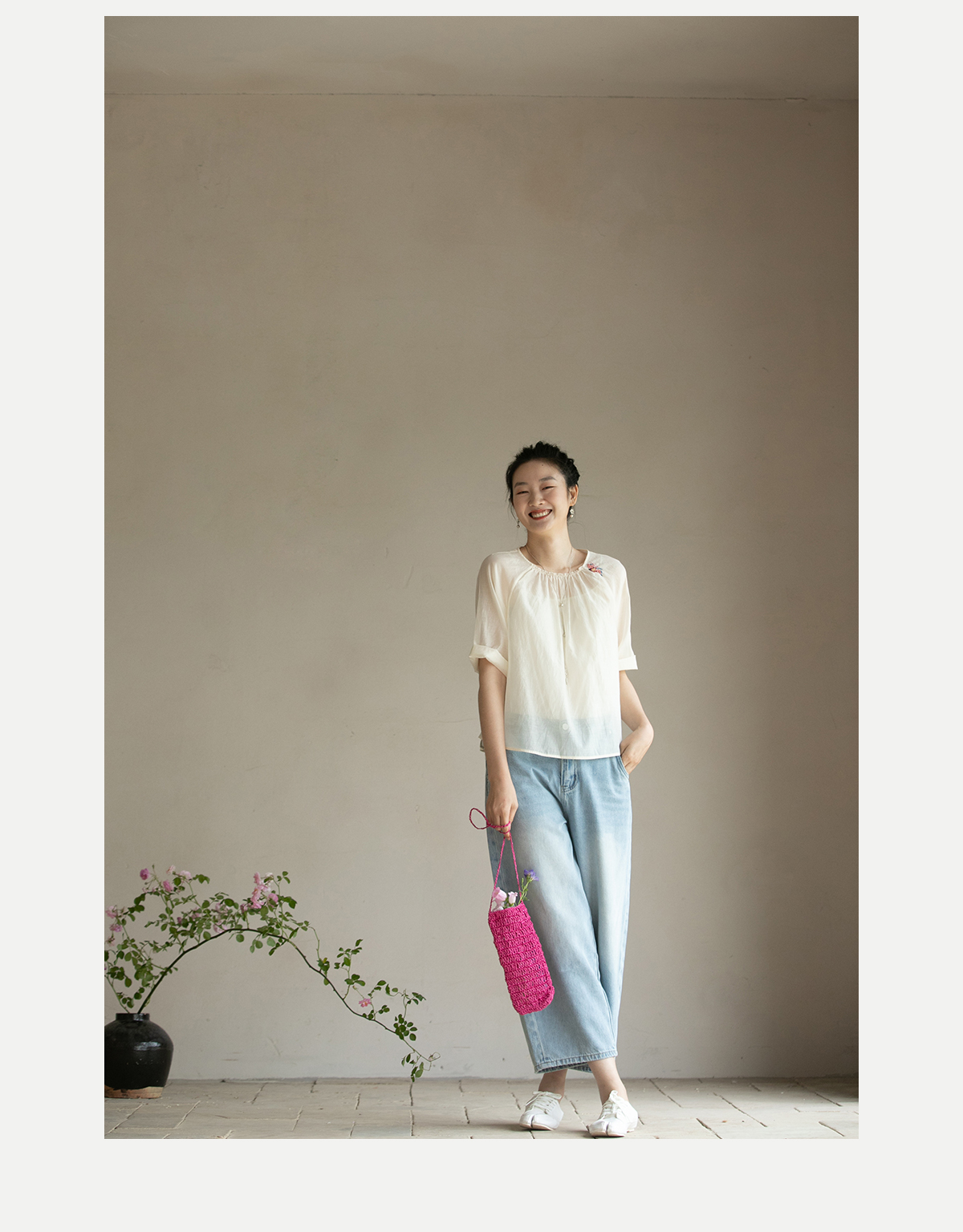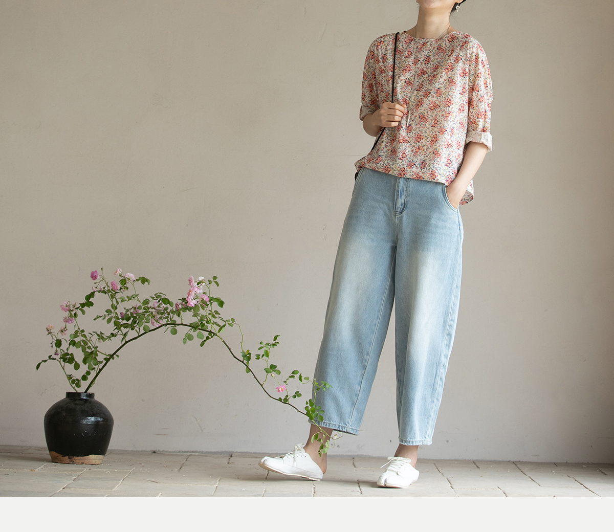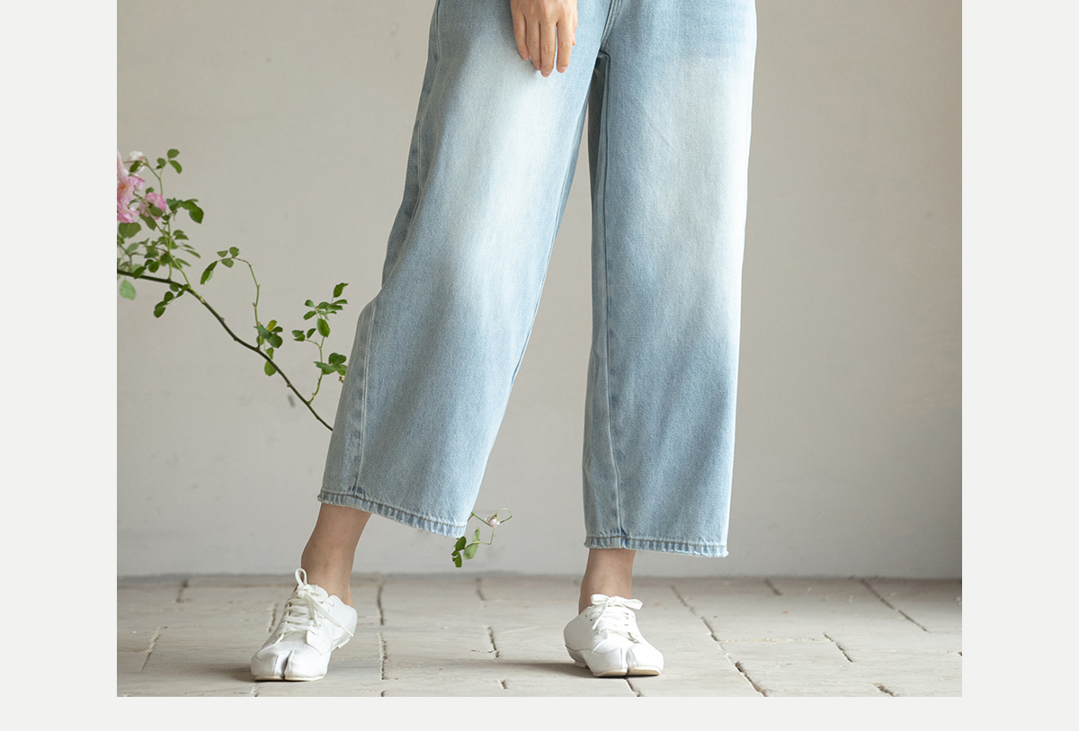 牧衣游原创 牛仔休闲长裤女夏季新款显瘦复古宽松百搭牛仔裤 冷决