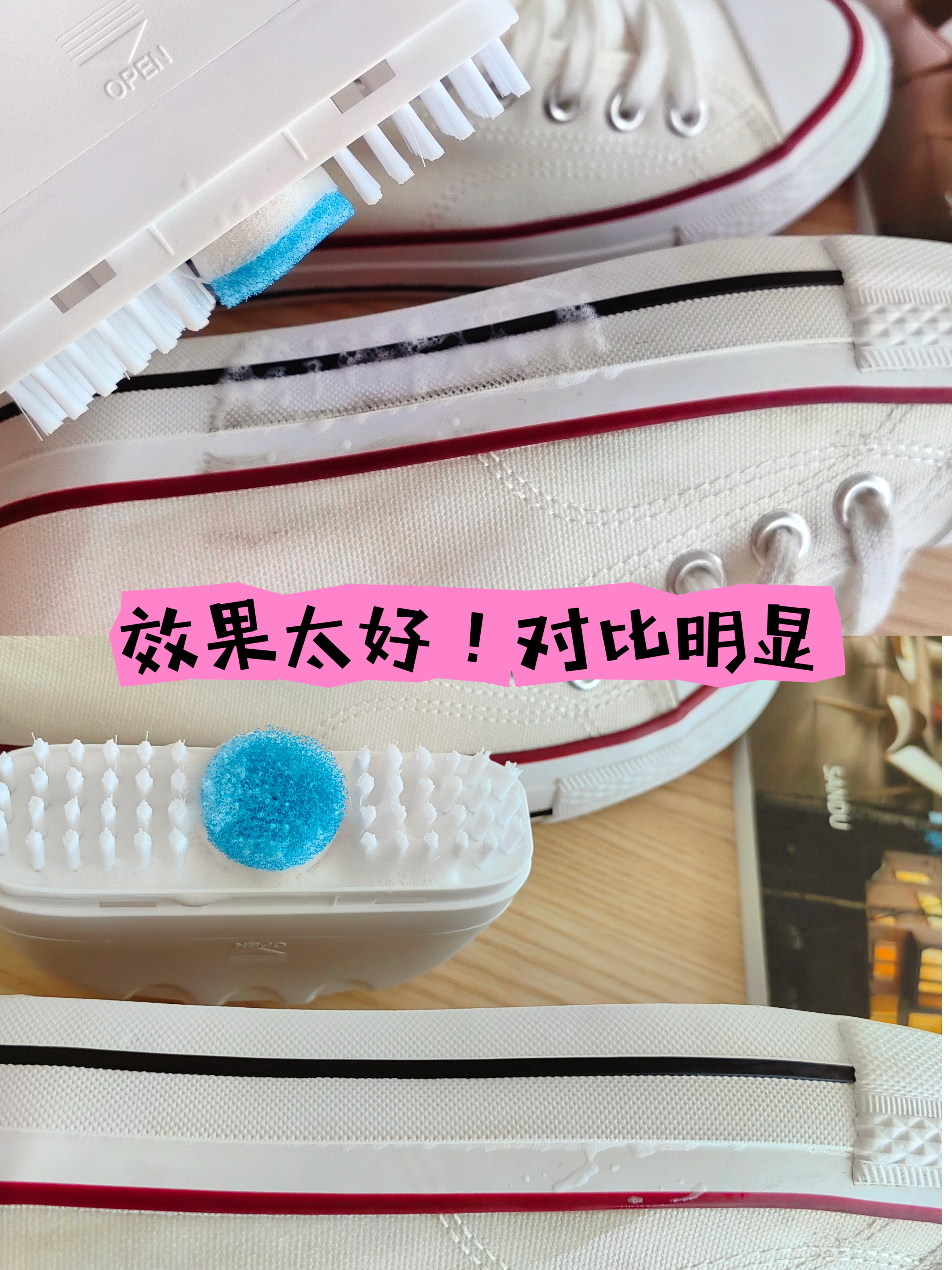 ✅免浸泡,一刷一擦,两步轻松刷鞋