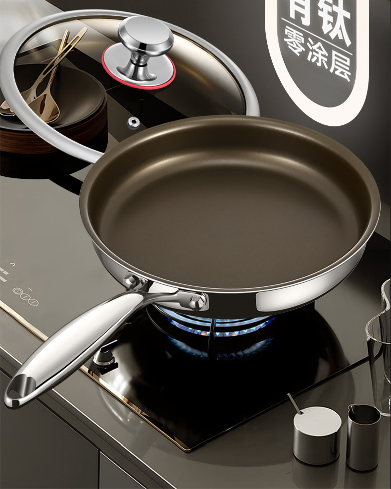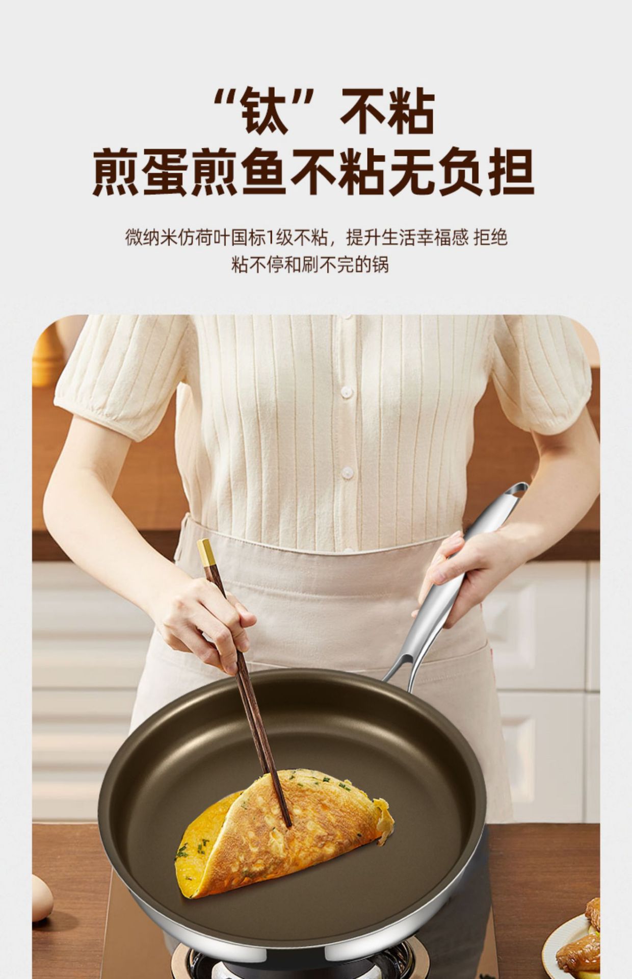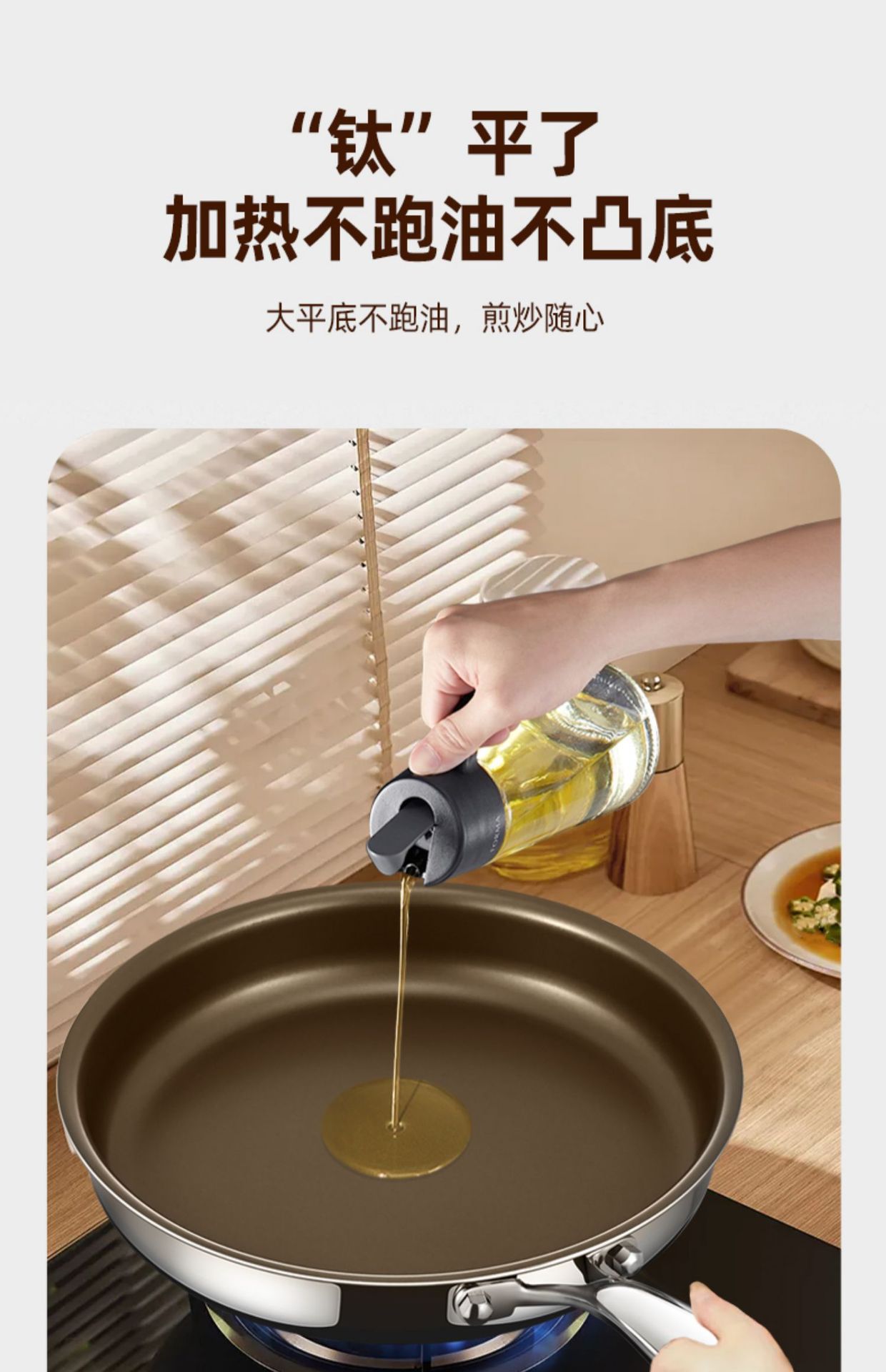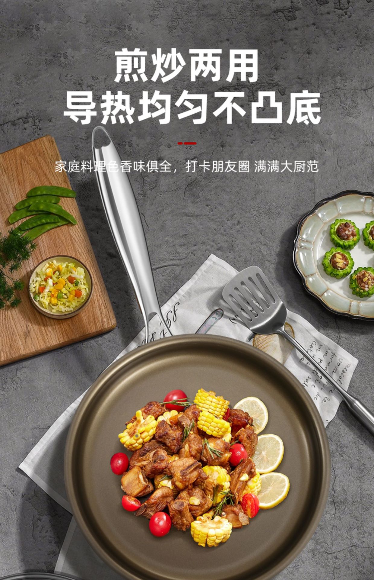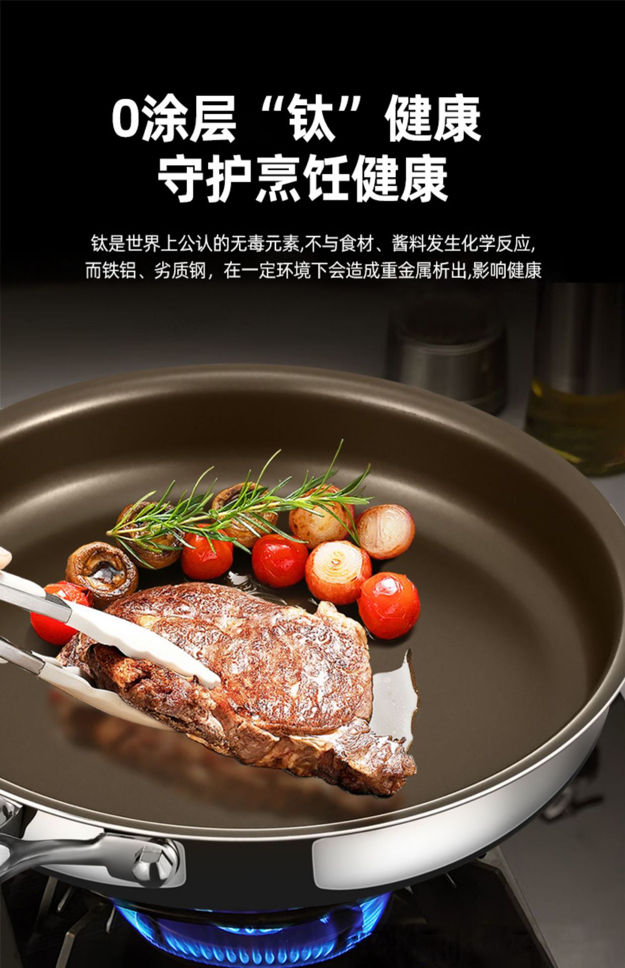 【0涂层!钛加厚平底锅】有钛无涂层平底锅 316不锈钢平底锅 家用不粘锅烙饼电磁炉专用 牛排煎蛋锅