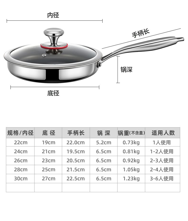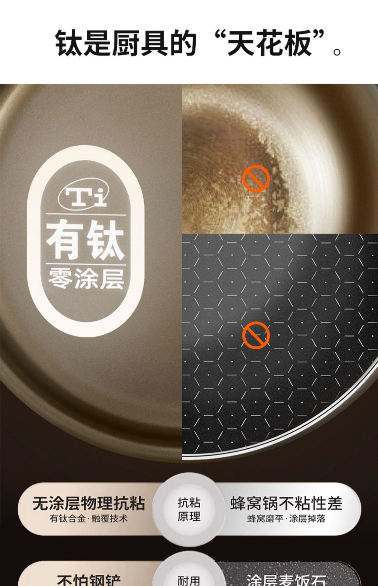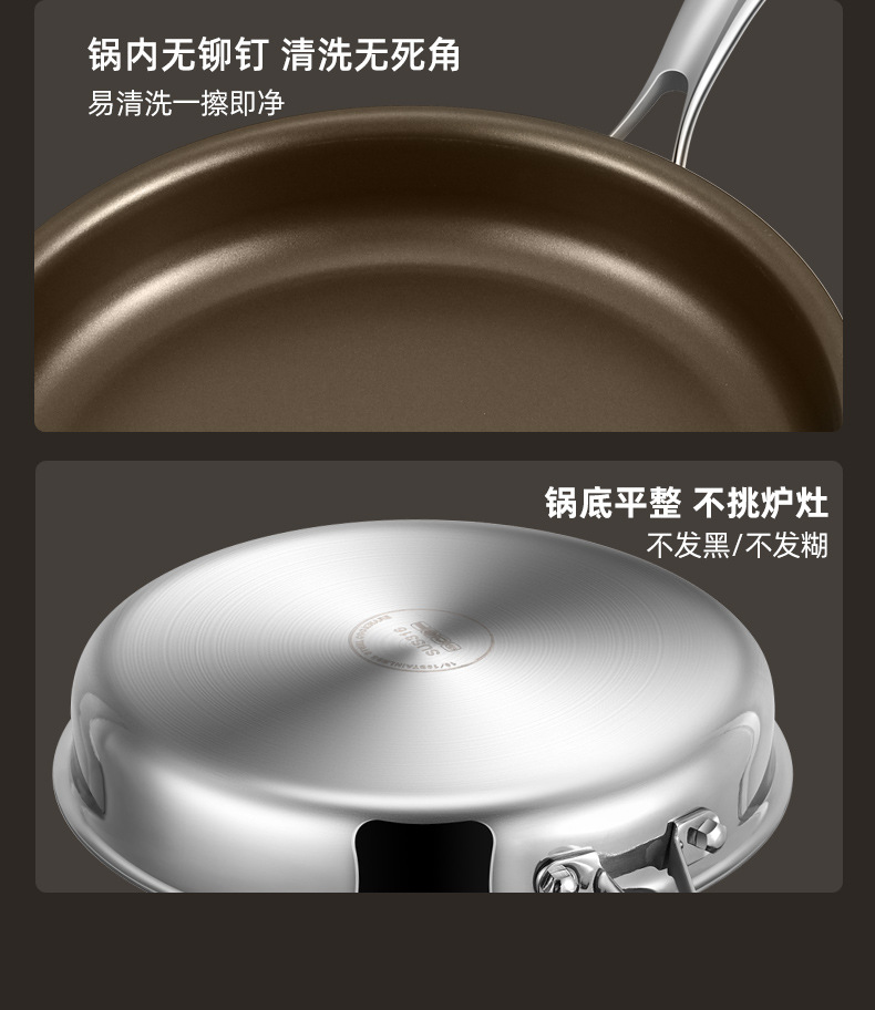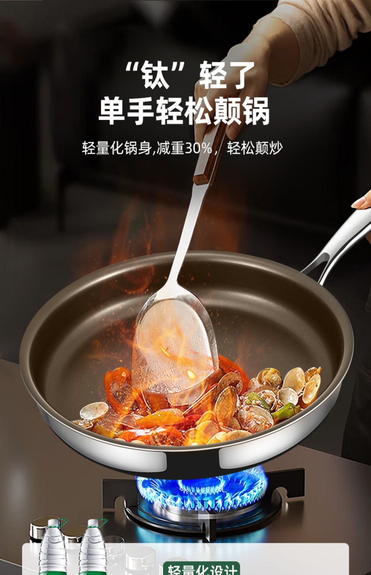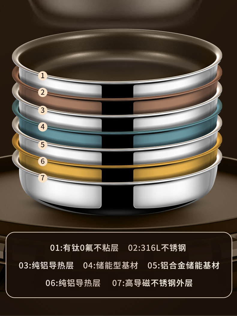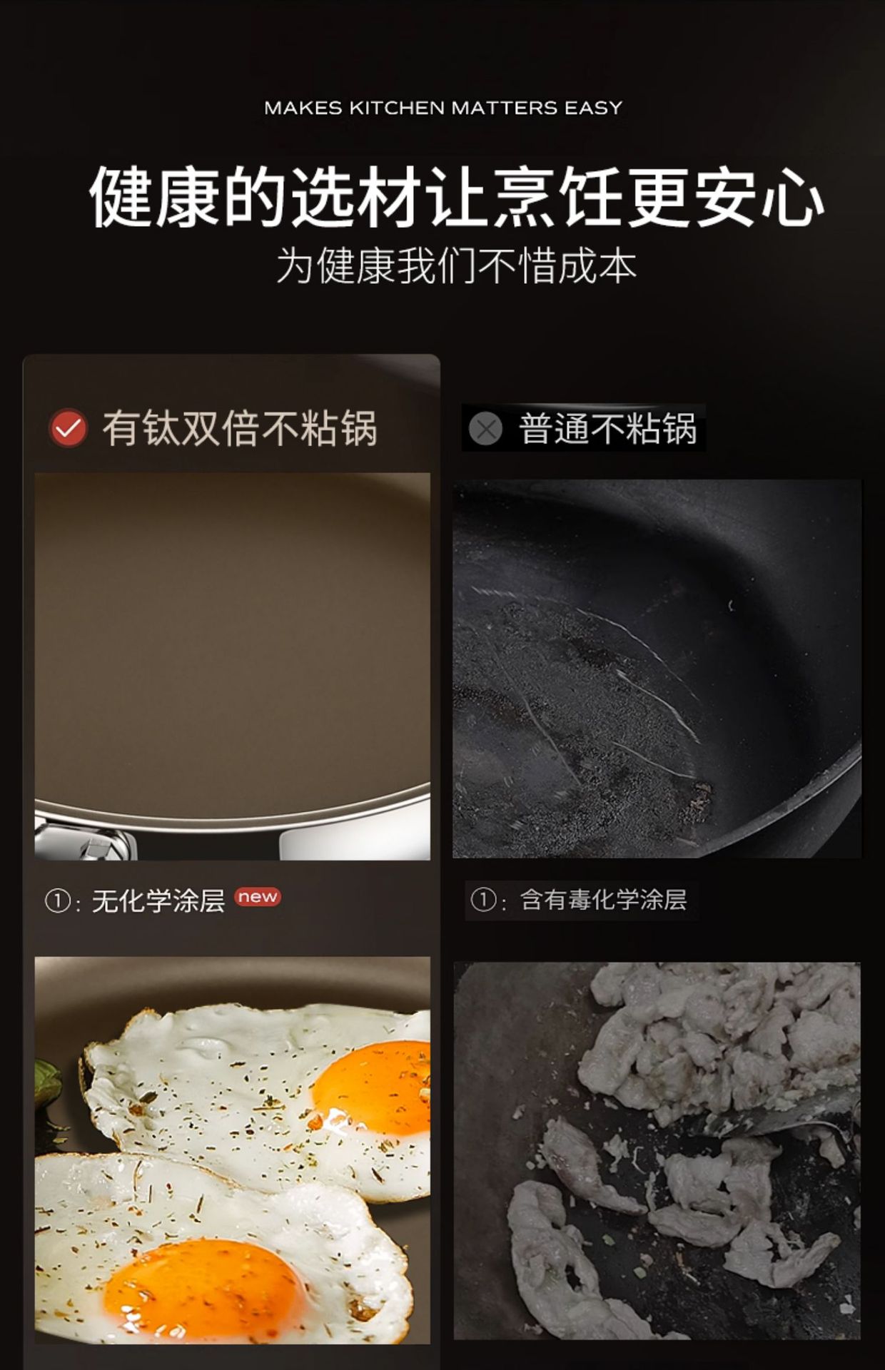 【0涂层!钛加厚平底锅】有钛无涂层平底锅 316不锈钢平底锅 家用不粘锅烙饼电磁炉专用 牛排煎蛋锅
