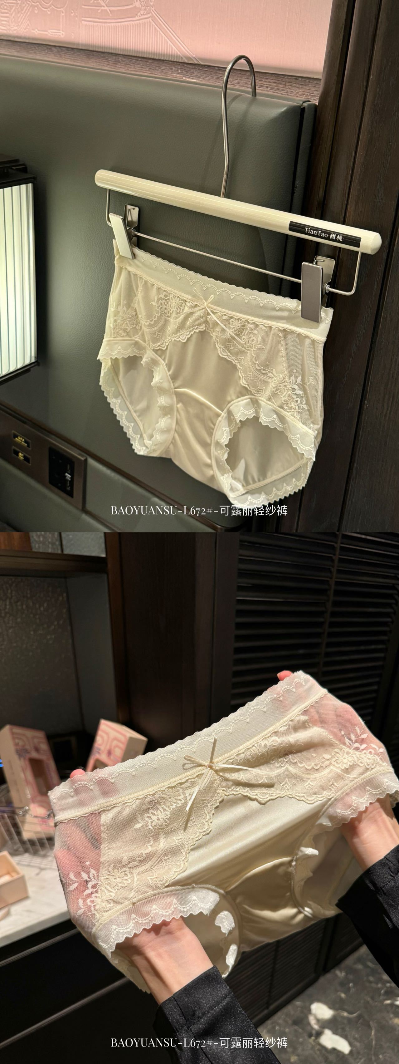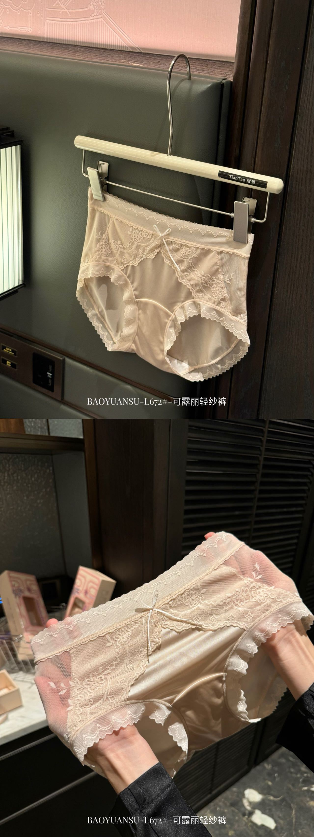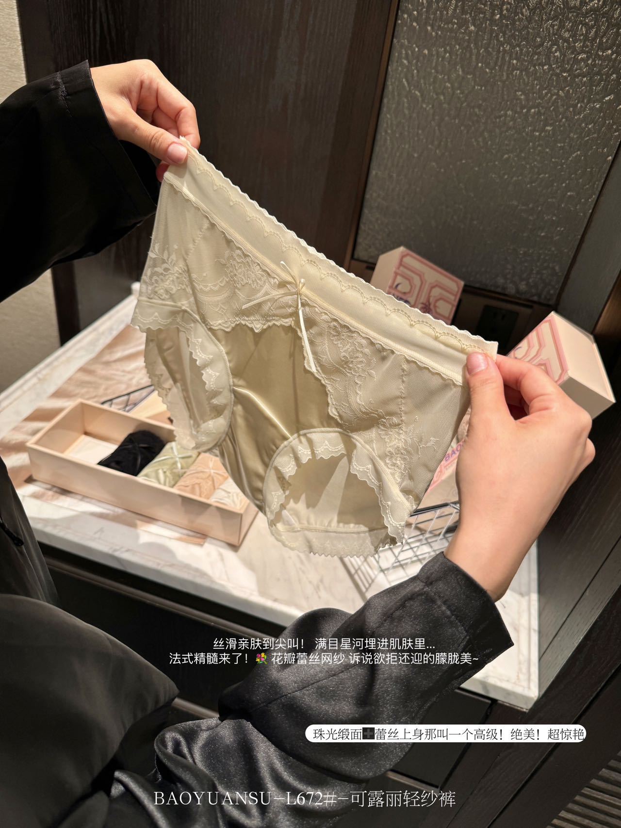 【超值5条盒装❗️轻奢轻纱内裤】L672#可露丽轻纱内裤 女柔软舒适透气珠光缎面蕾丝提花女士三角裤