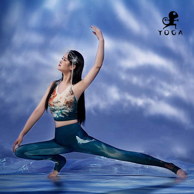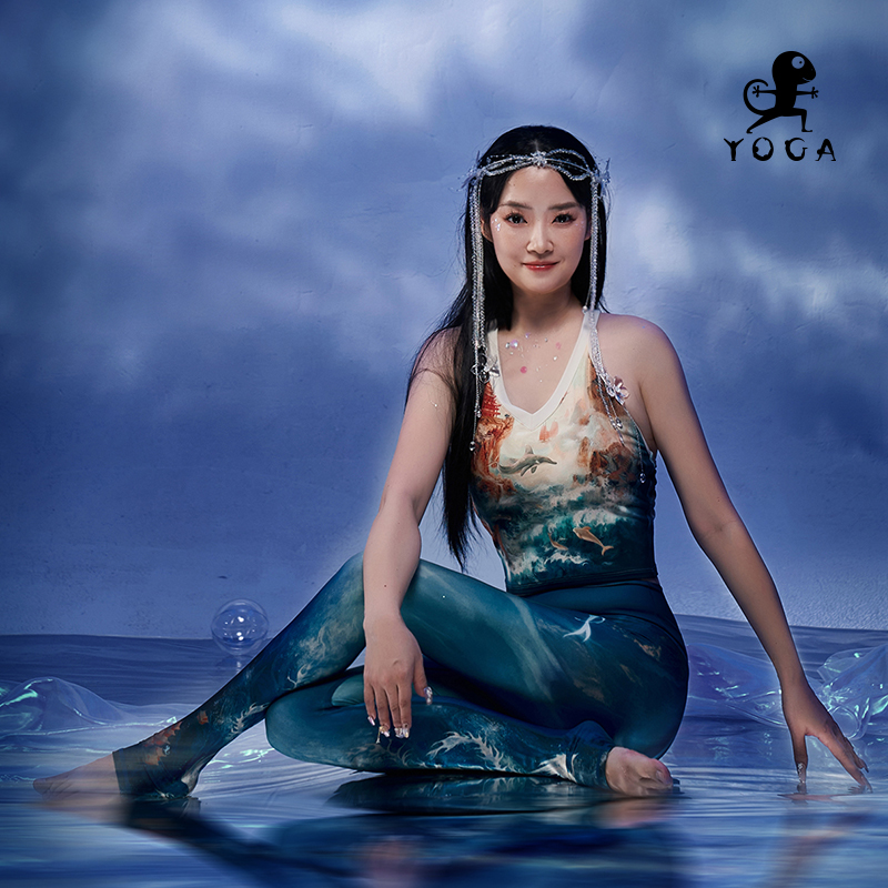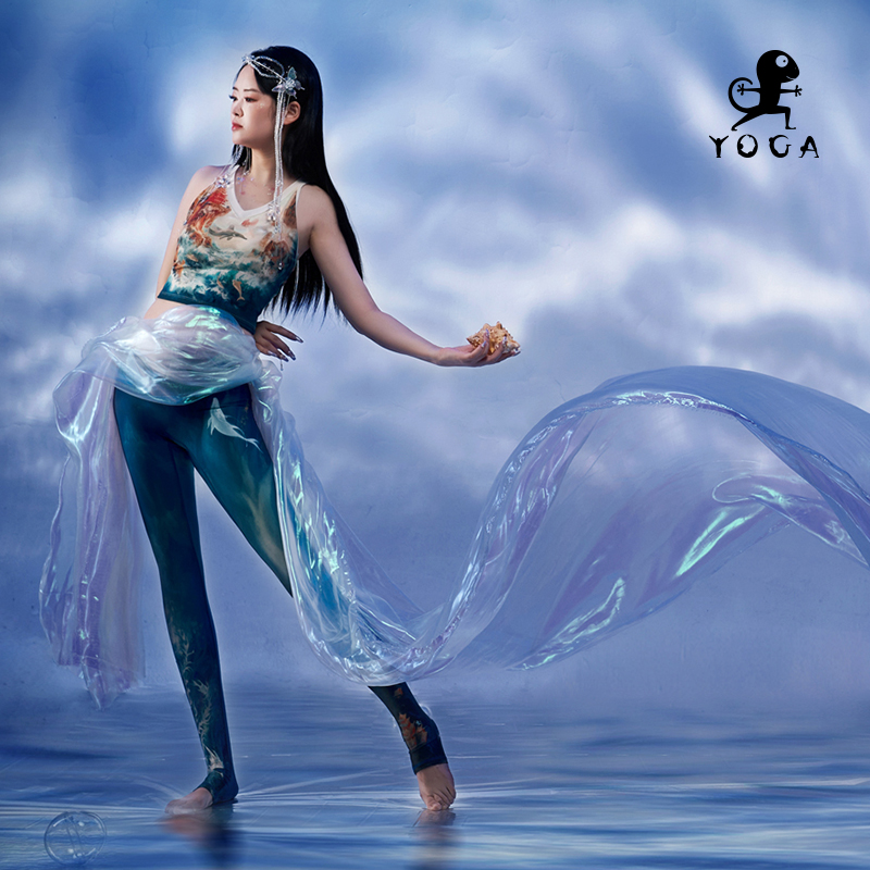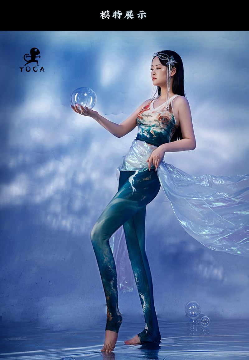 壁虎瑜伽水母纱面料【大鱼海棠-上衣】限量款印花瑜伽上衣(可拆卸胸垫)清仓不退不换
