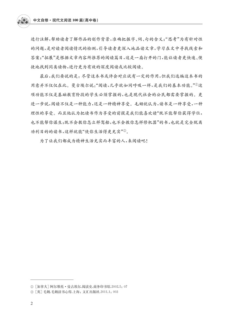 本书由《中文自修》编辑部组织编写,是针对高中语文学习,从杂志历年“现代文阅读特刊”中精选的100篇名家名作。