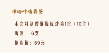 啤酒炸鸡套餐抢购价:59元/套(门市价130)