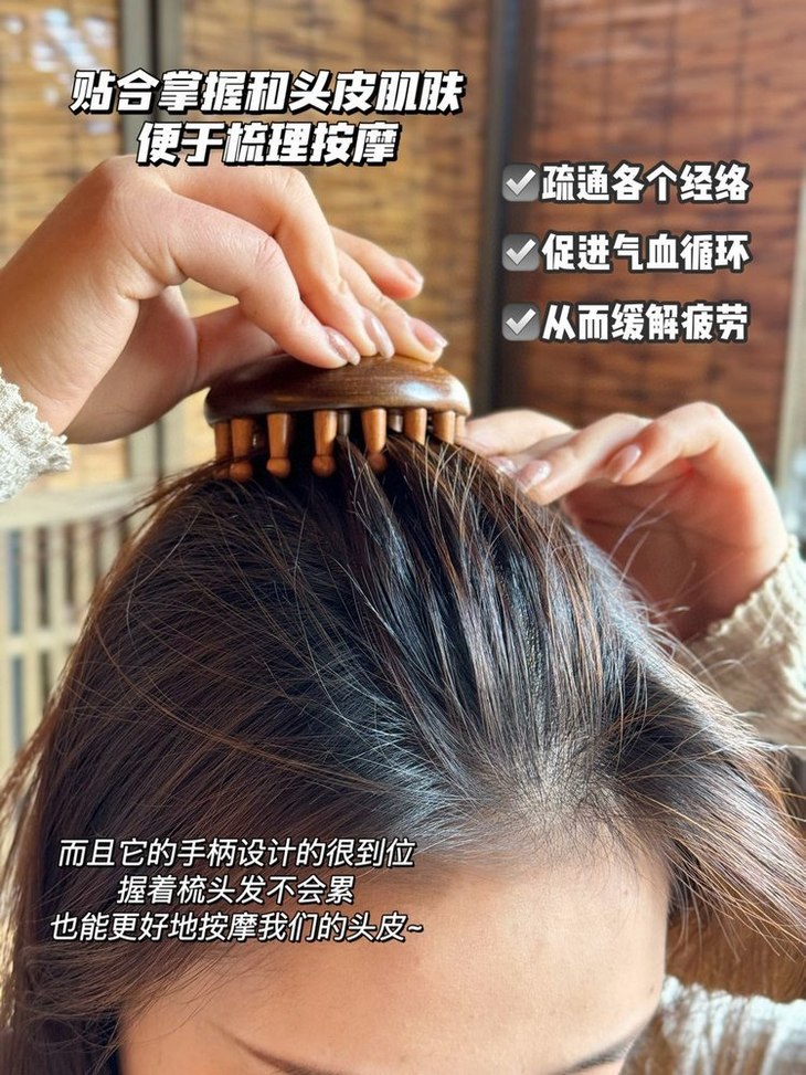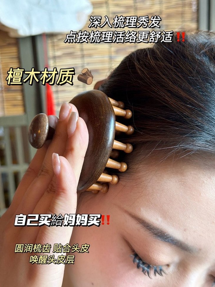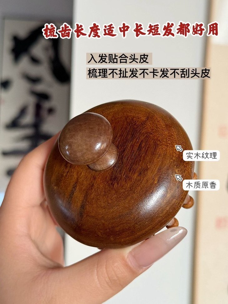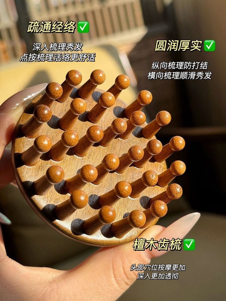 这个圆形檀木按摩梳真的爱了姐妹们👭
