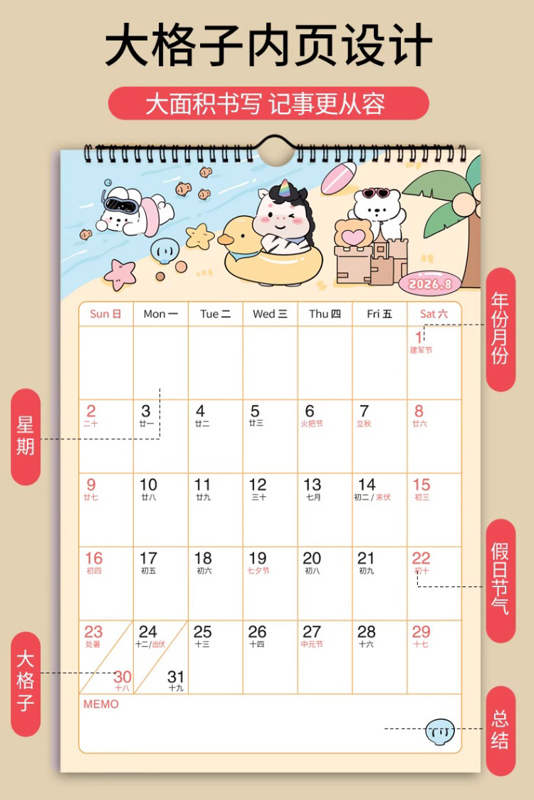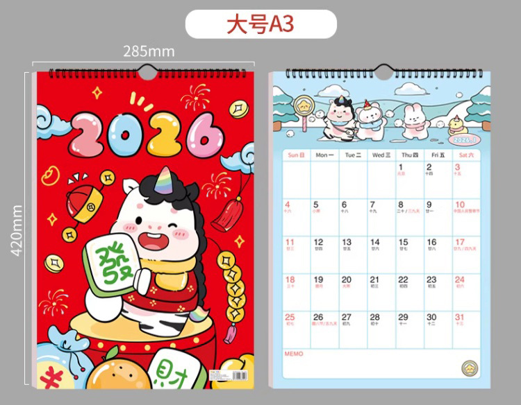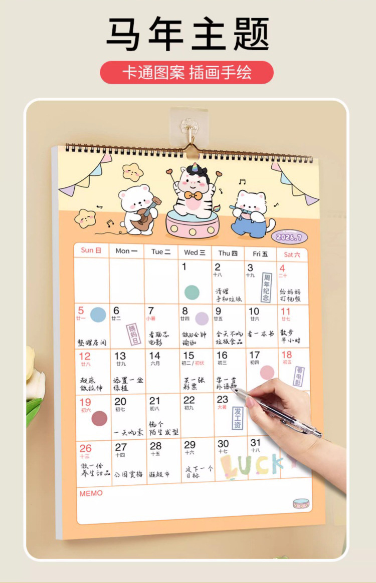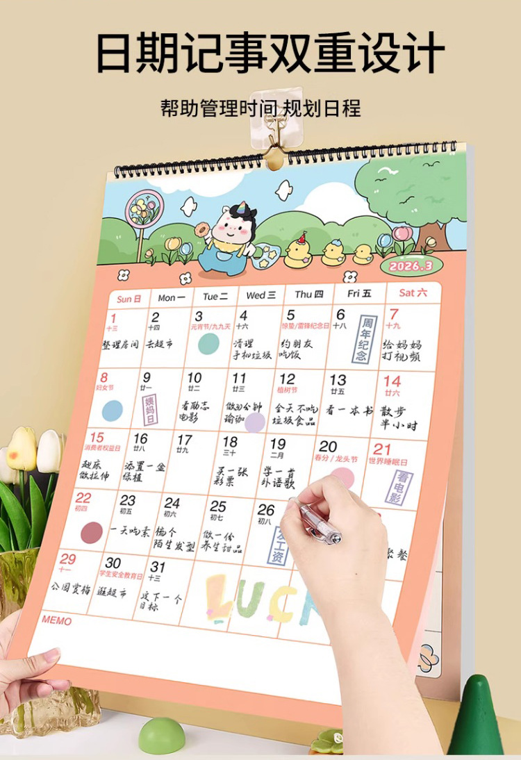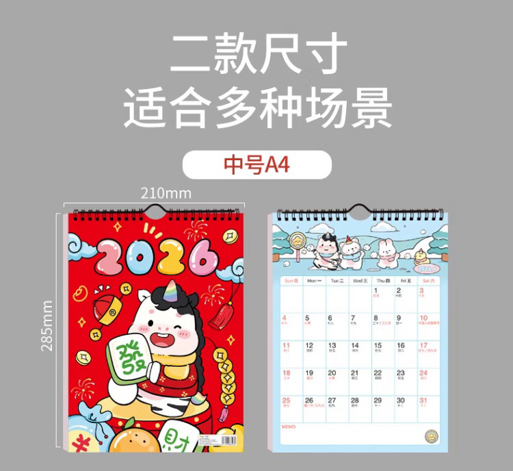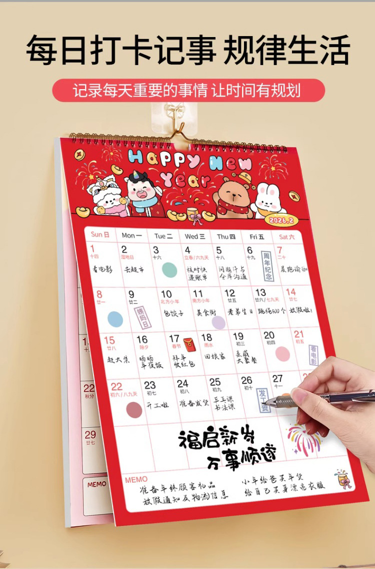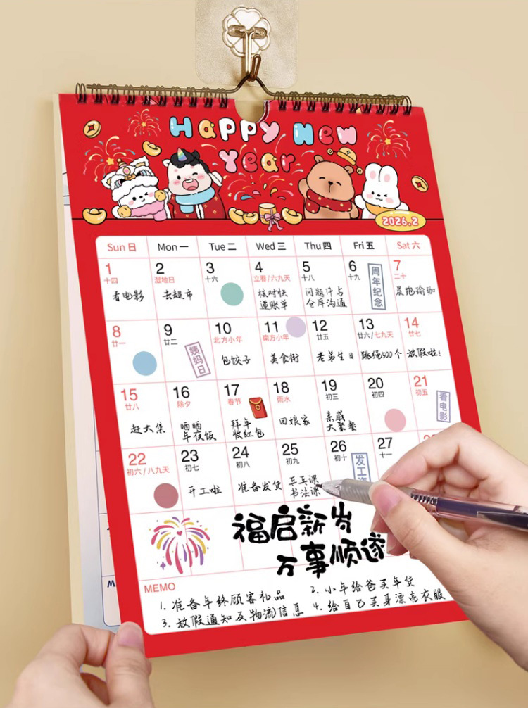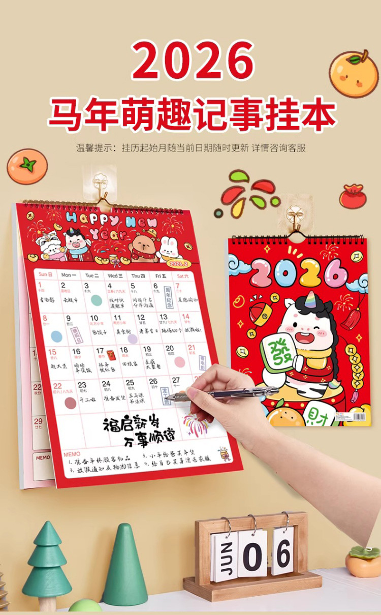 【下单即送❗️2026新款年大挂历】高颜值,日期记事双重设计,大面积书写更从容,翻页设计无需撕掉,挂墙年历创意工作打卡记事2026马年新年款QQ