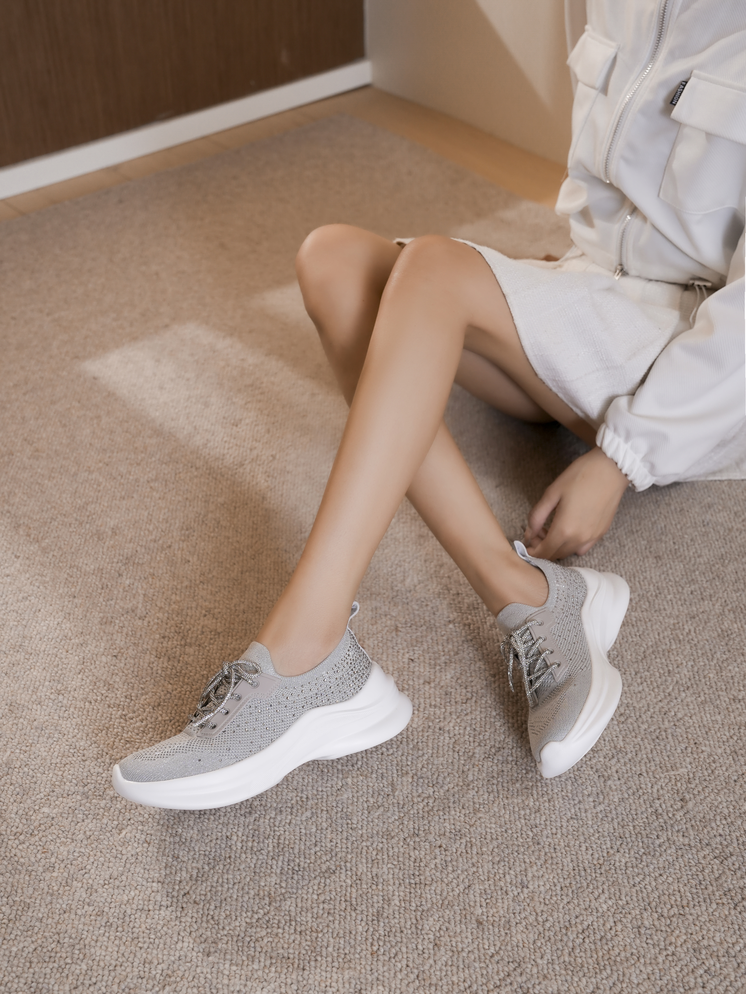 豪麟名鞋奥莱迪嘉女鞋织物时尚休闲鞋DJSKA52WX052灰色 原价1660元