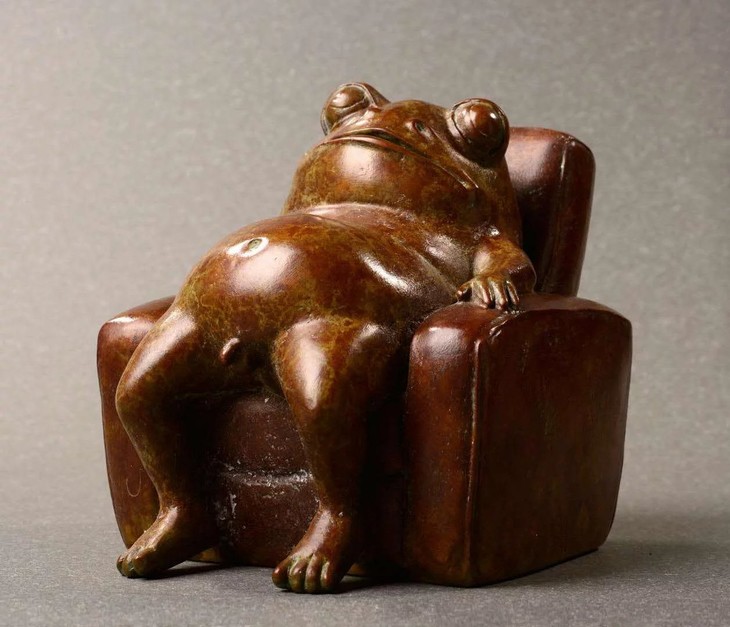 艺术家徐明限量版雕塑《坐在沙发上的青蛙》