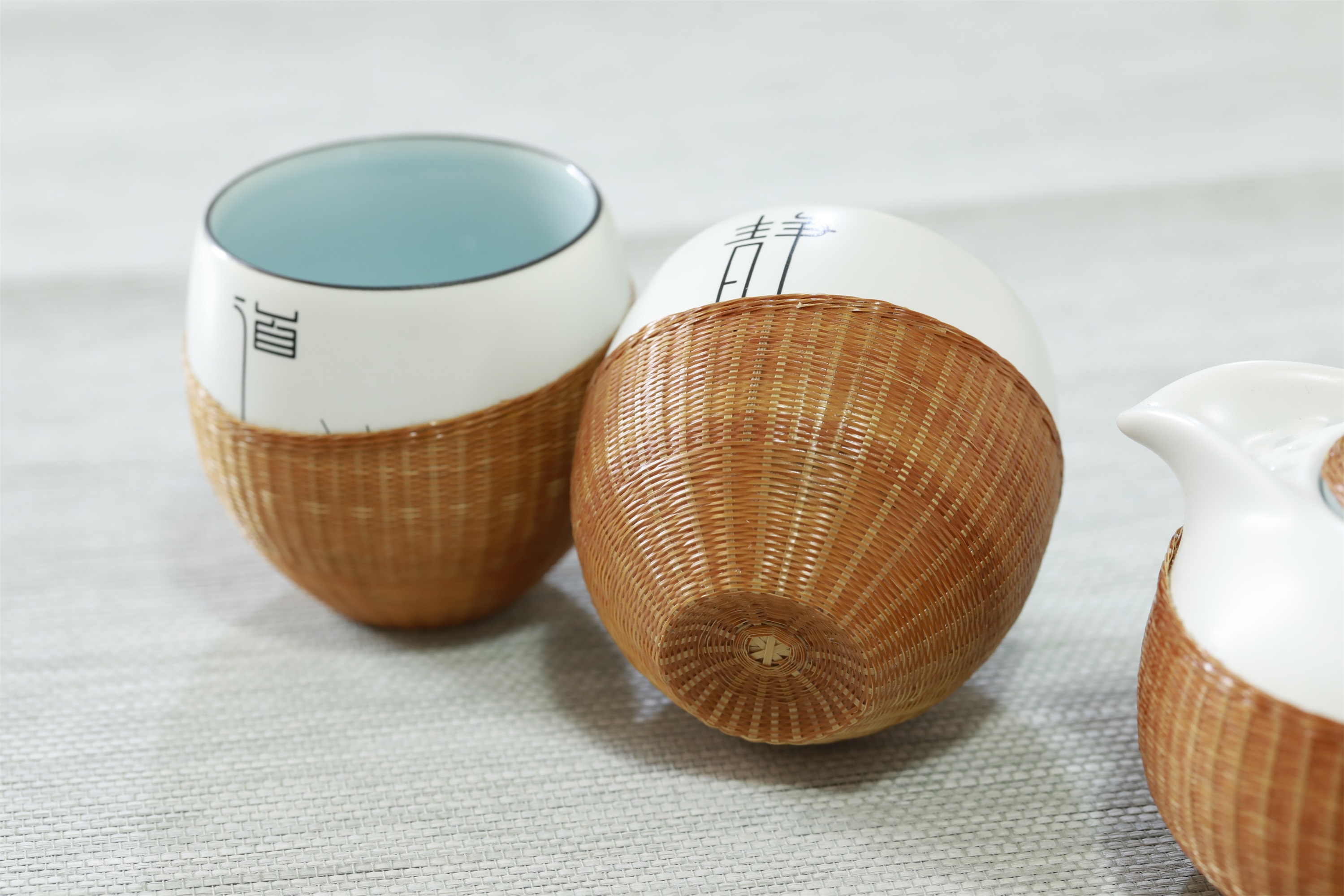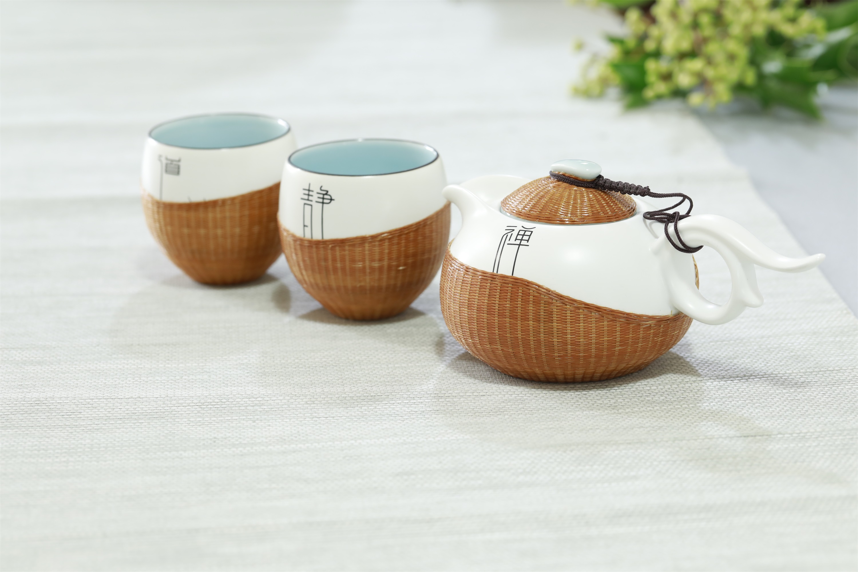 禅静道°竹丝扣瓷茶具三件套