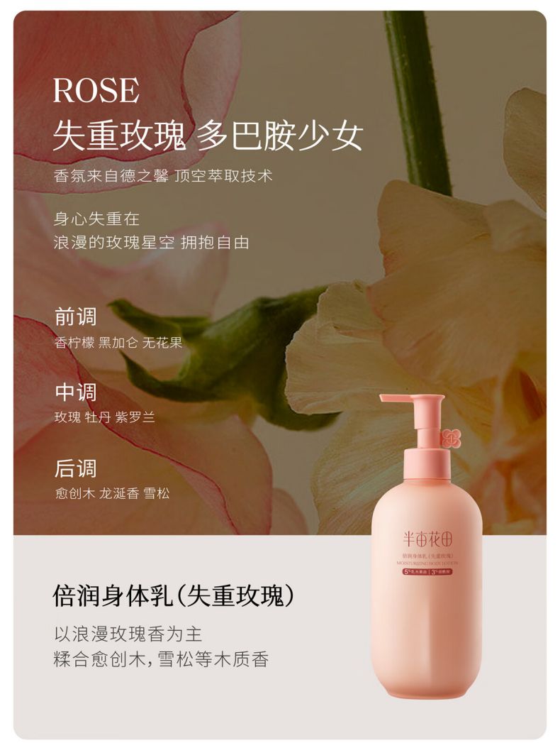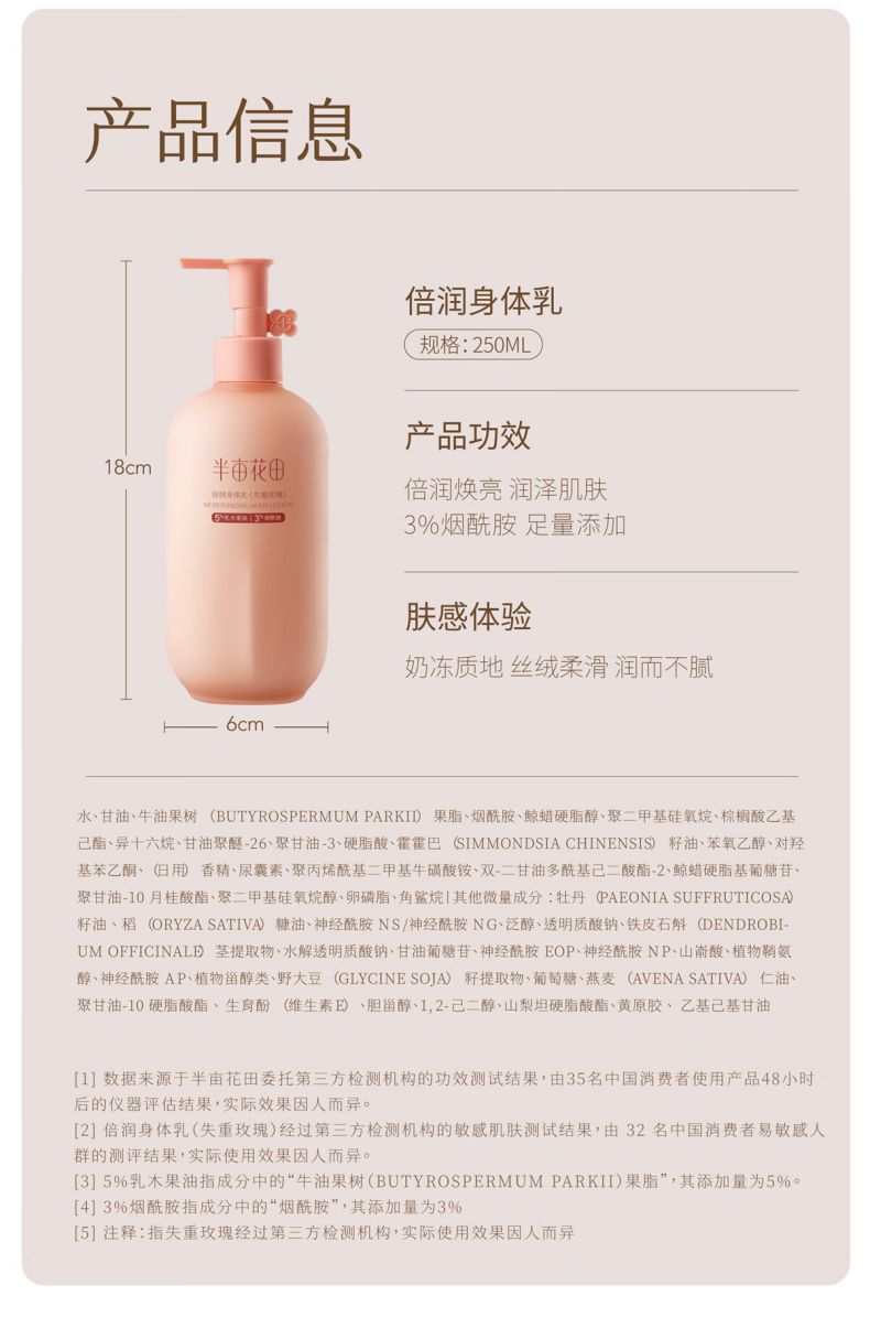 【自营】 半亩花田 倍润身体乳 失重玫瑰/庭院茉莉 250ml/瓶*1
