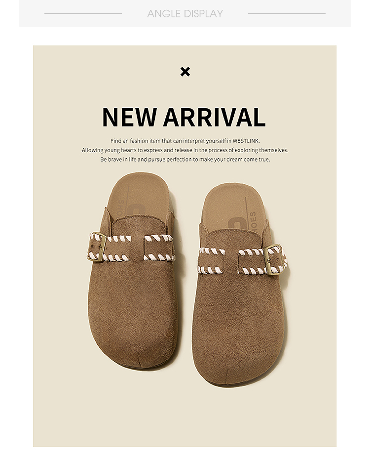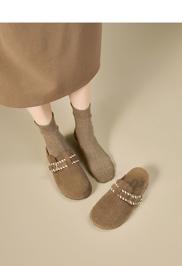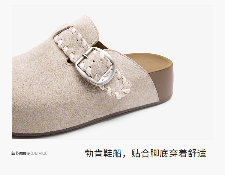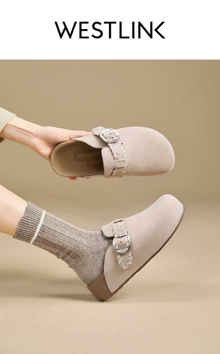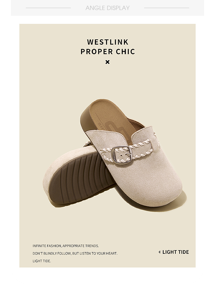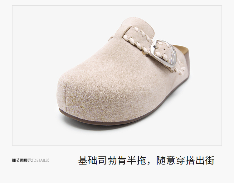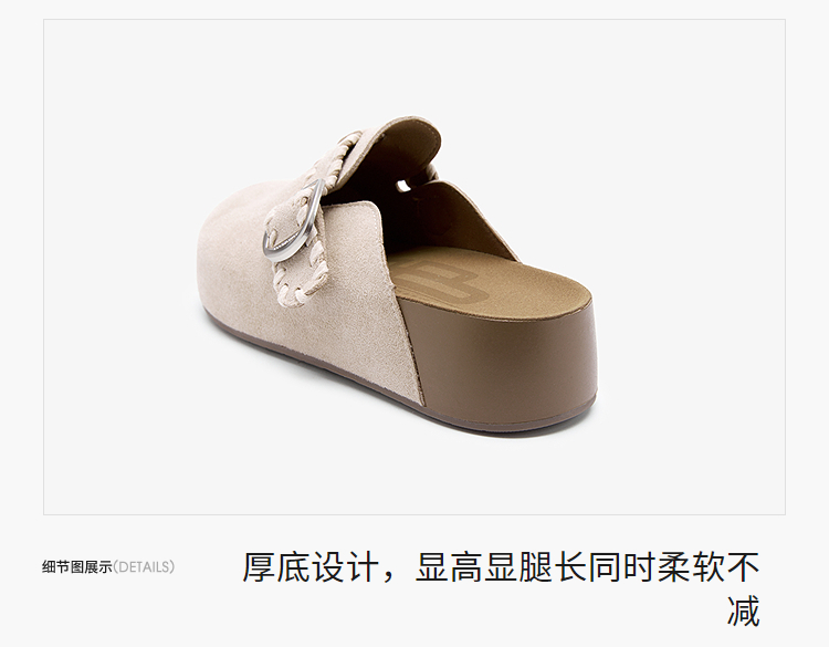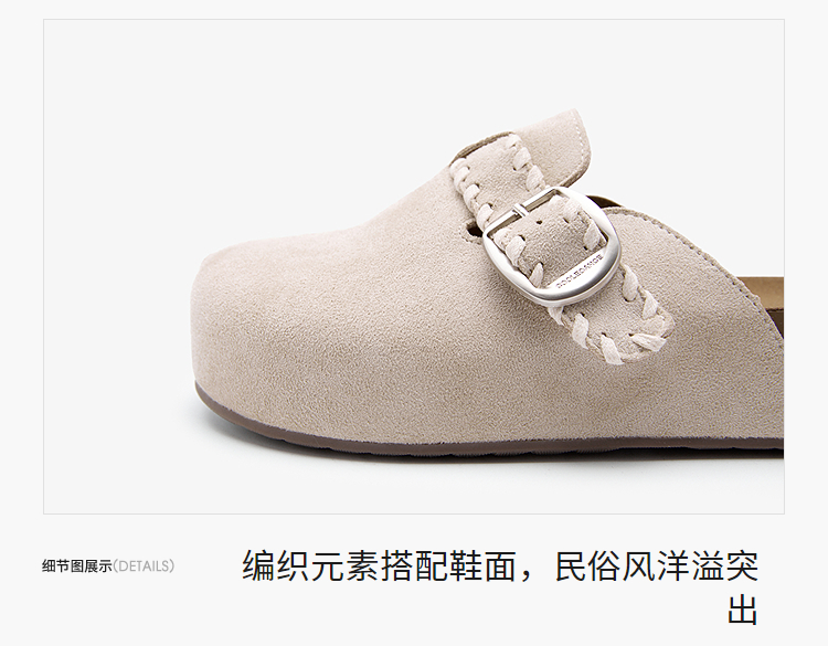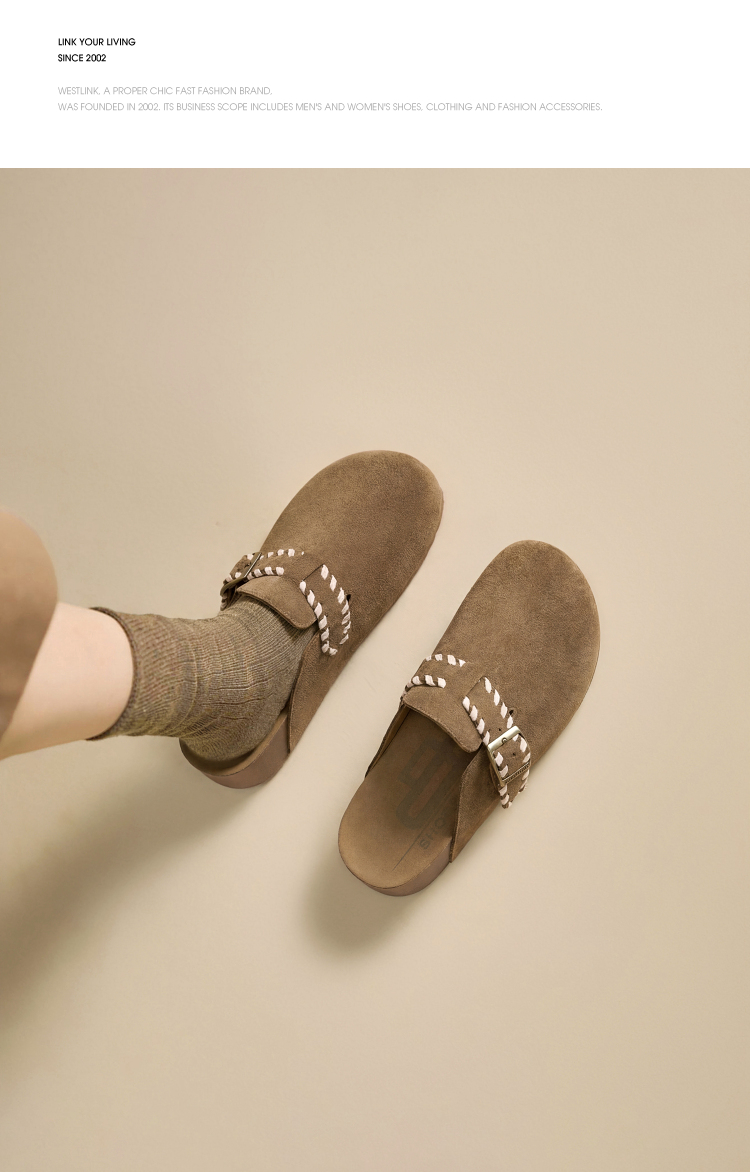 西遇复古厚底勃肯鞋半拖女2026春季新款包头拖鞋编织民俗风休闲鞋V0166254