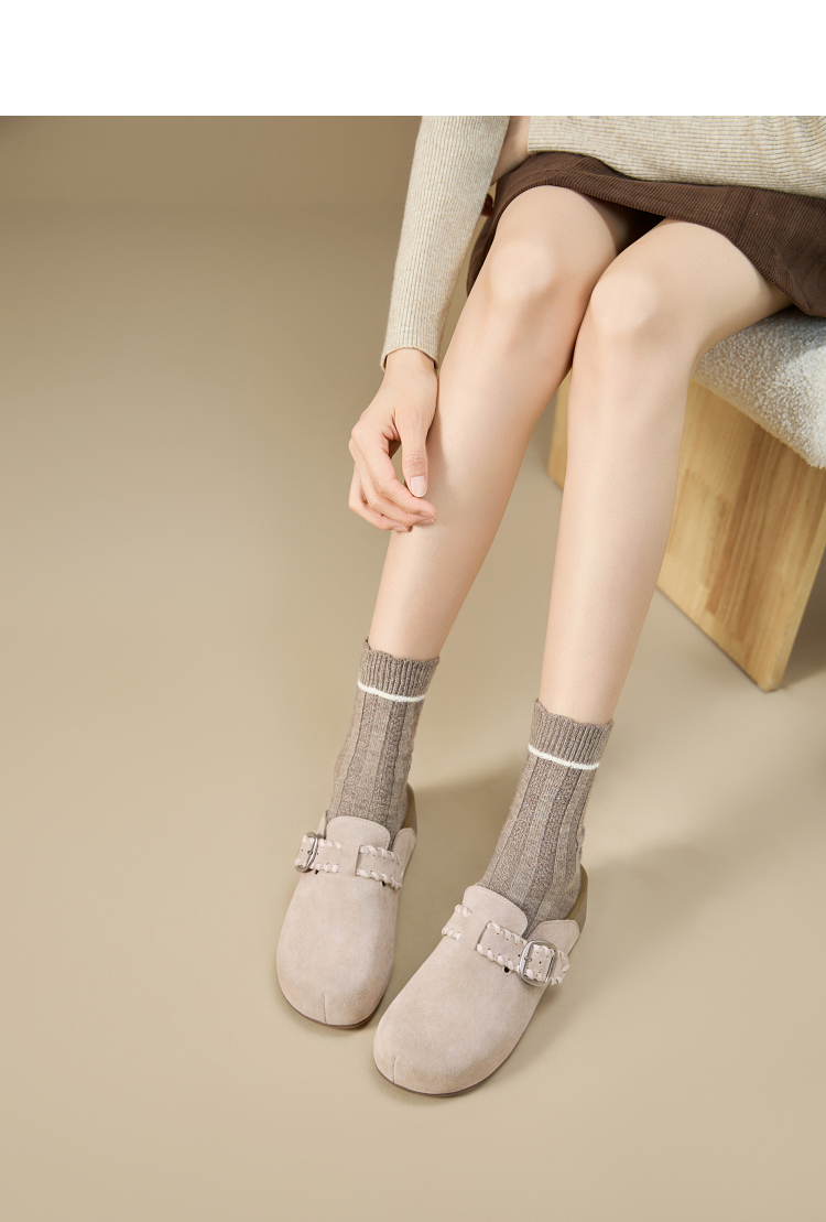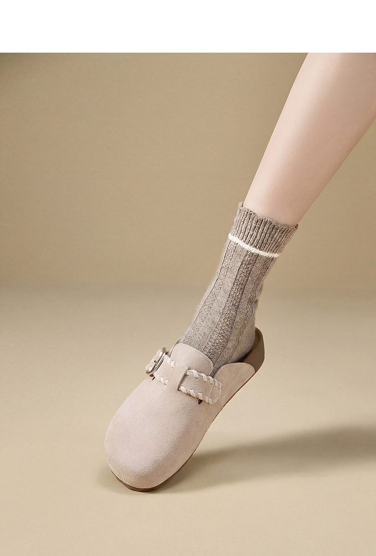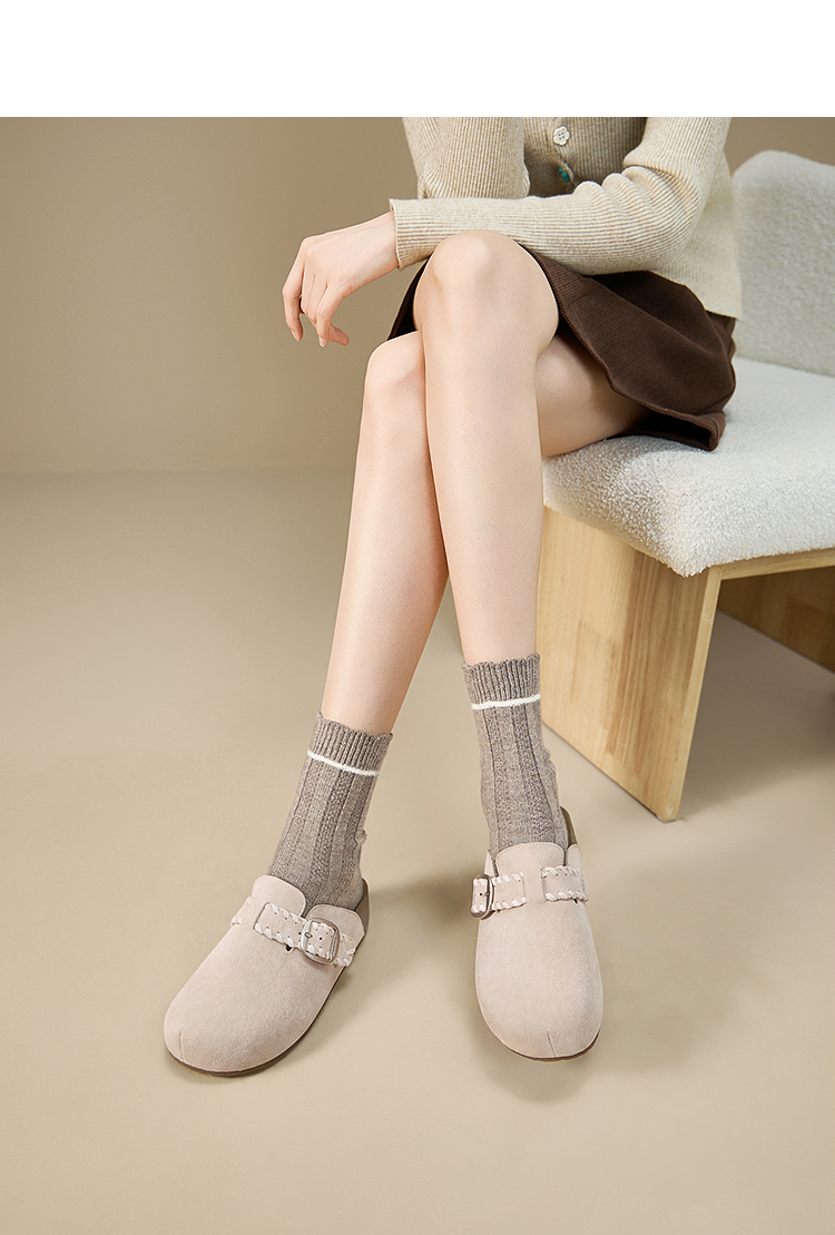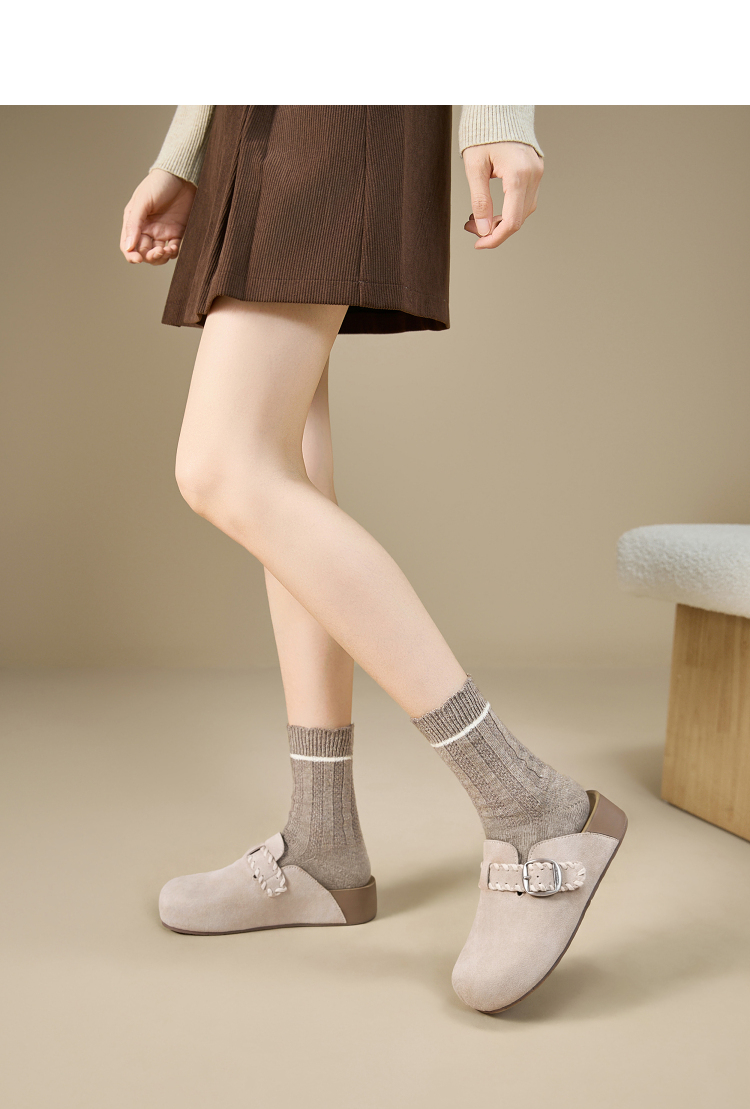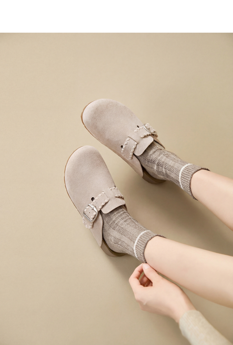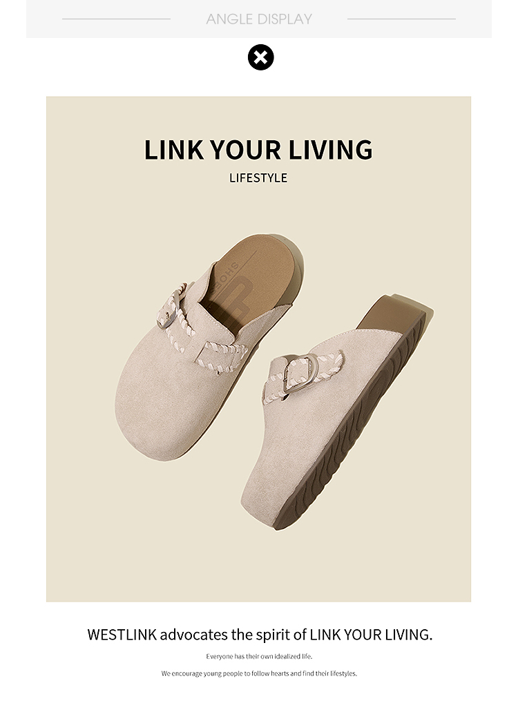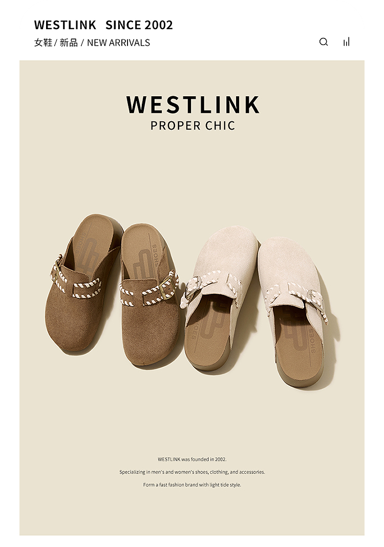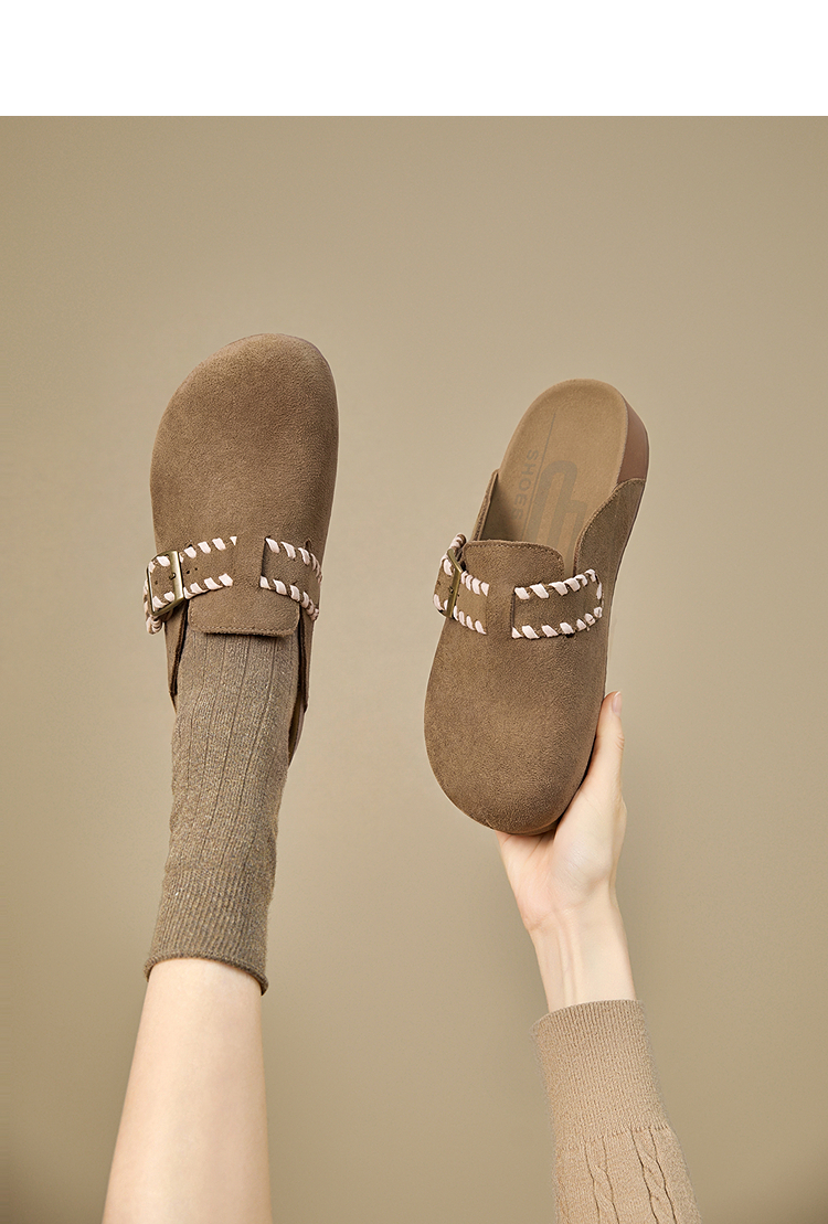 西遇复古厚底勃肯鞋半拖女2026春季新款包头拖鞋编织民俗风休闲鞋V0166254