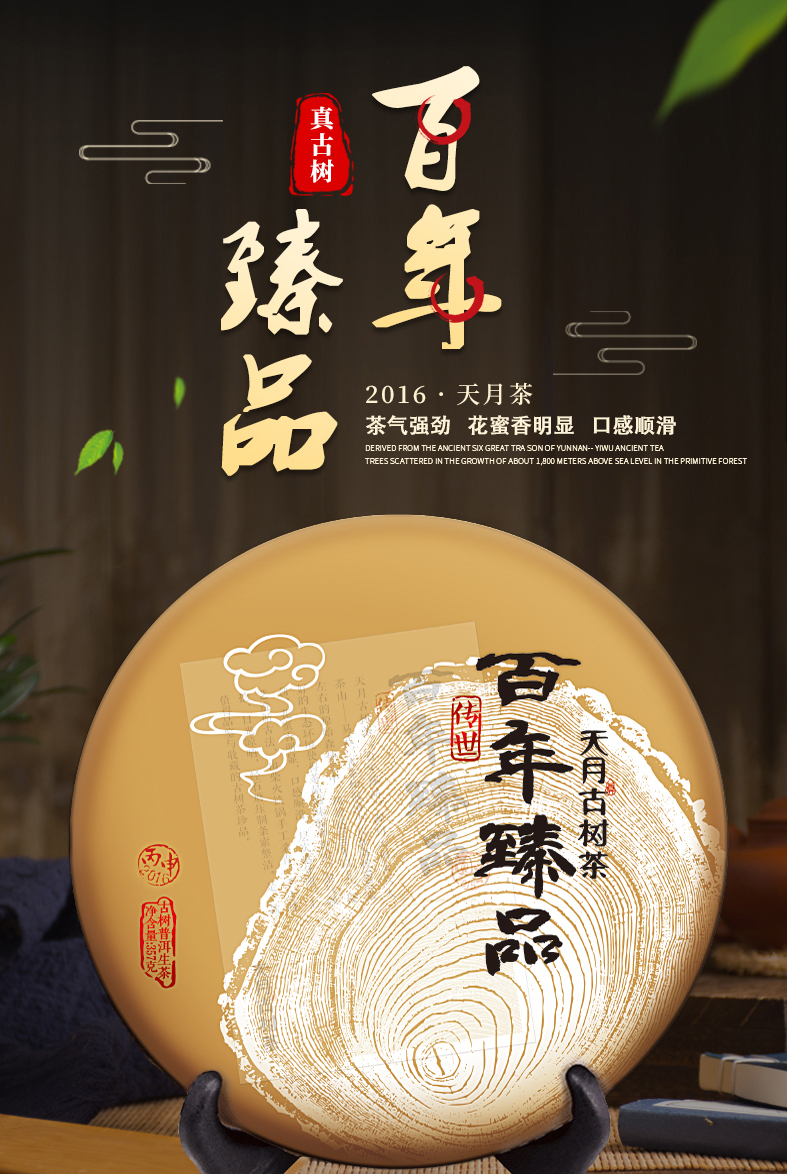 【天月古树茶】2016年百年臻品古树普洱茶生饼 357g