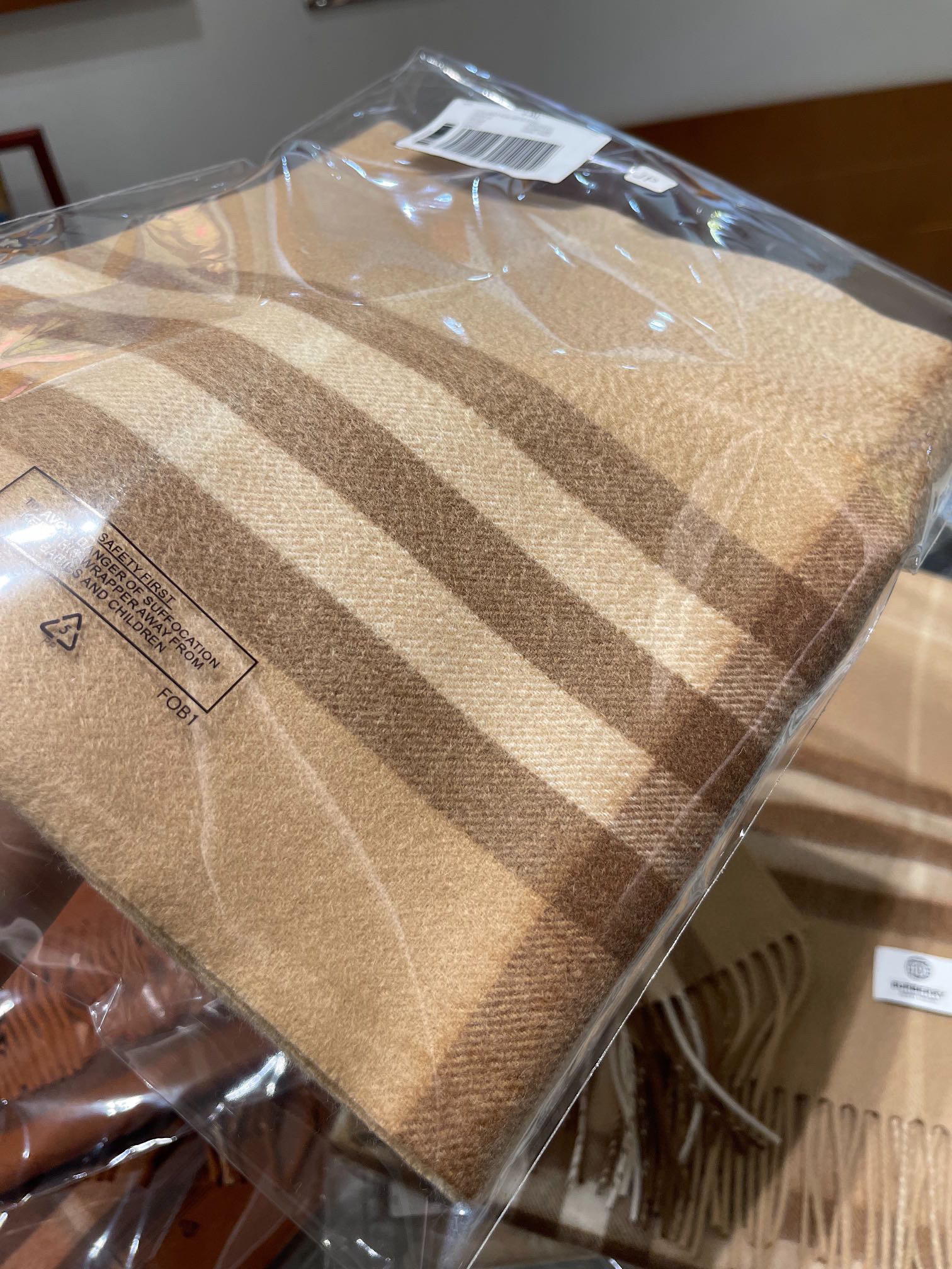 burberry专柜级经典羊绒格子围巾-奶茶色