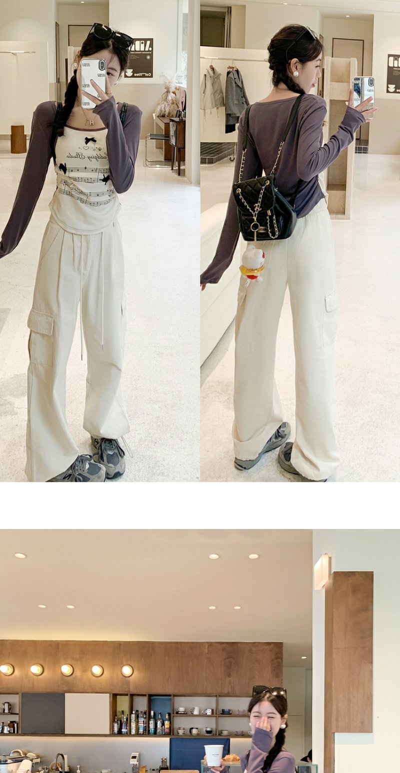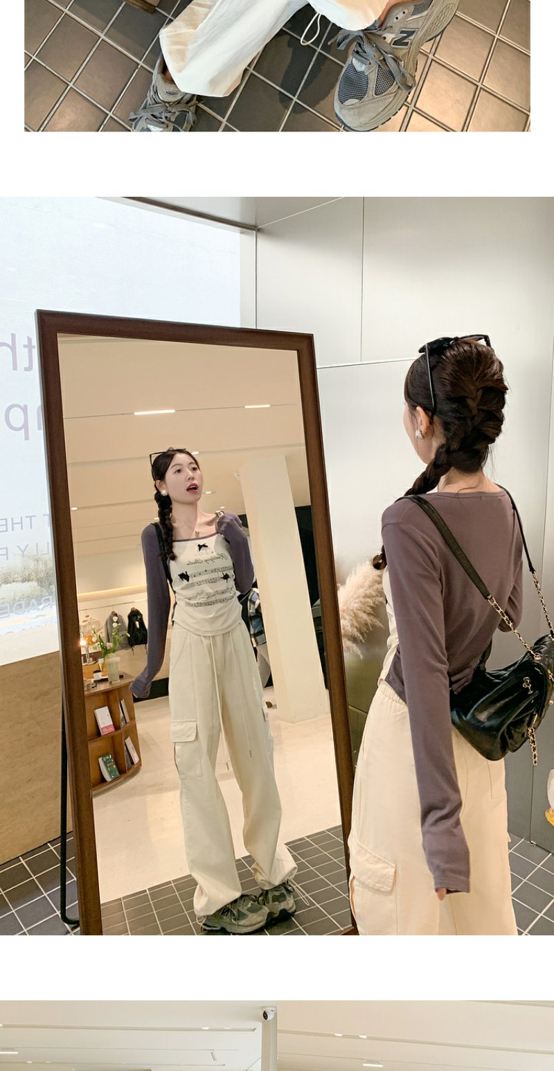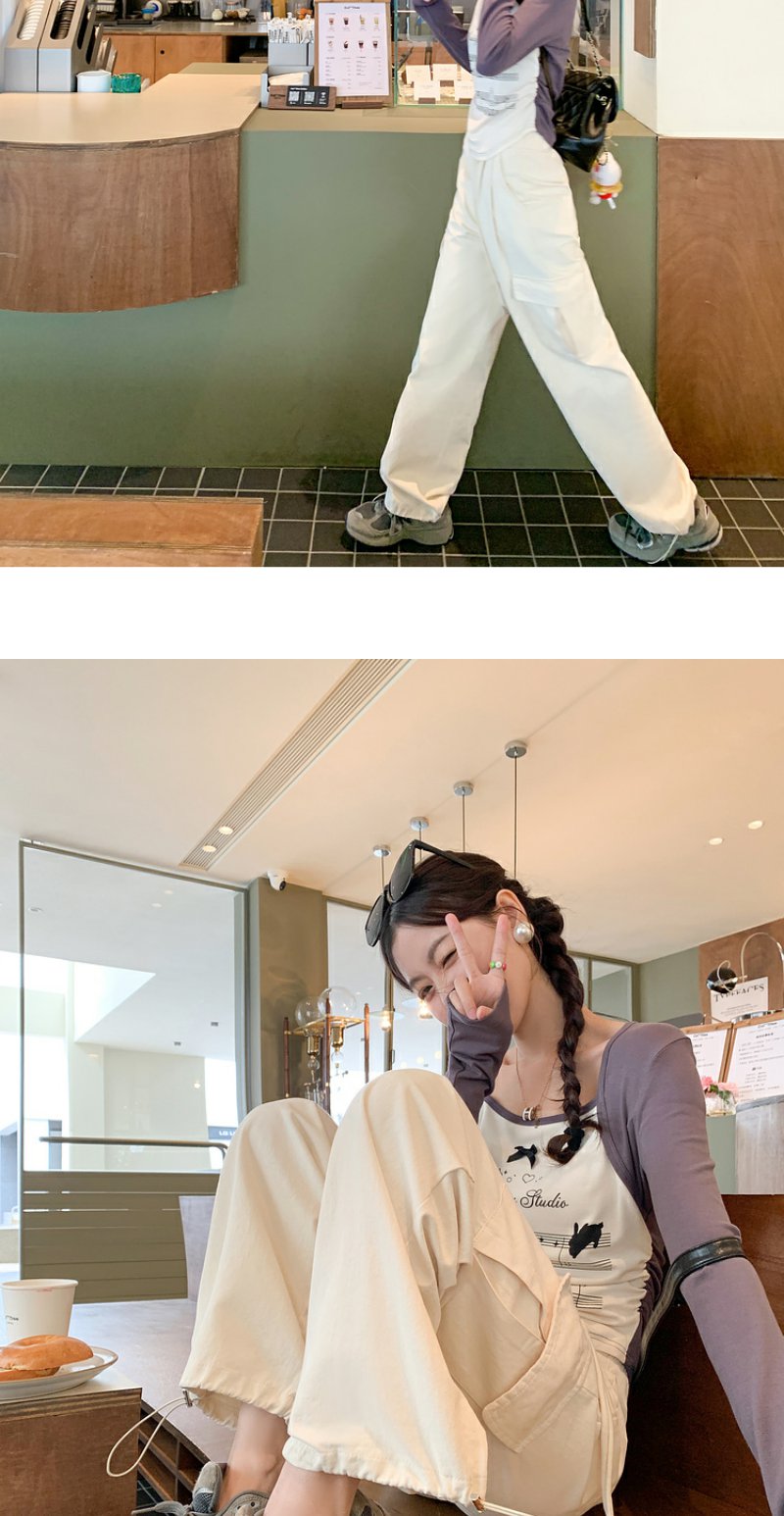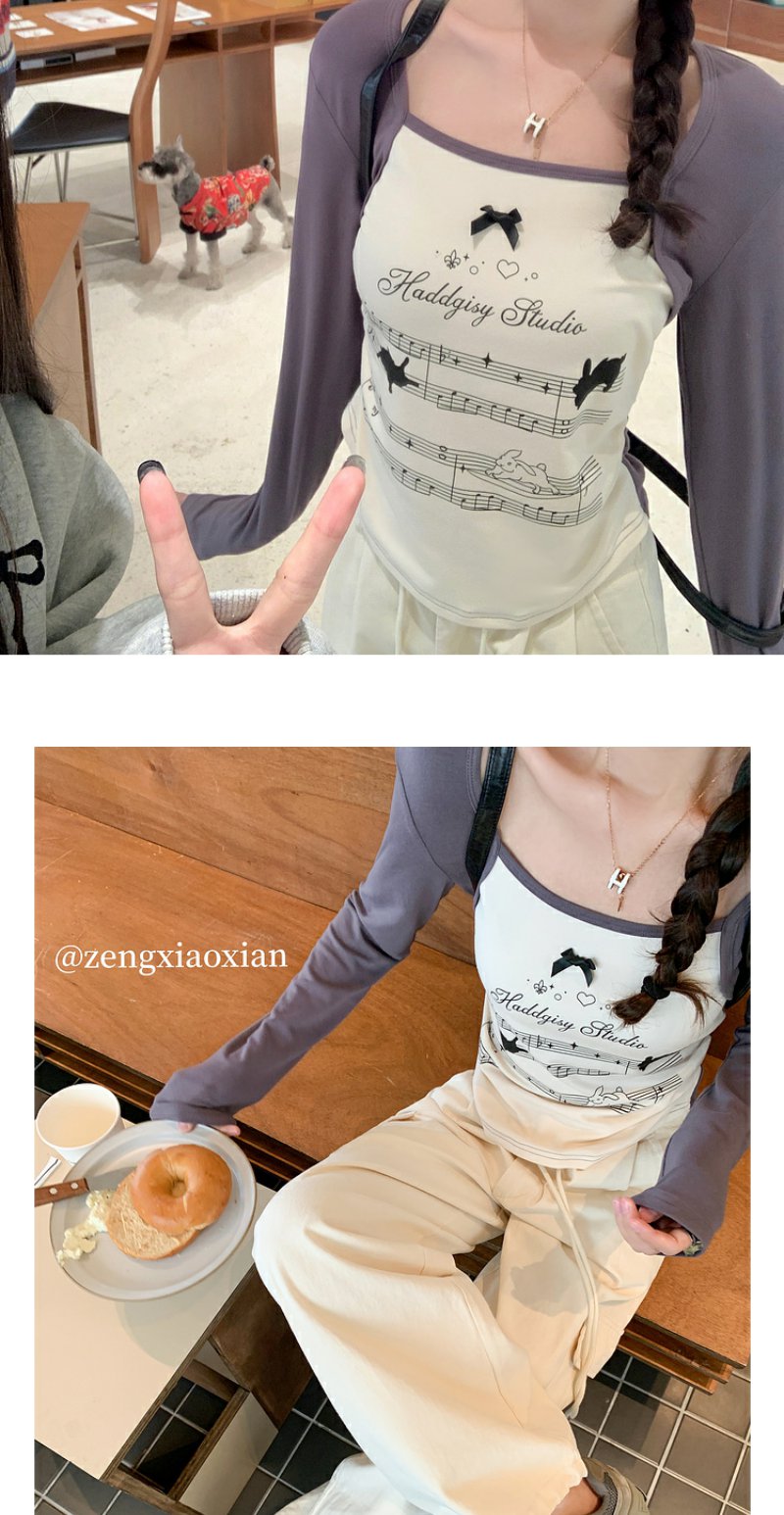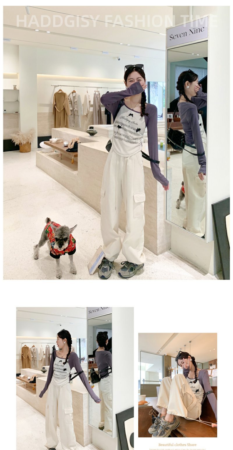 <曾小咸推荐> 【美式甜心】杏拼灰印花插肩袖