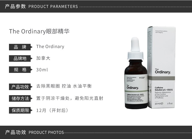 加拿大 THE ORDINARY 眼部精华咖啡因5%+葡萄糖苷精华 30ML