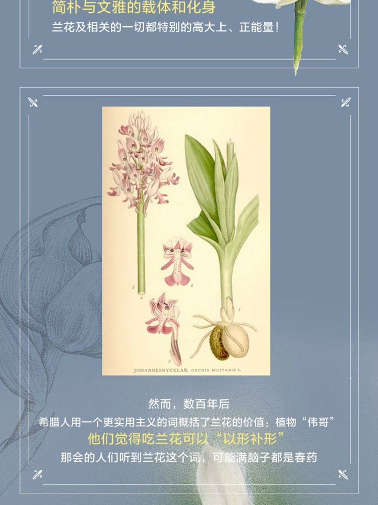 兰花,一种具有神秘魅力的植物。东方的兰花优雅、安静、谦逊,如同谦谦君子形象; 而西方的兰花,在历史中饱含着欲望,被认为是昂贵的*侈品,游走于显贵之列,诱惑着人们克服艰难险阻去探寻它。