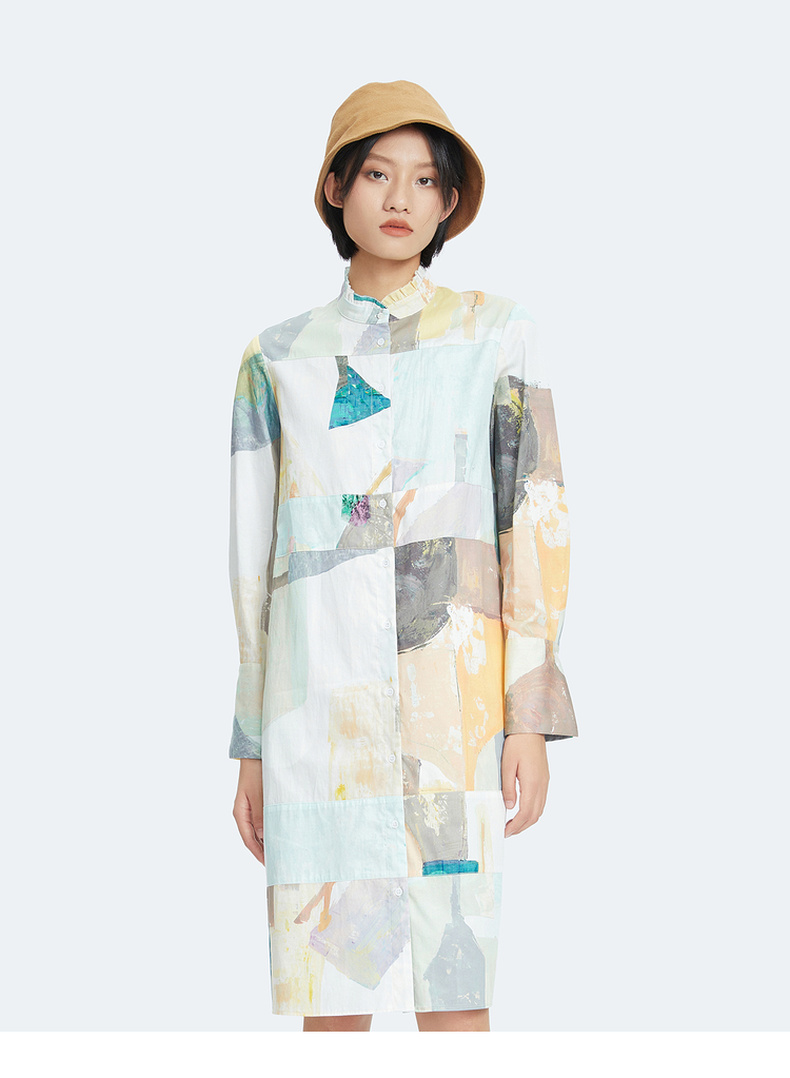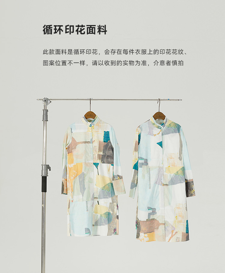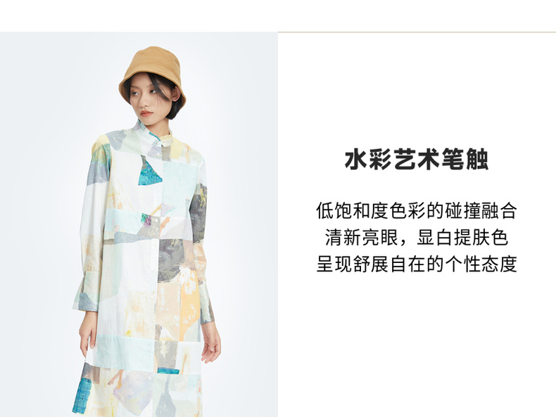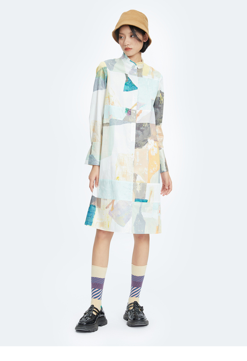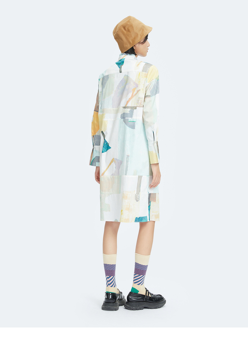 【不规则印花】谜底2022秋款纯棉复古印花宽松连衣裙女228ML6176