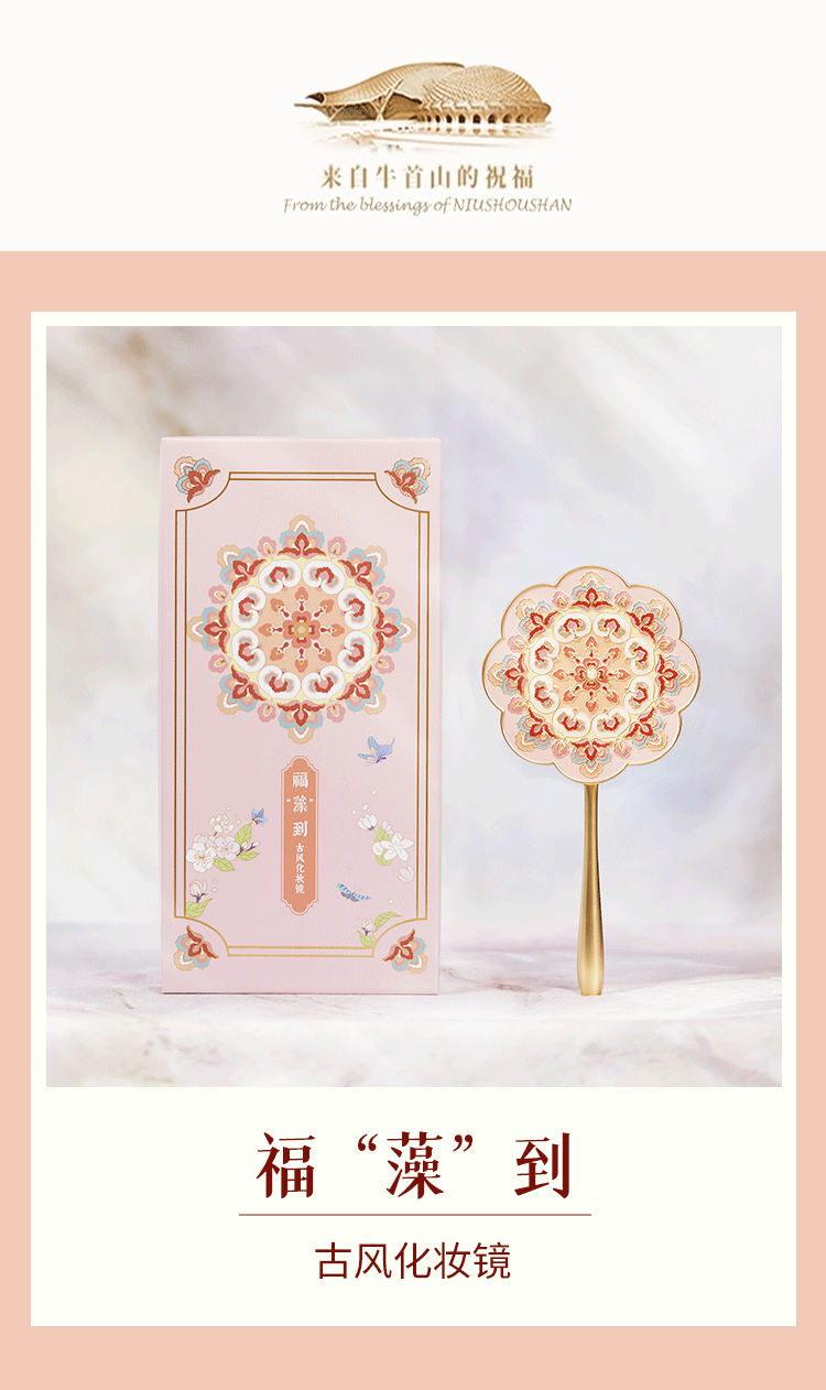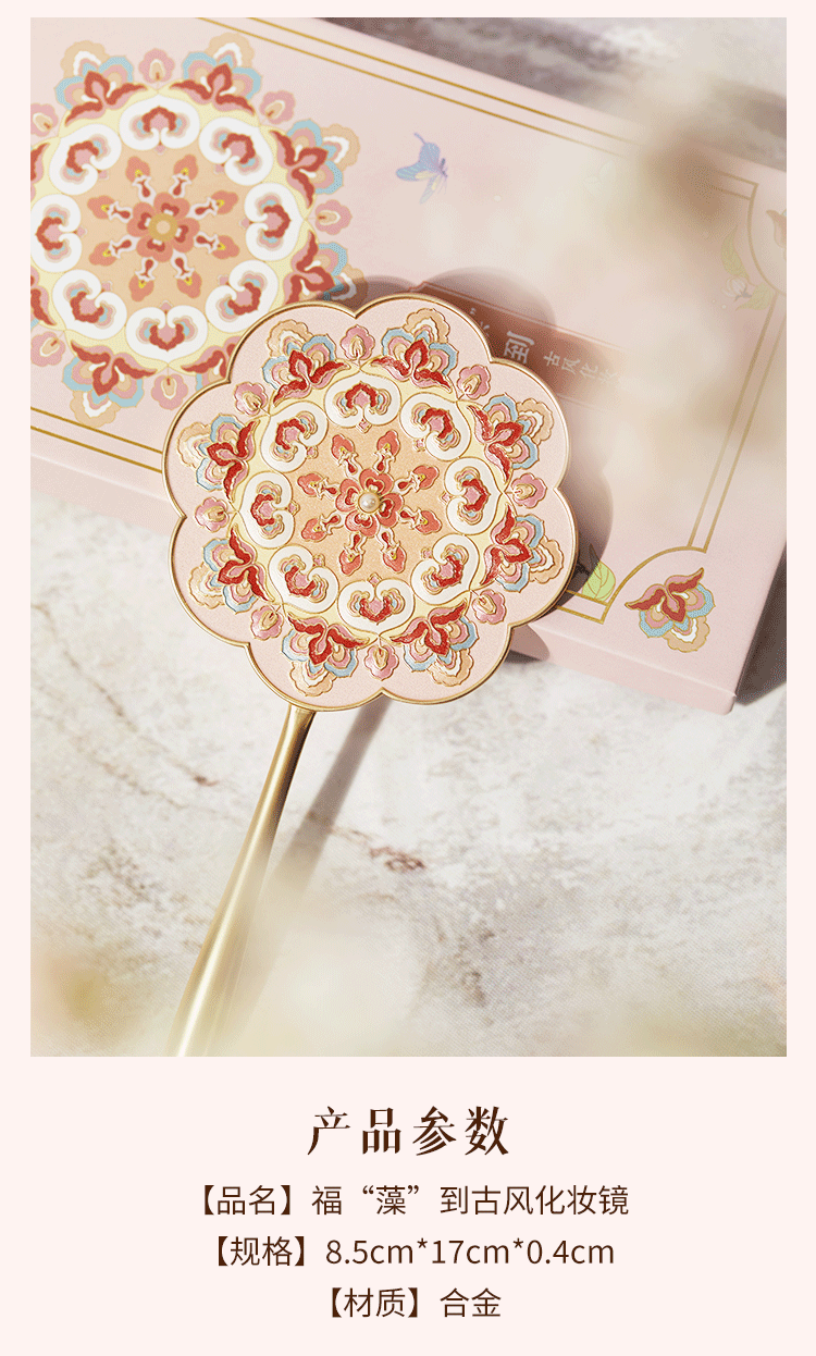 牛首山福藻到古风化妆镜手持镜博物馆文创镜子便携化妆镜生日礼物