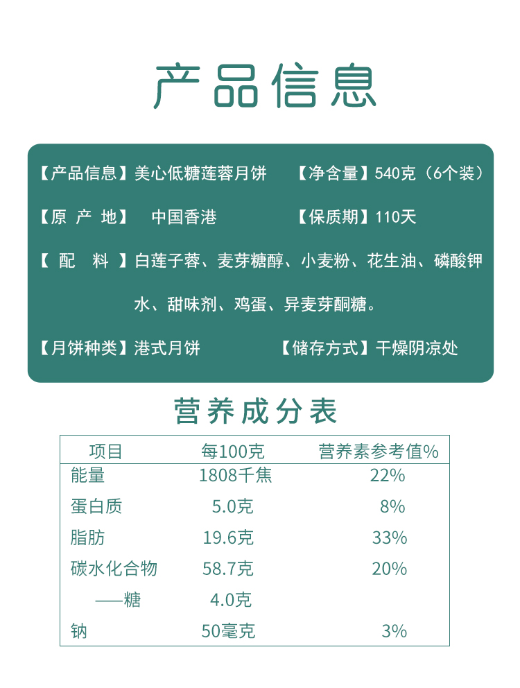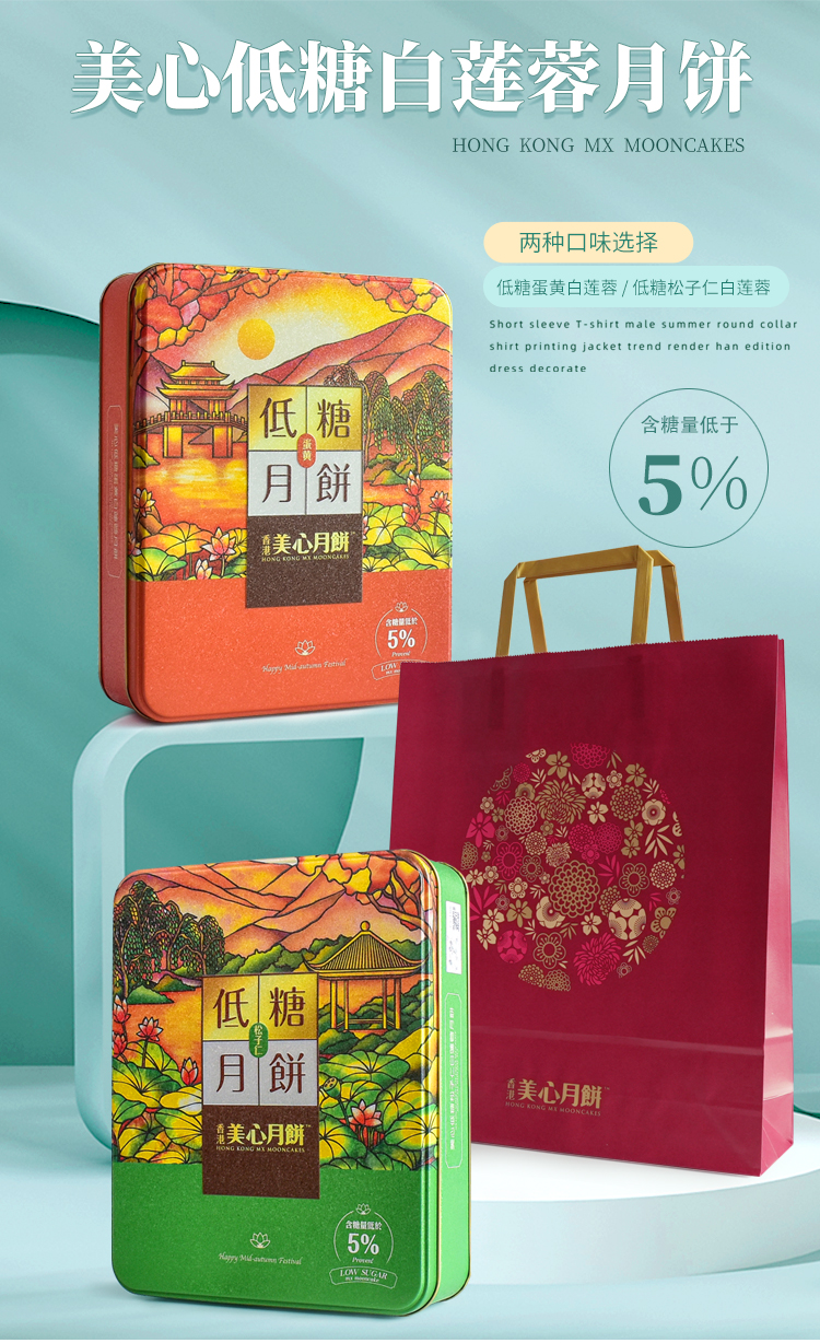 美心低糖蛋黄/松子仁白莲蓉月饼540g