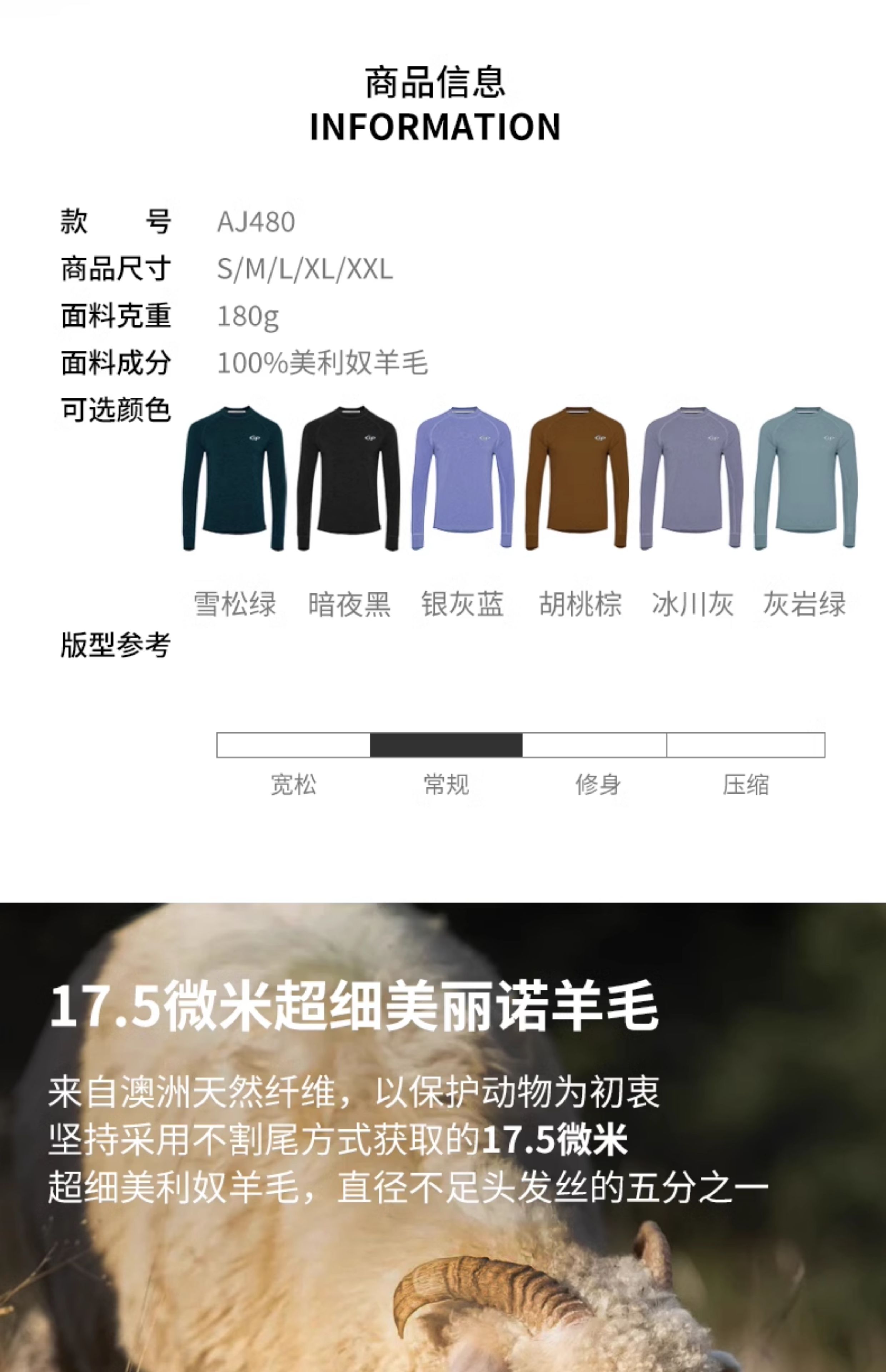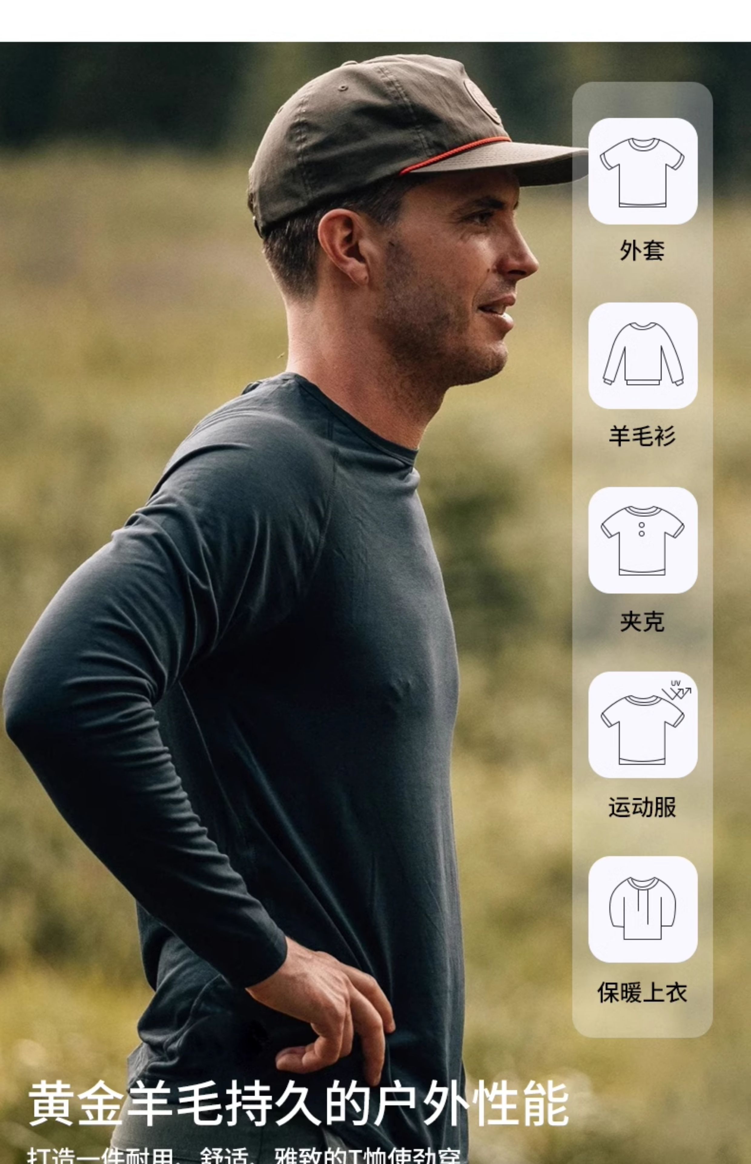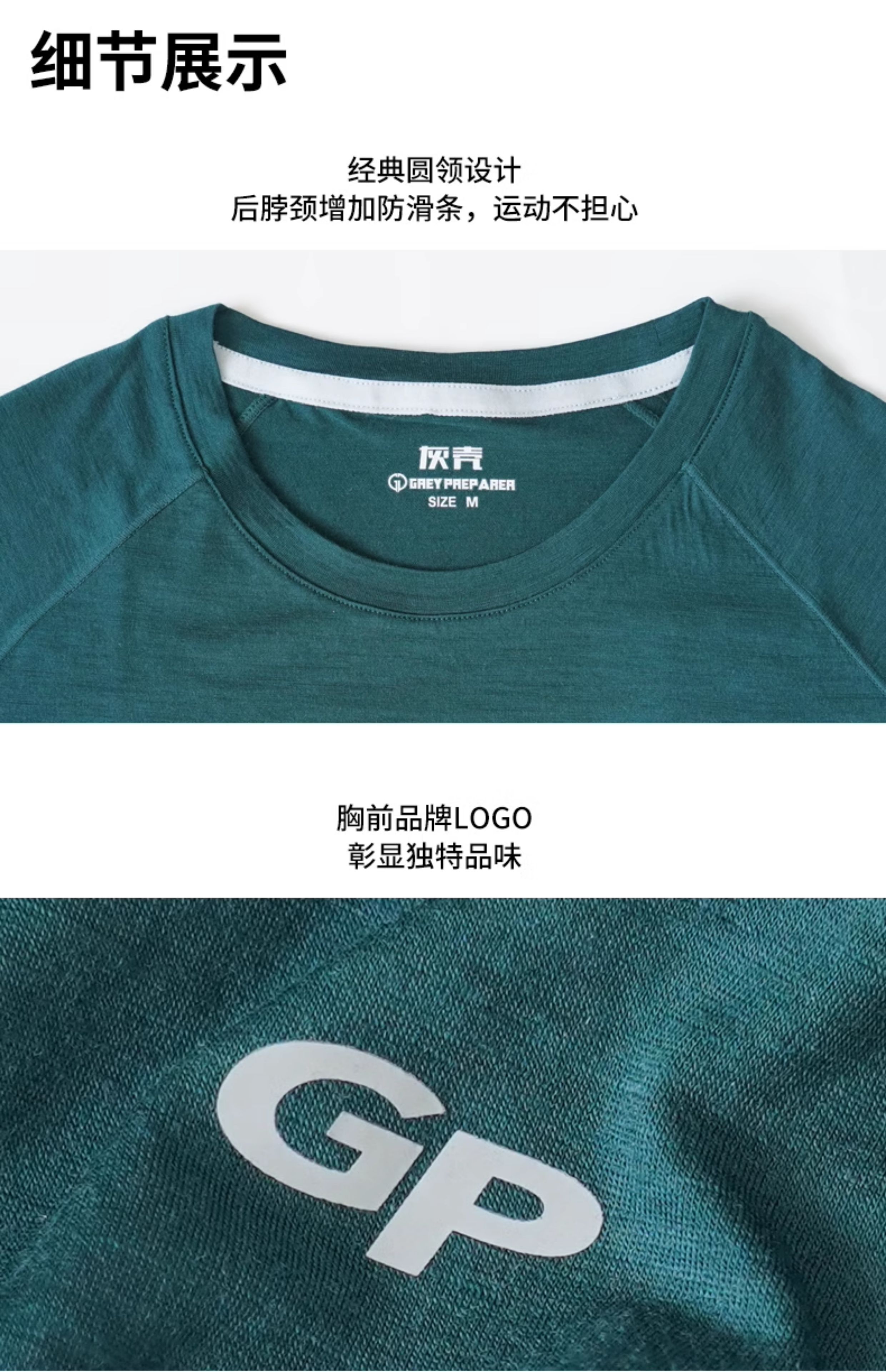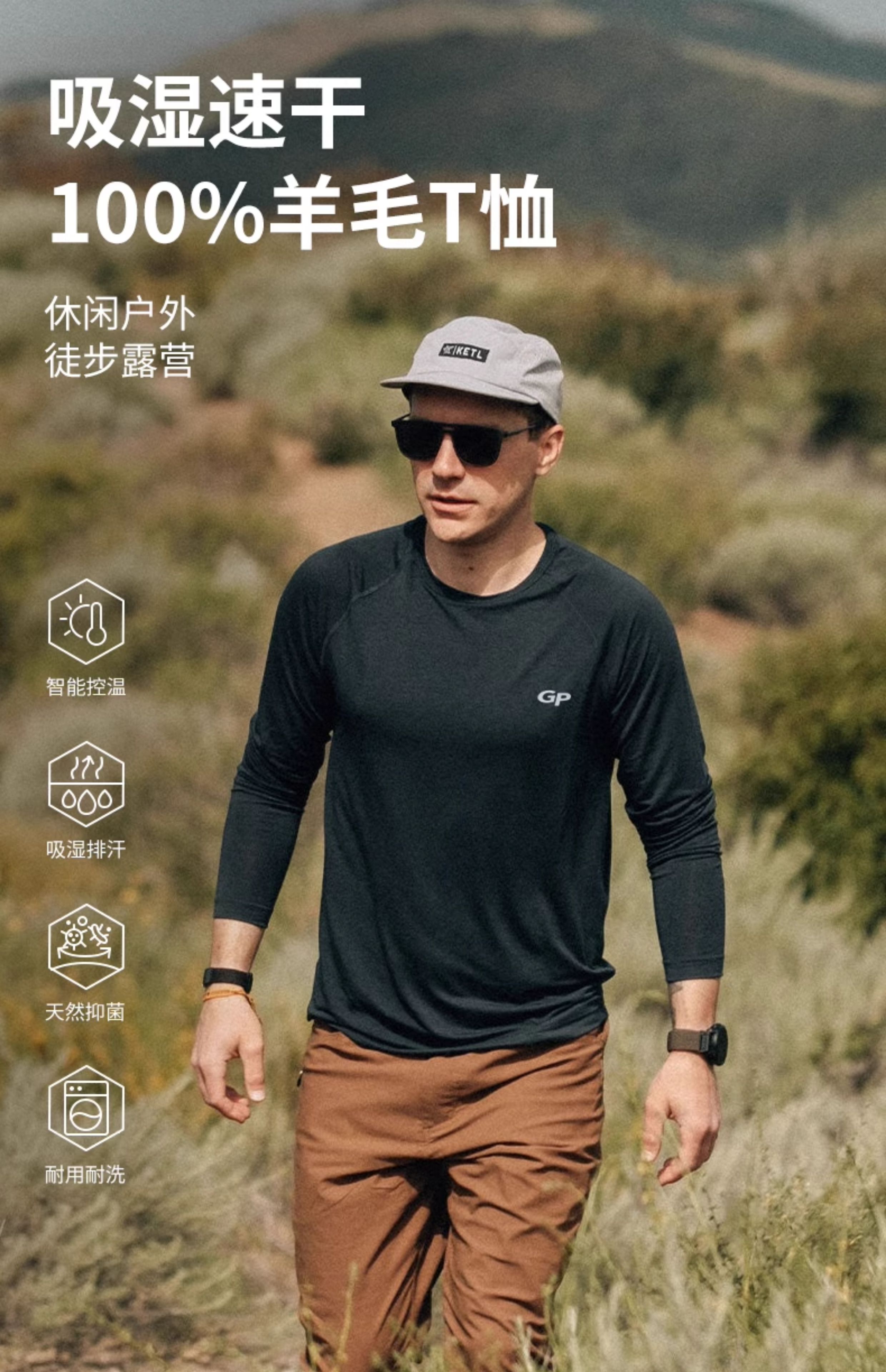 灰壳GP美利奴羊毛男士速干衣运动长袖户外徒步登山防晒透气排汗T恤