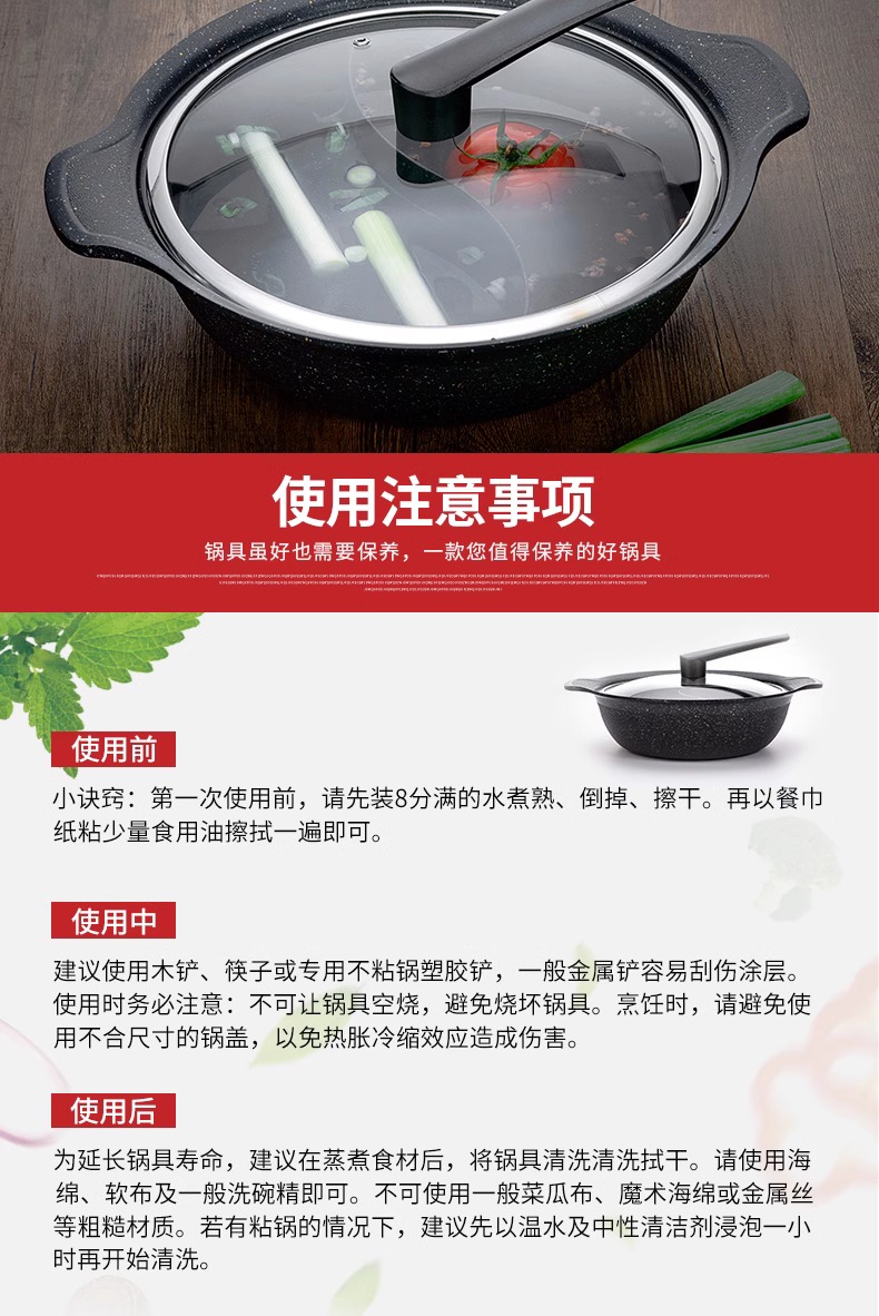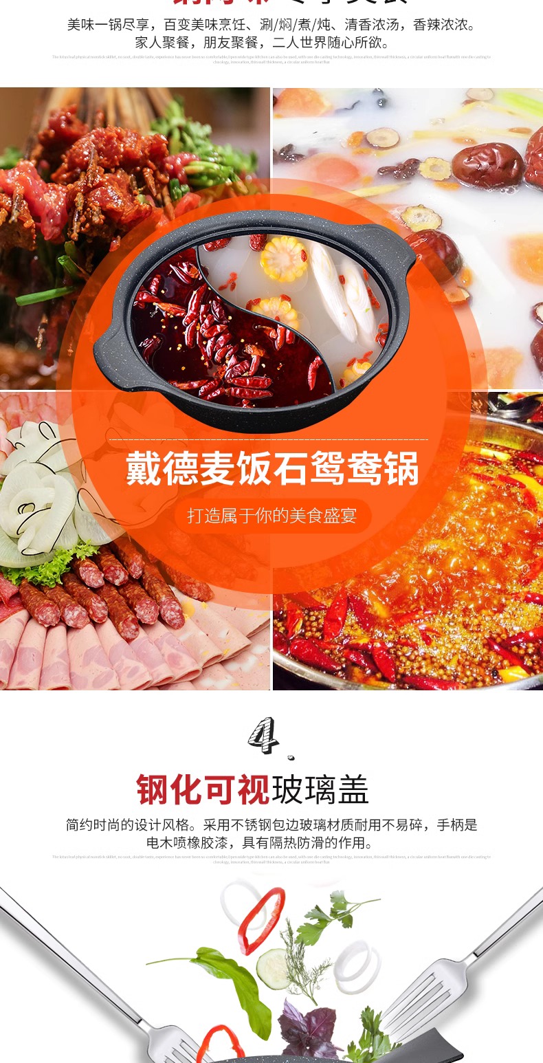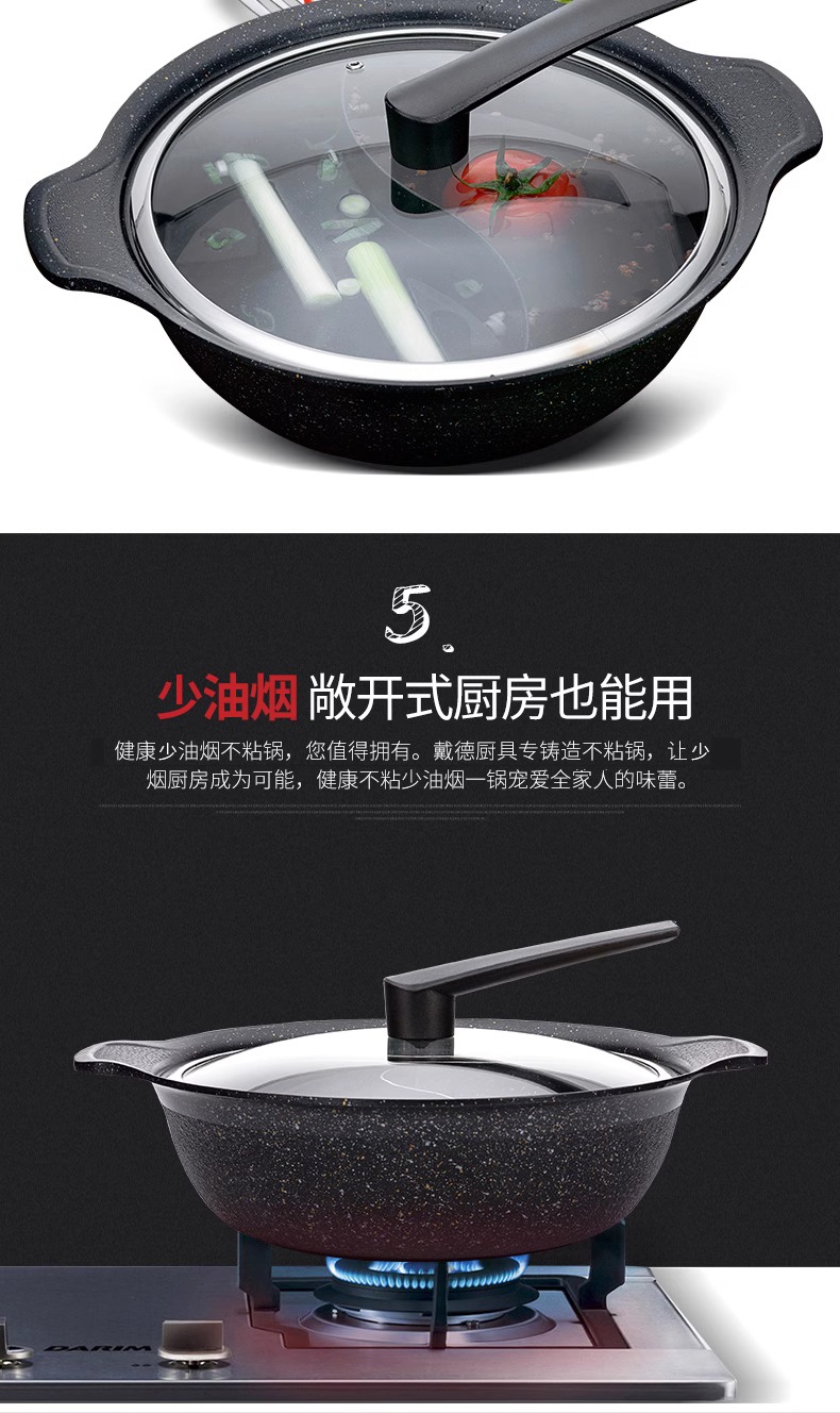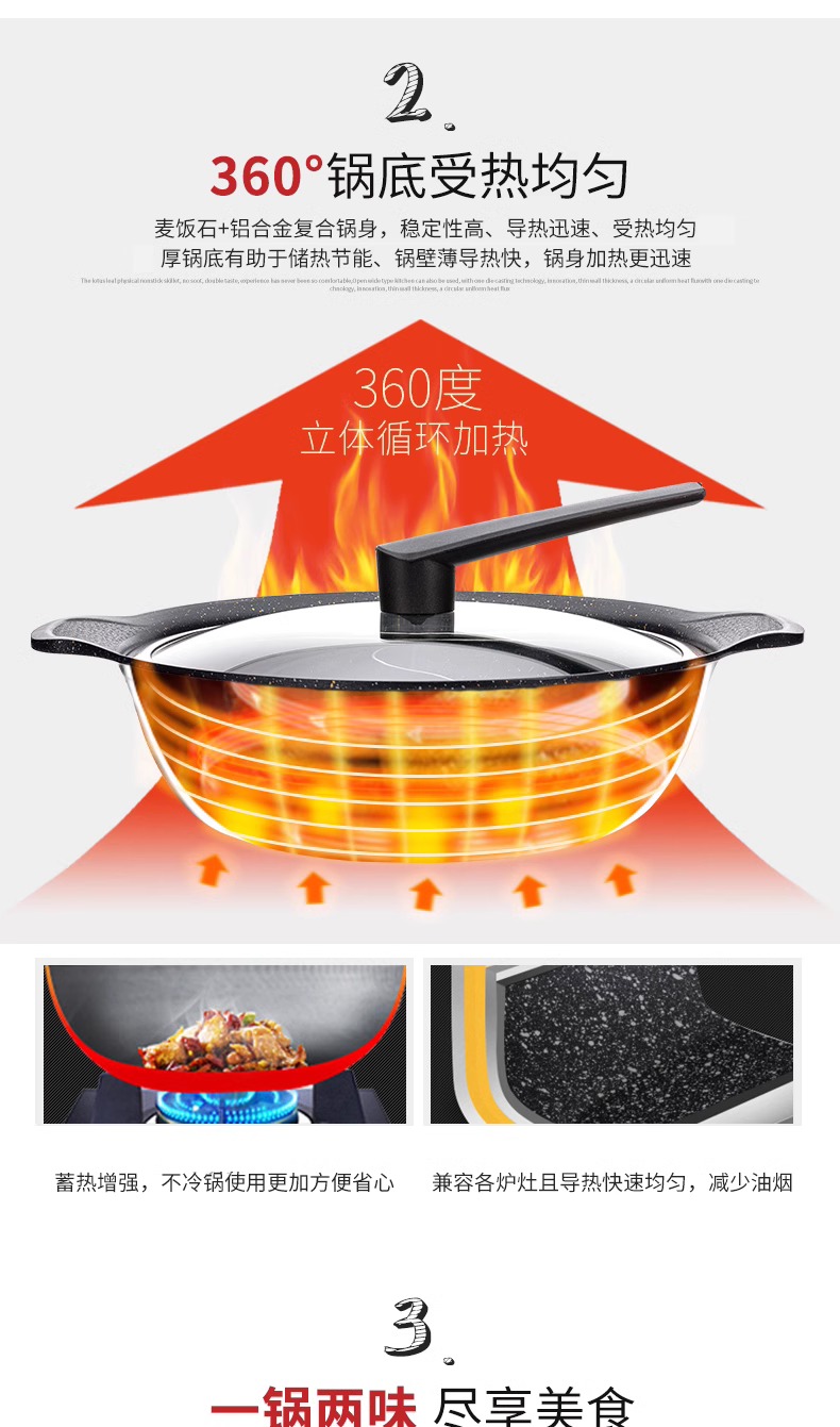 戴德麦饭石火锅三层加厚鸳鸯锅电磁炉通用家用火锅32cm