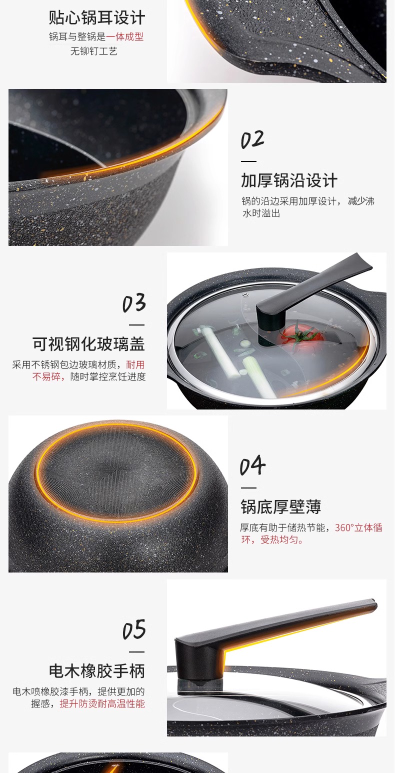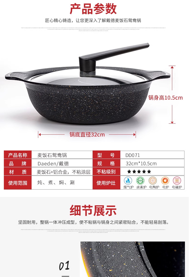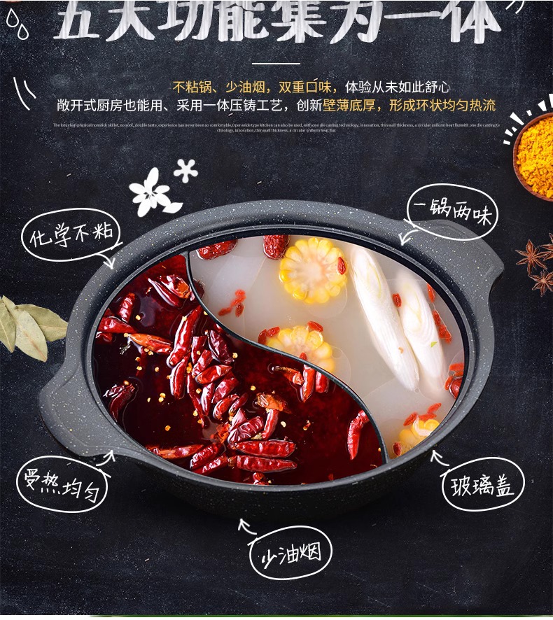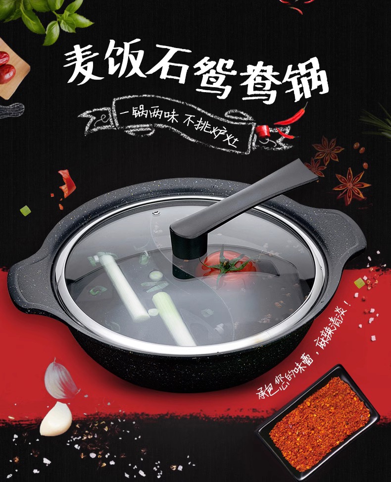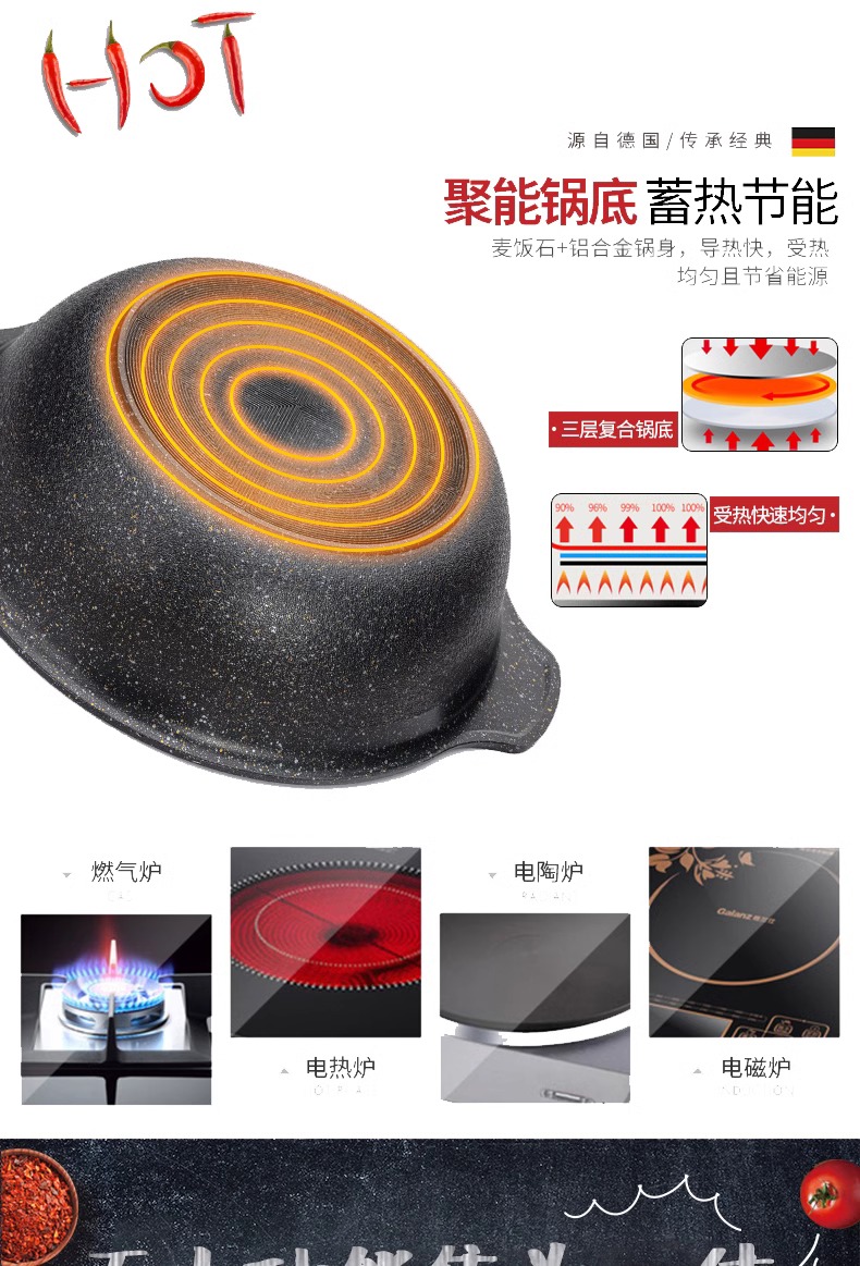 戴德麦饭石火锅三层加厚鸳鸯锅电磁炉通用家用火锅32cm